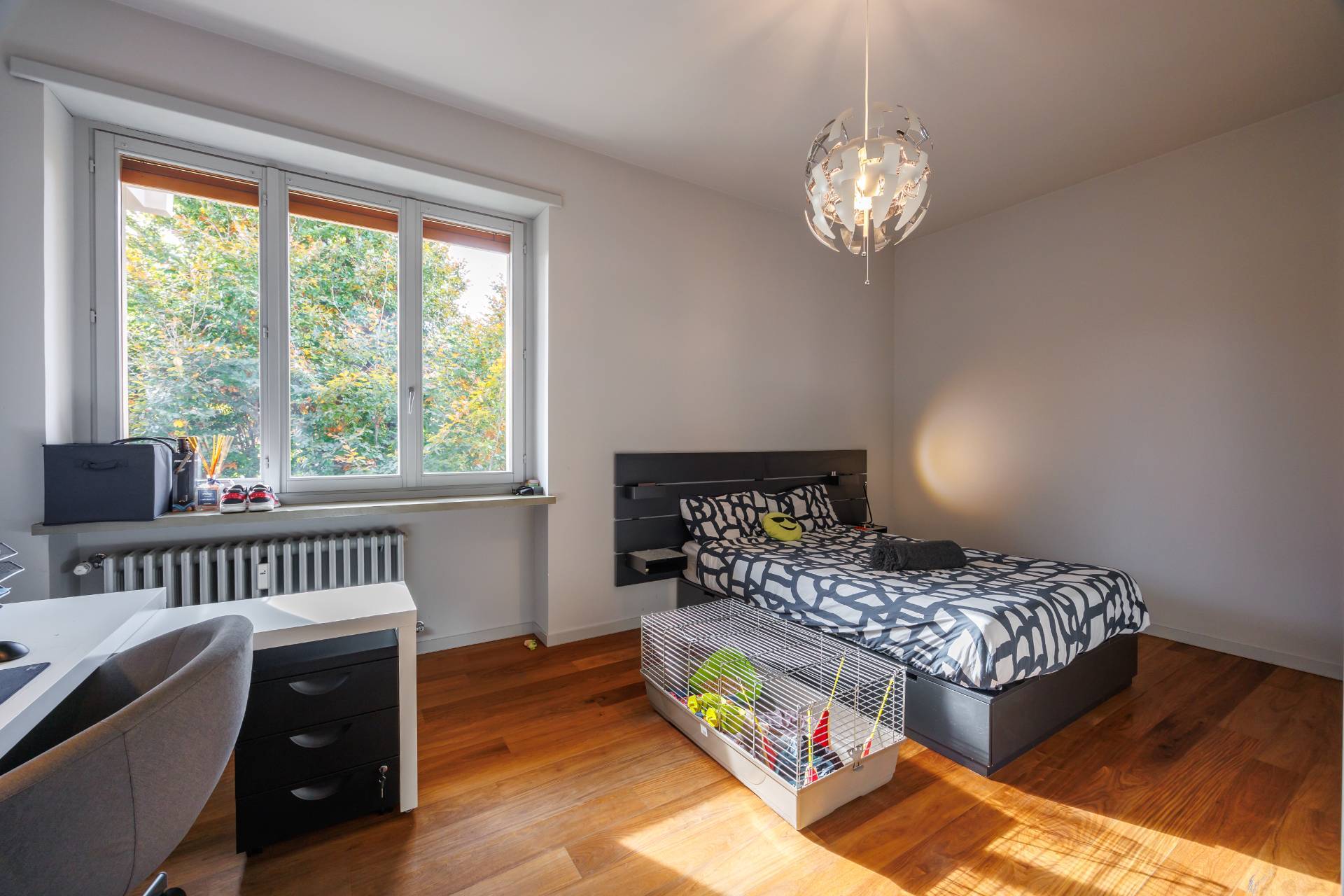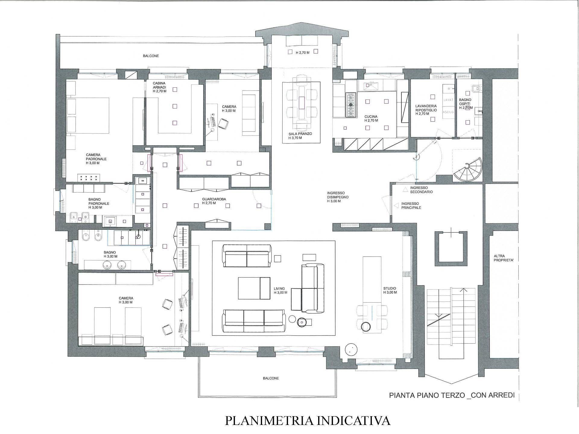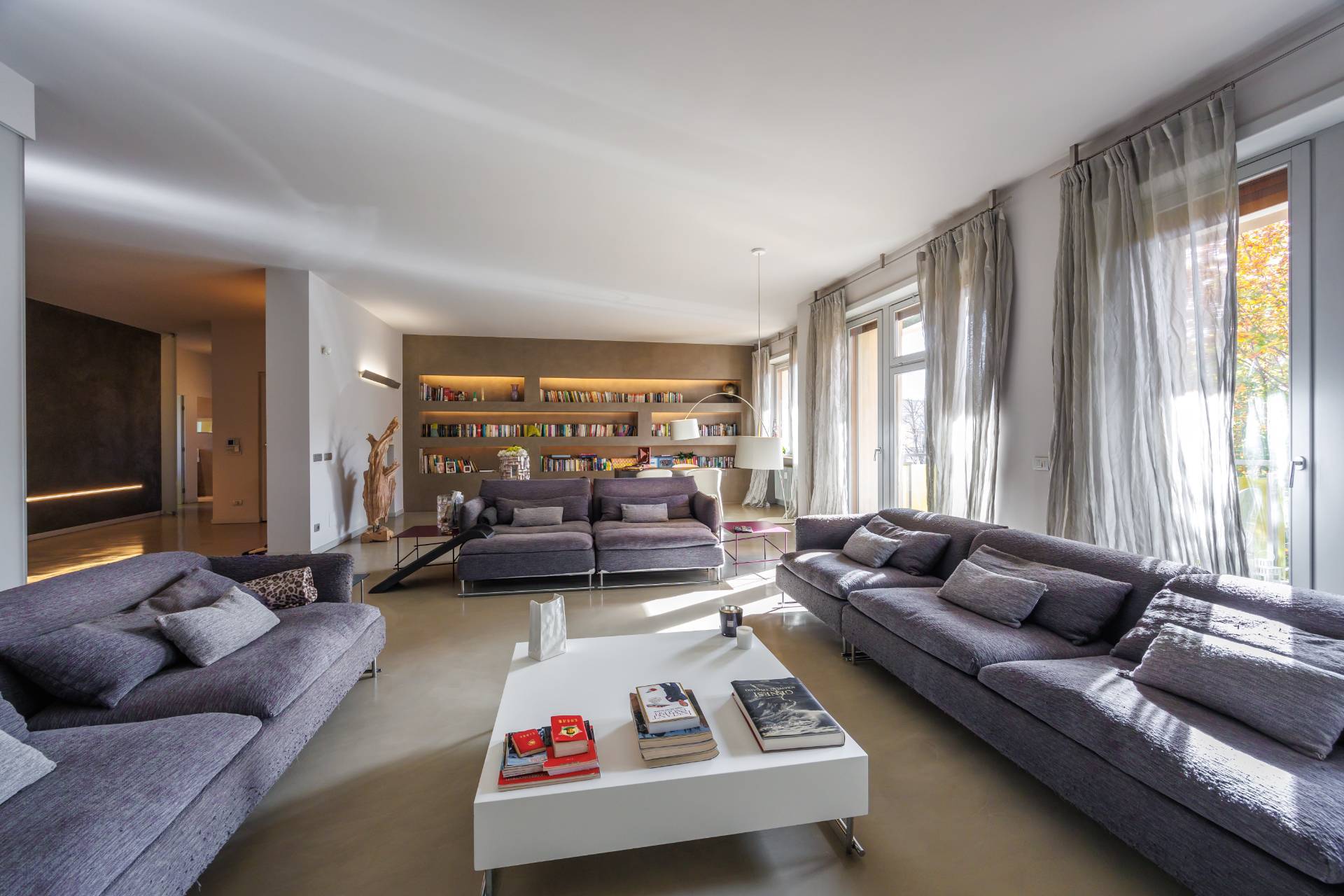 Gli ambienti ampi e luminosi si aprono su un'accogliente zona giorno con living sala da pranzo e cucina, la zona notte è composta da tre camere spaziose, doppi servizi, cabina armadi e lavanderia.