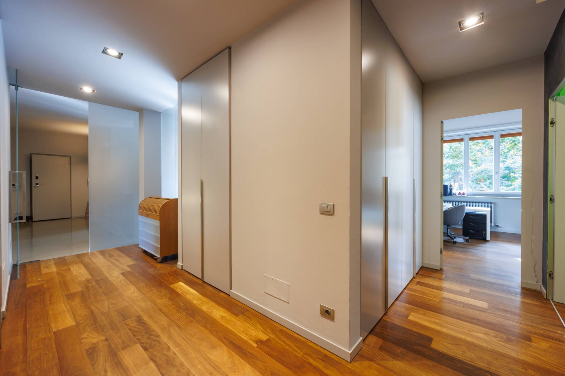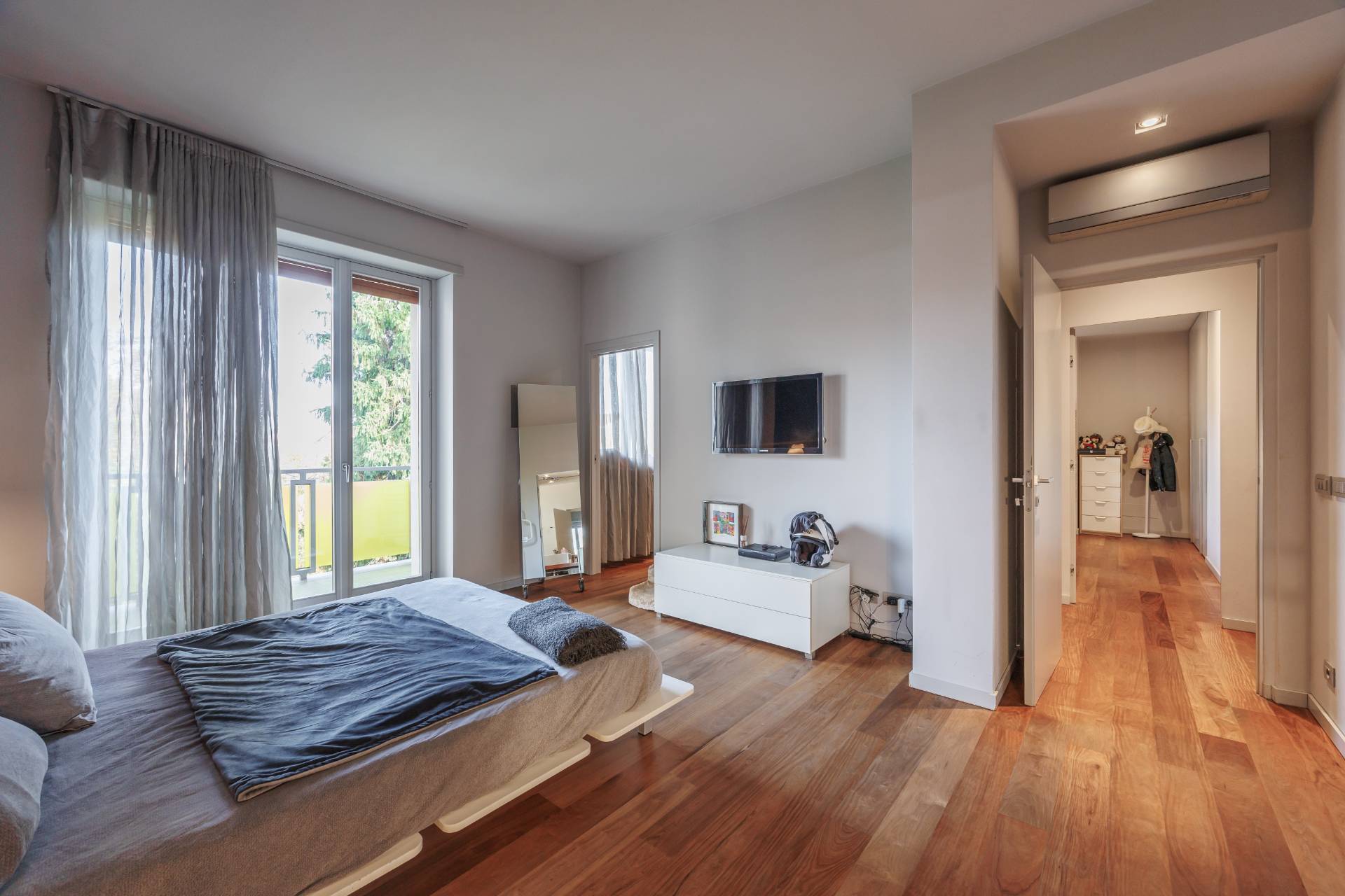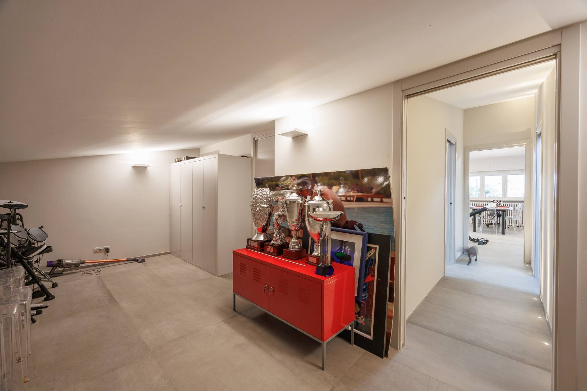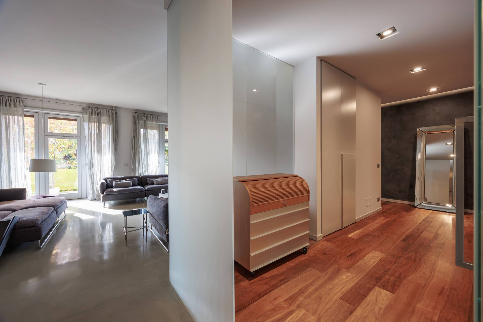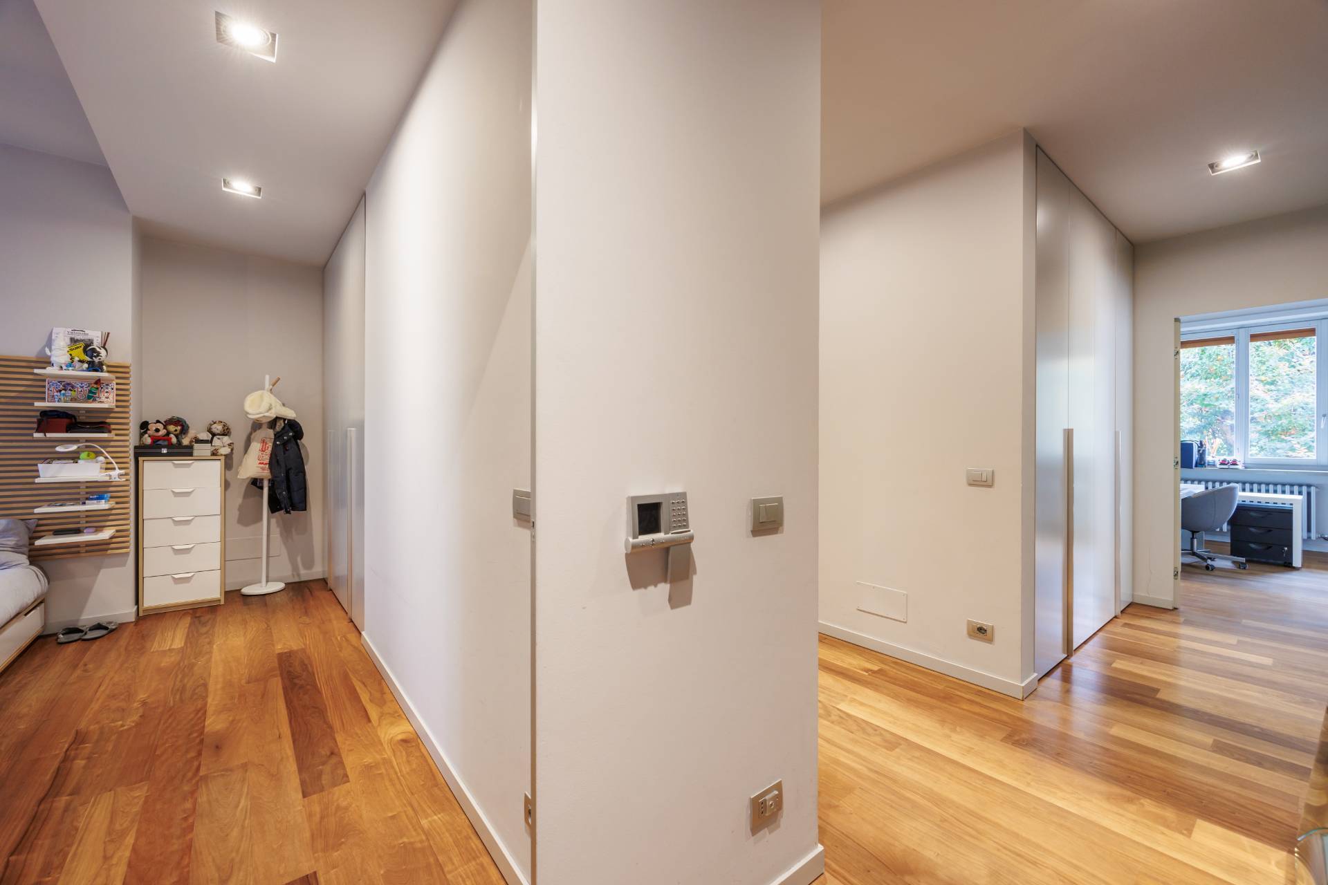 Pavimenti in resina nella zona giorno e parquet nella zona notte, arredi su misura, finiture curate, tecnologie di ultima generazione come impianto antifurto con barriere a infrarossi, porta blindata con ingresso a scheda, tapparelle elettriche con chiusura centralizzata, vetri di sicurezza e impianto di condizionamento.