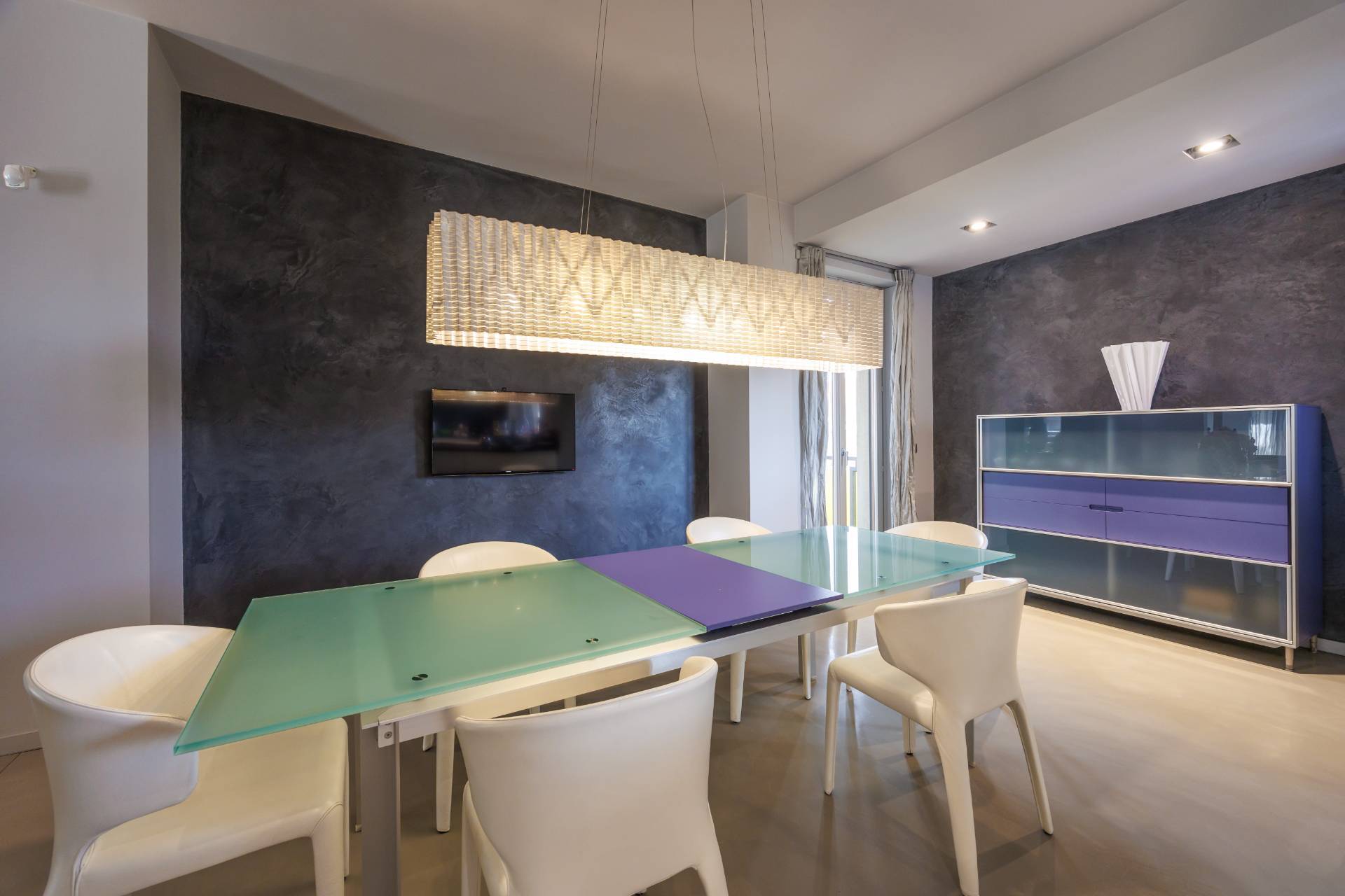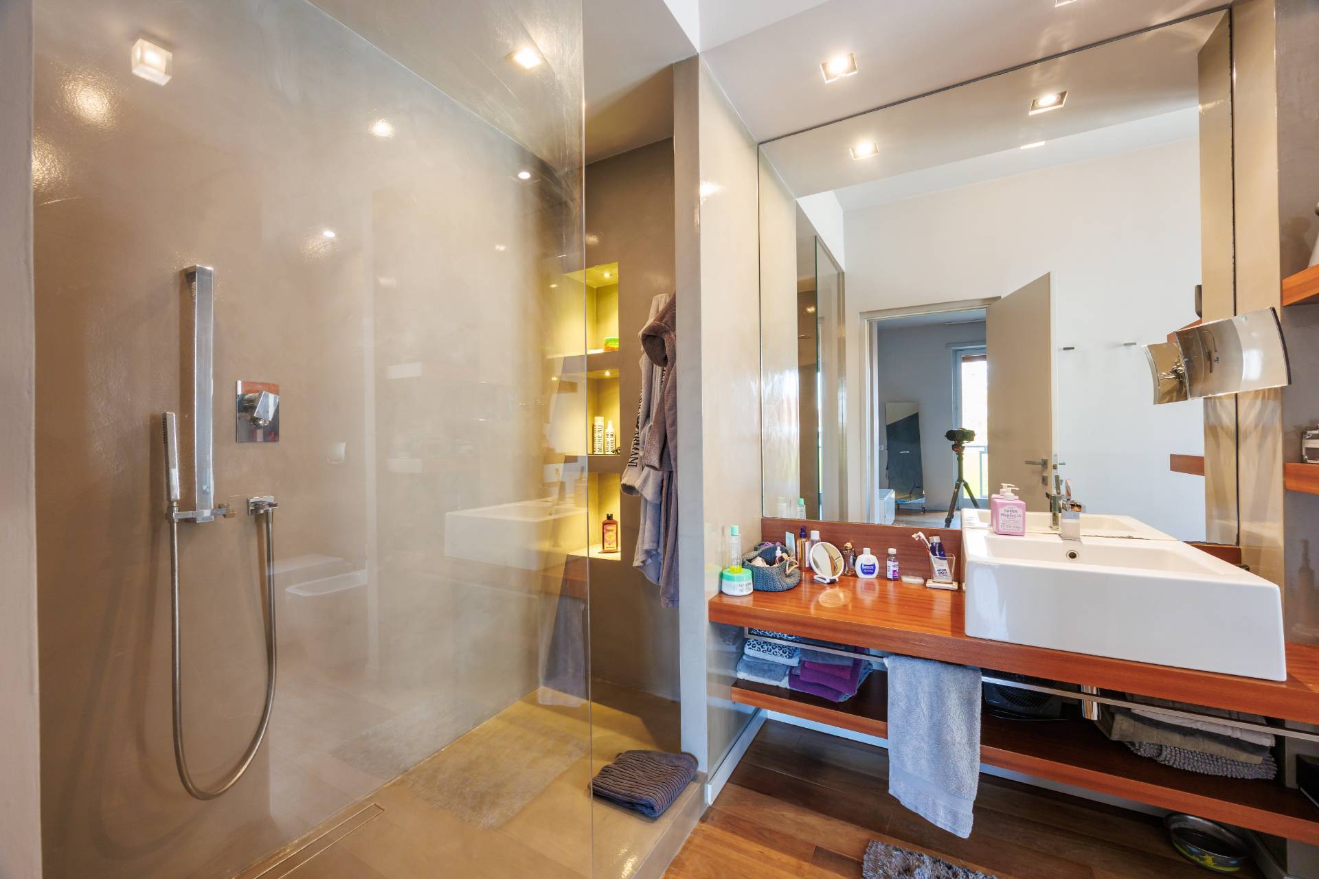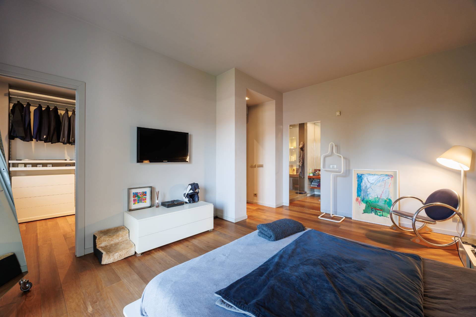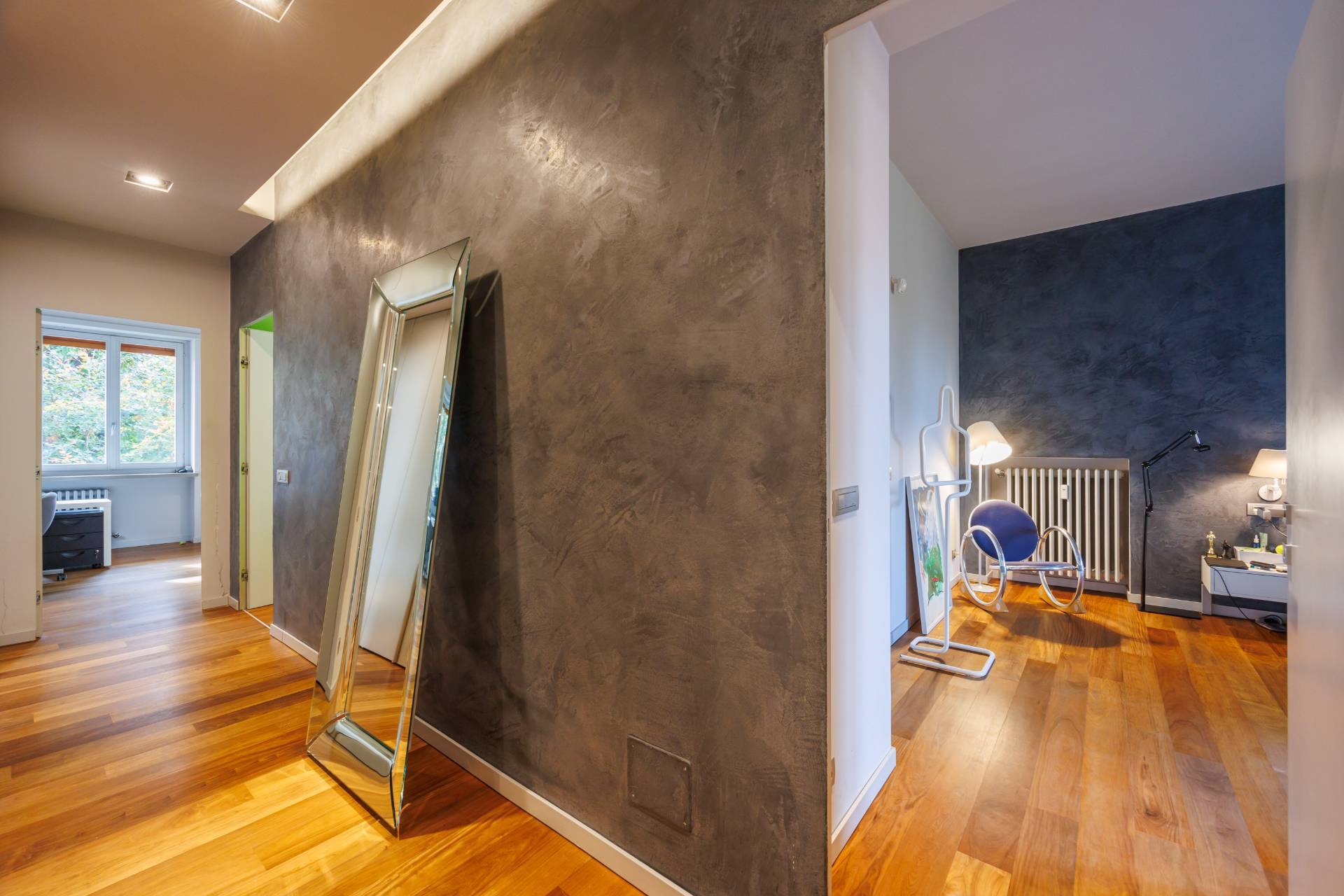 Pavimenti in resina nella zona giorno e parquet nella zona notte, arredi su misura, finiture curate, tecnologie di ultima generazione come impianto antifurto con barriere a infrarossi, porta blindata con ingresso a scheda, tapparelle elettriche con chiusura centralizzata, vetri di sicurezza e impianto di condizionamento.