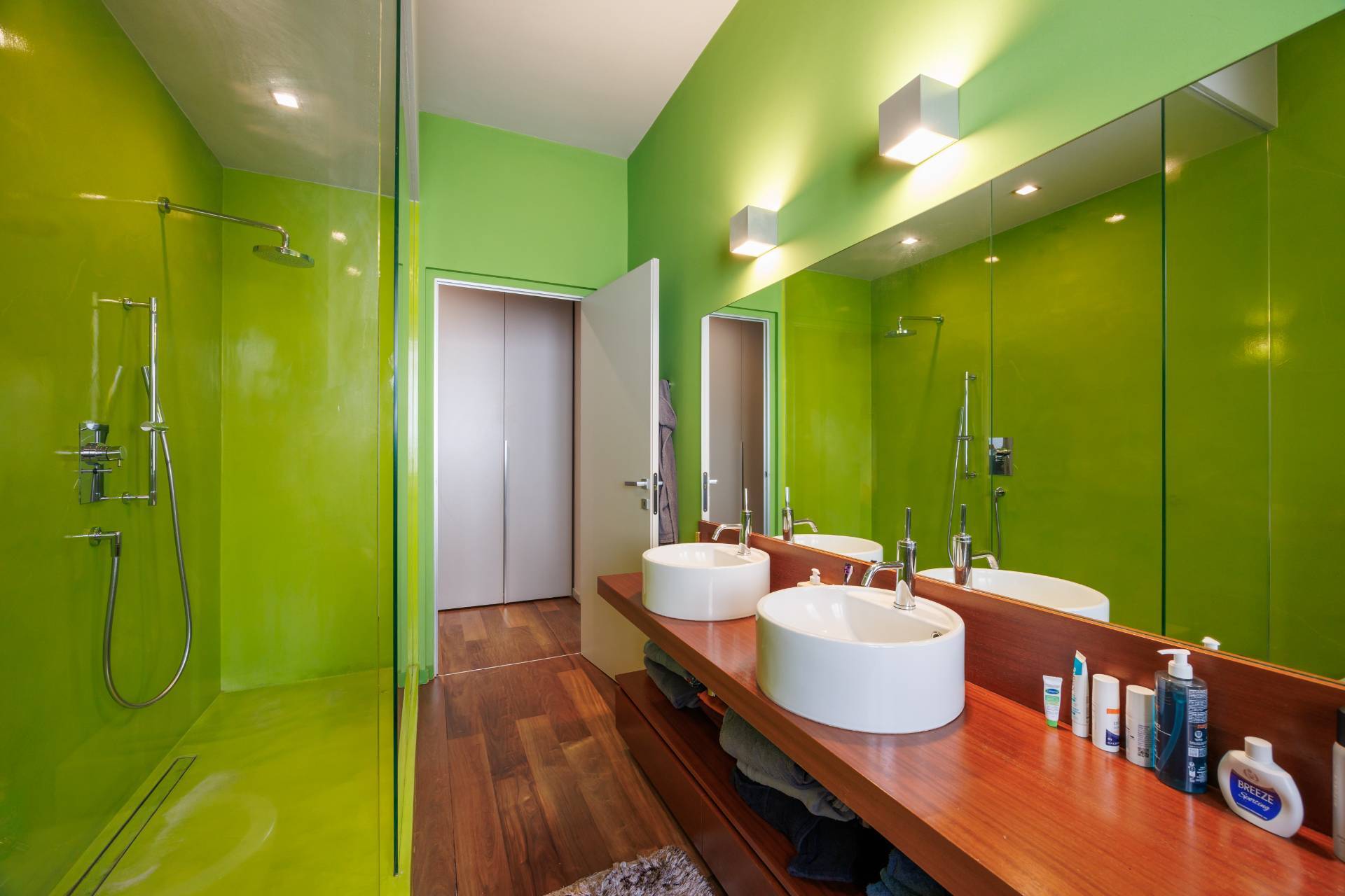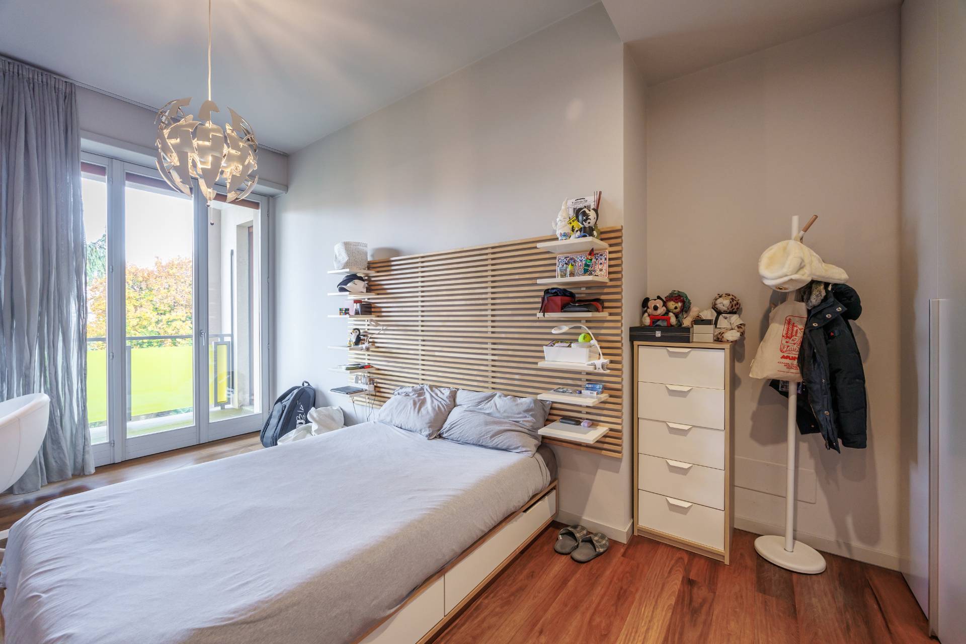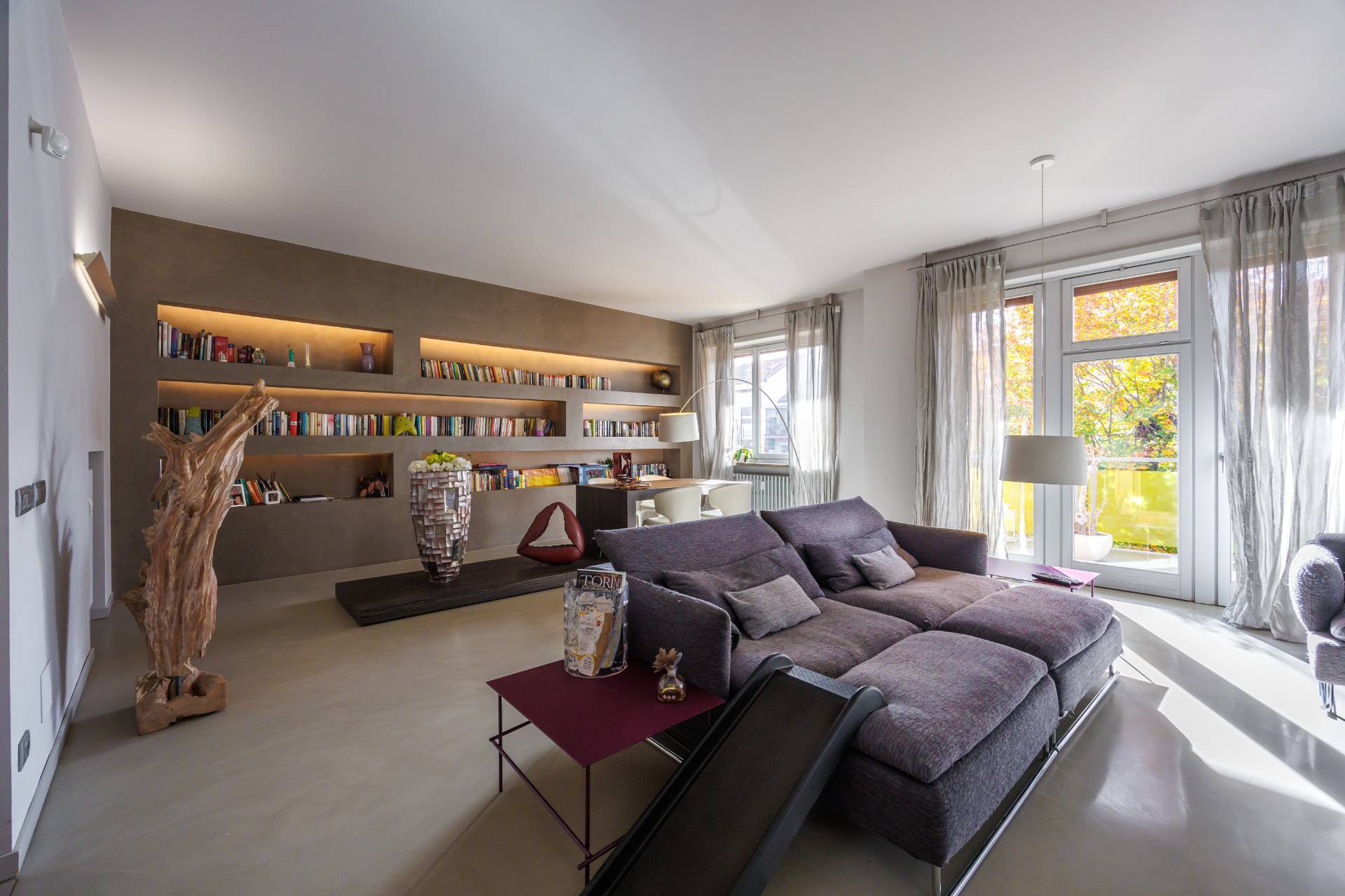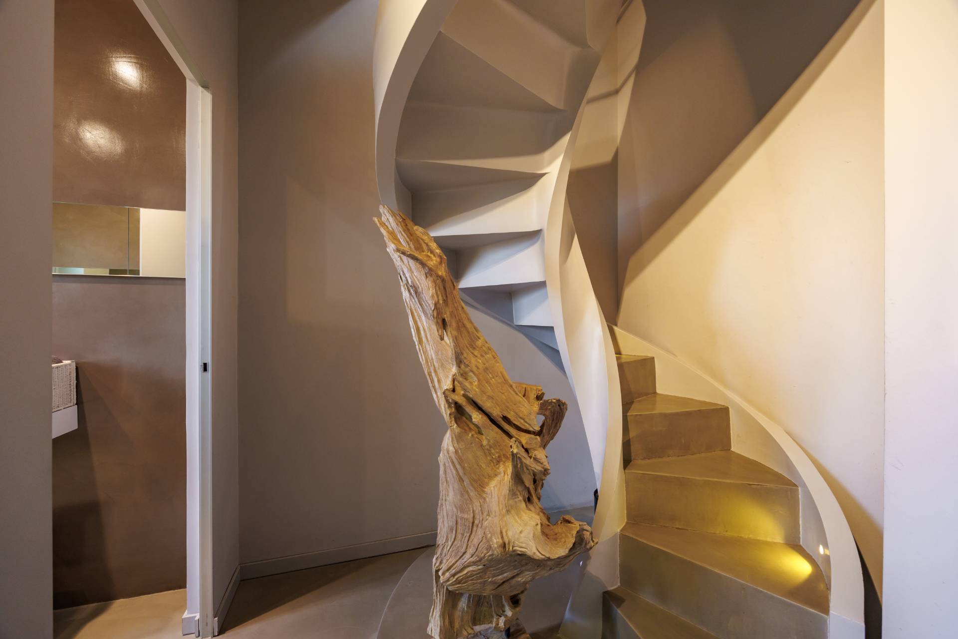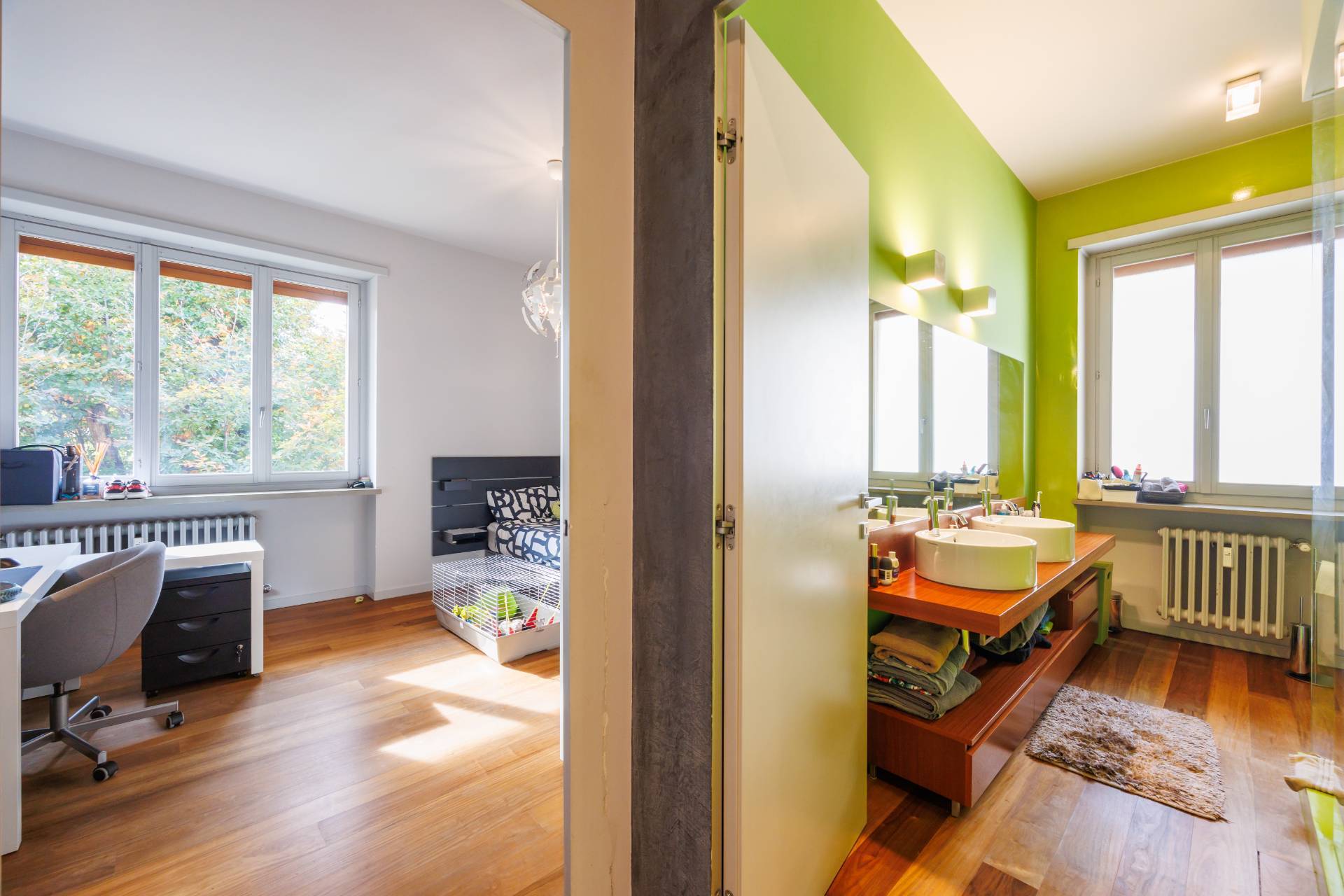 Pavimenti in resina nella zona giorno e parquet nella zona notte, arredi su misura, finiture curate, tecnologie di ultima generazione come impianto antifurto con barriere a infrarossi, porta blindata con ingresso a scheda, tapparelle elettriche con chiusura centralizzata, vetri di sicurezza e impianto di condizionamento.