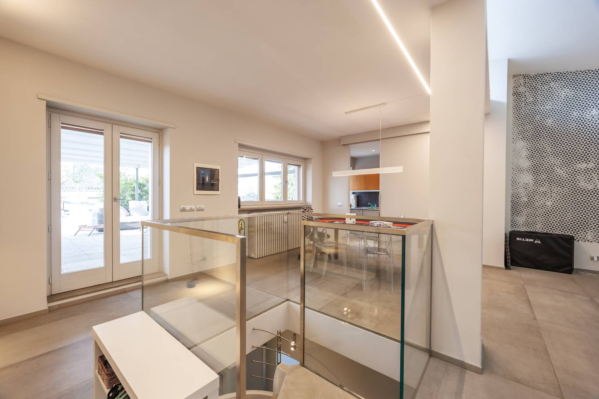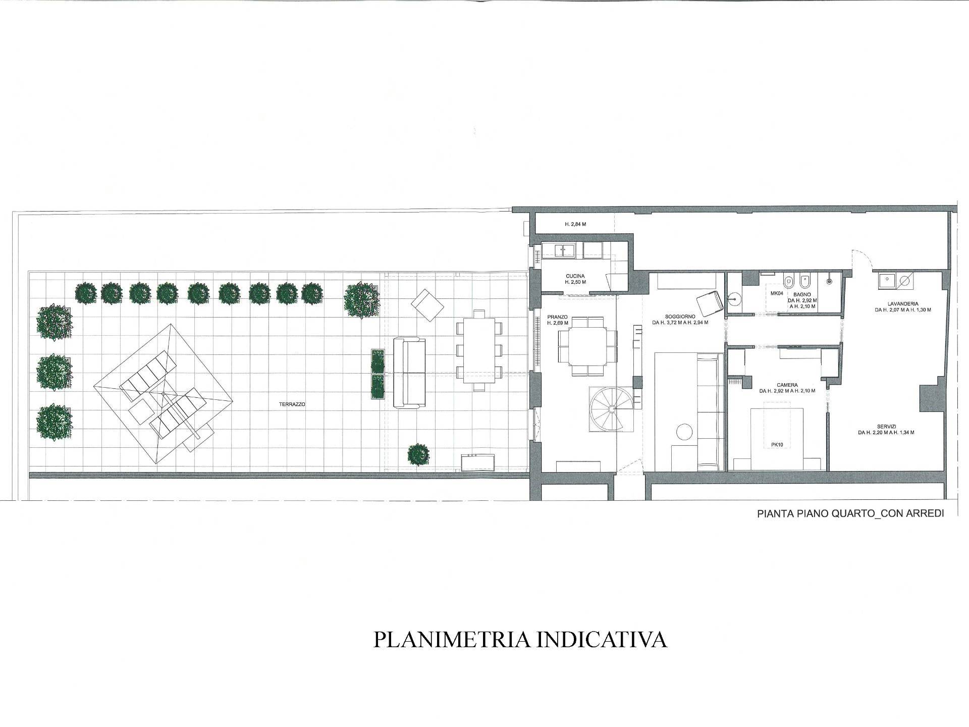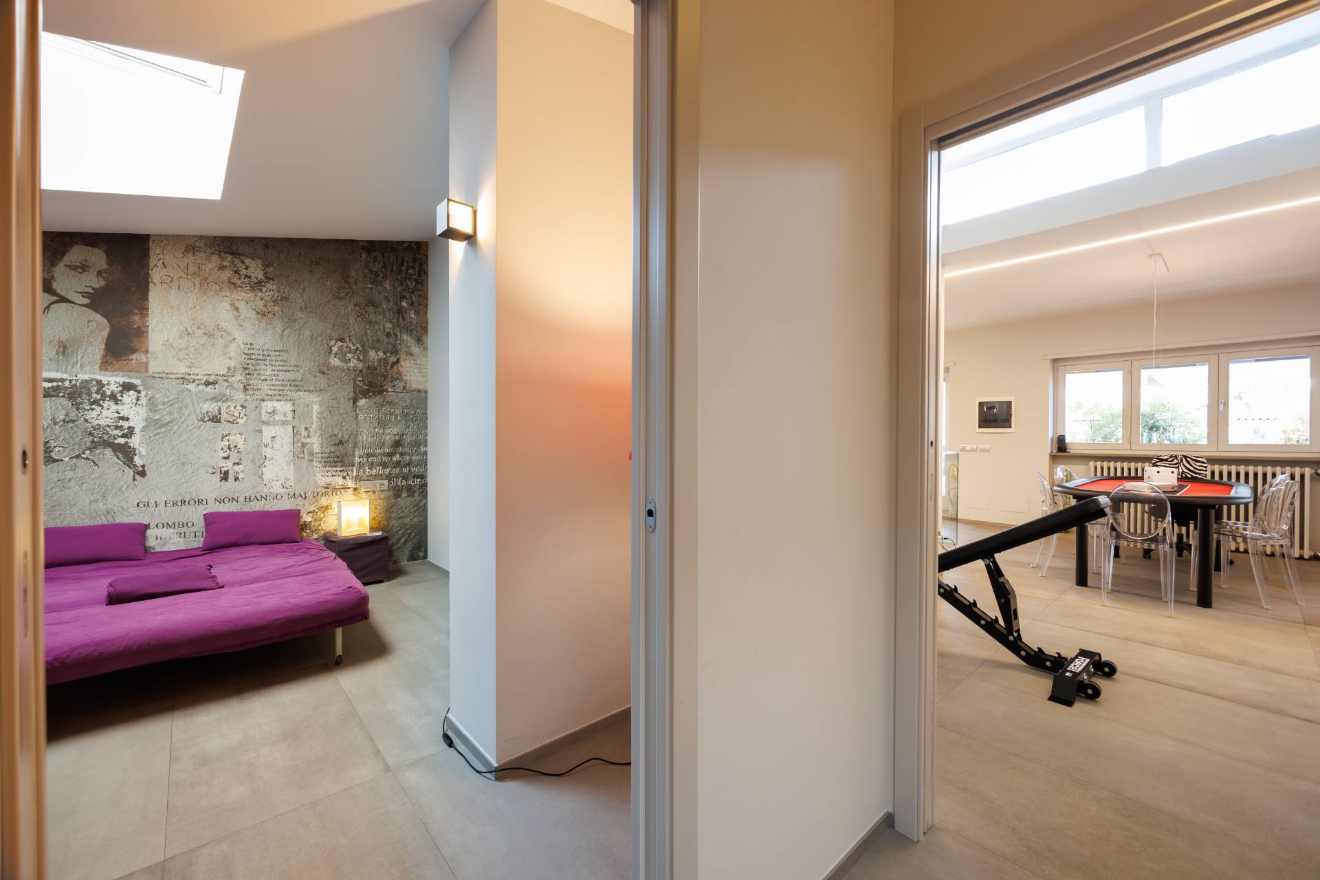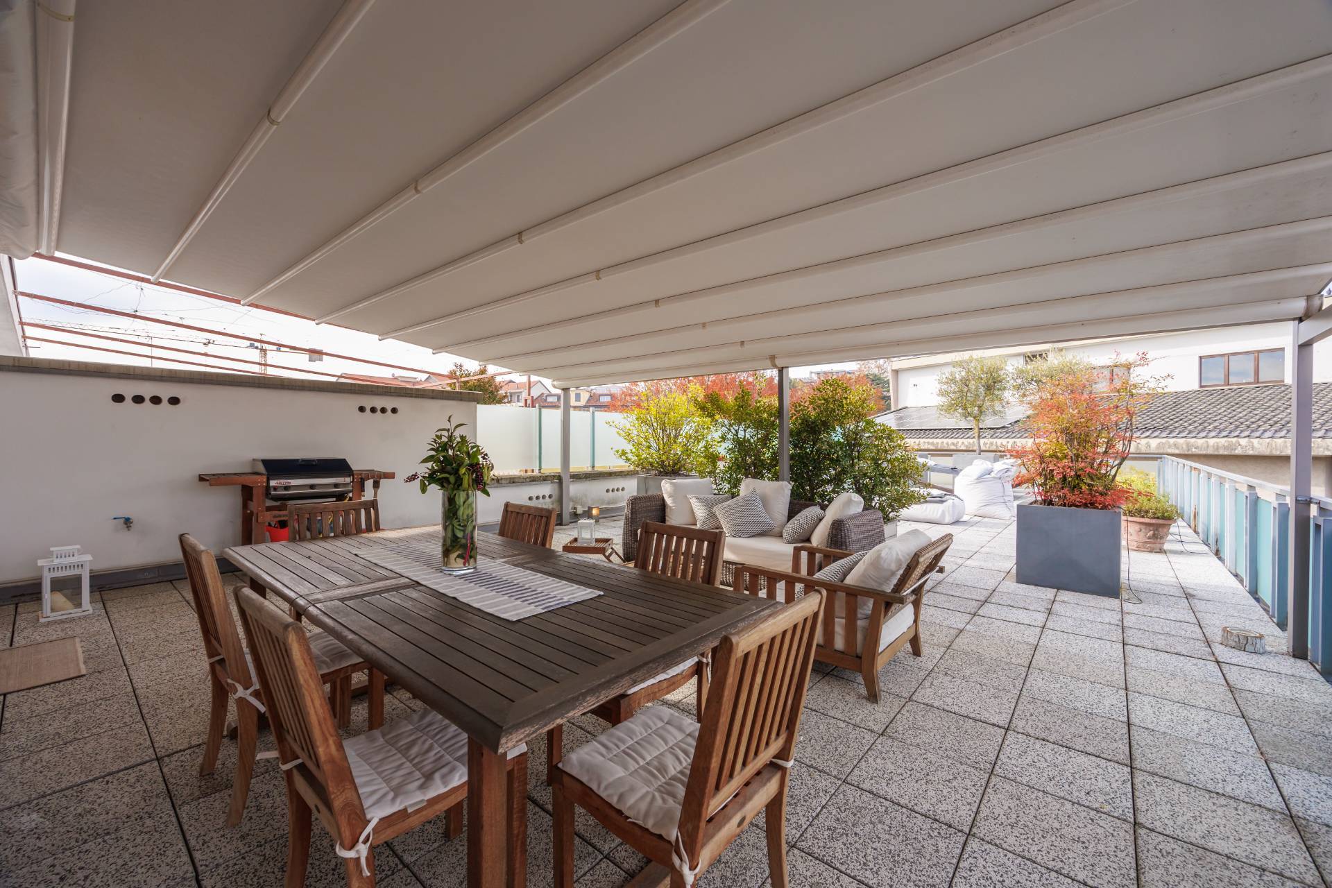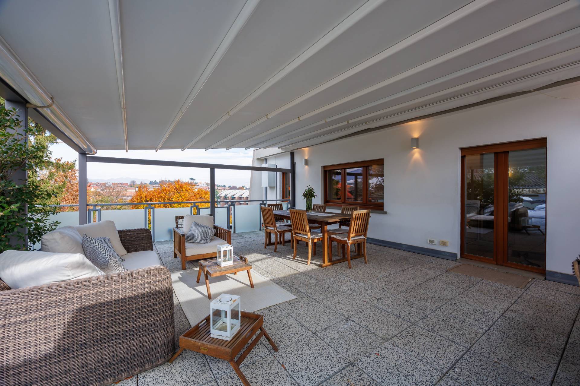Collegata internamente da scala interna troviamo una mansarda composta da tre locali e ulteriore servizio con possibilità di adibirle a studio e terza camera da letto. Il terrazzo vivibile con copertura automatizzata resistente a neve pioggia e vento diventa un vero prolungamento della casa.