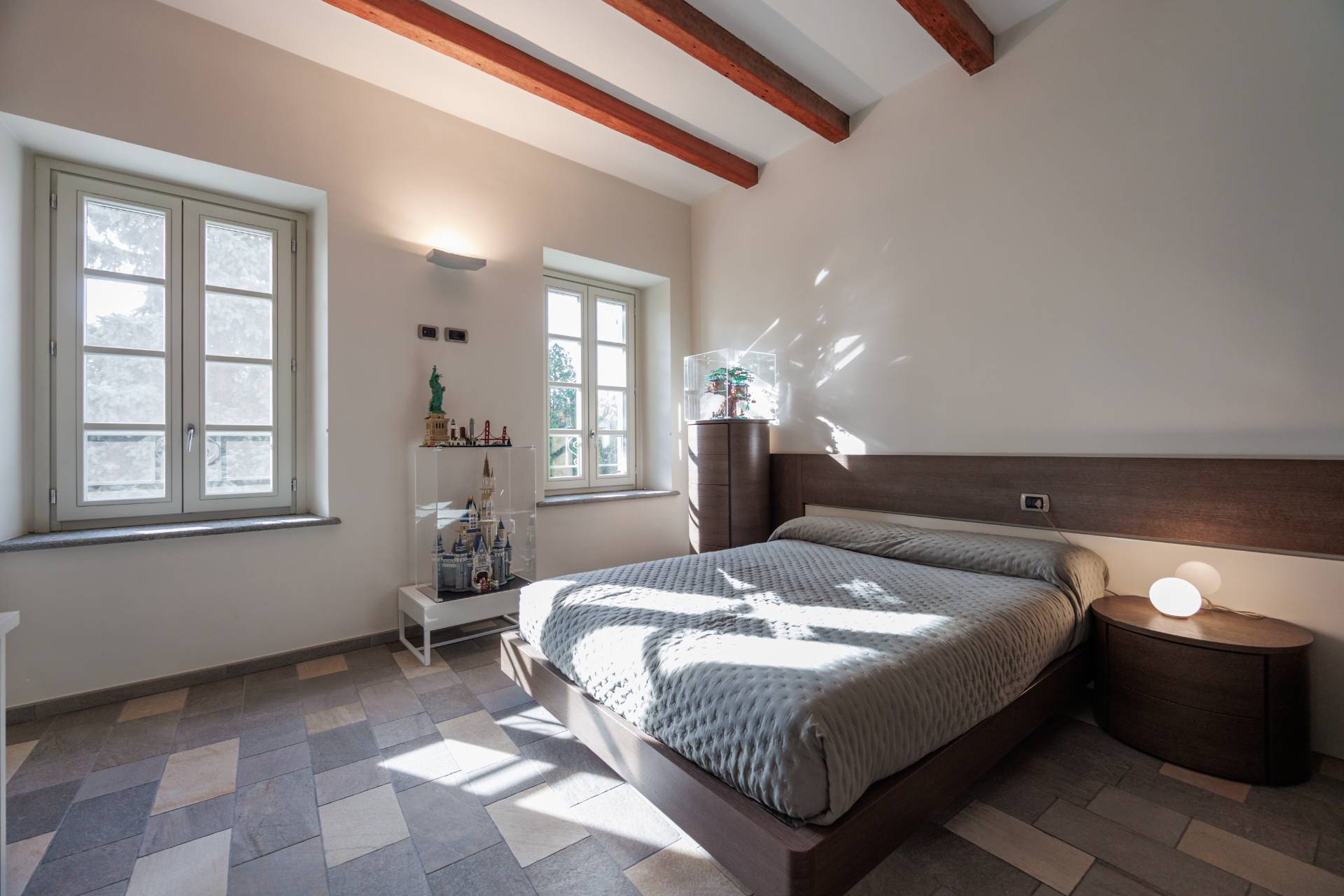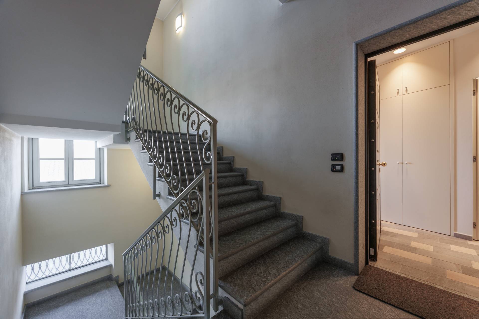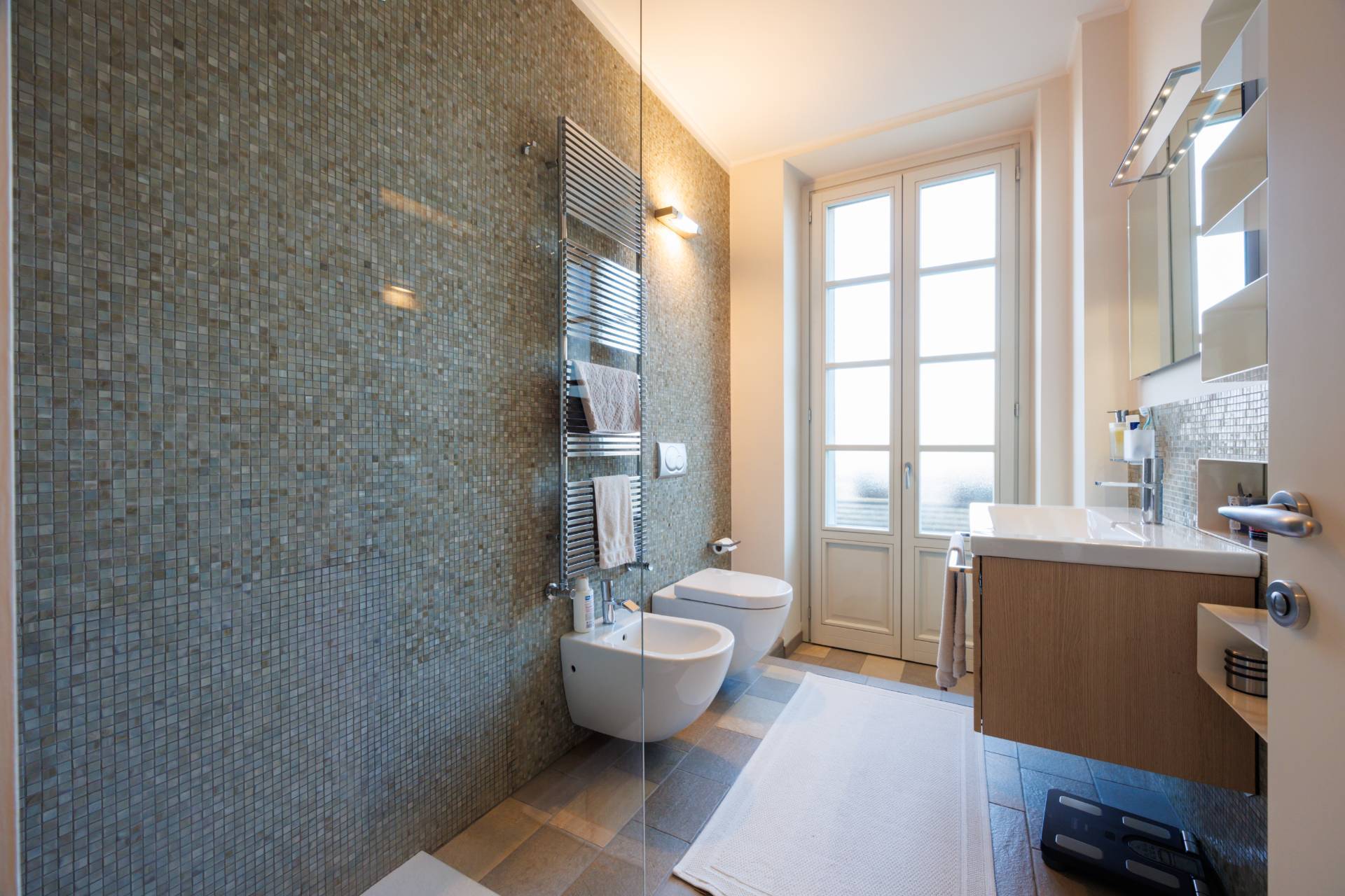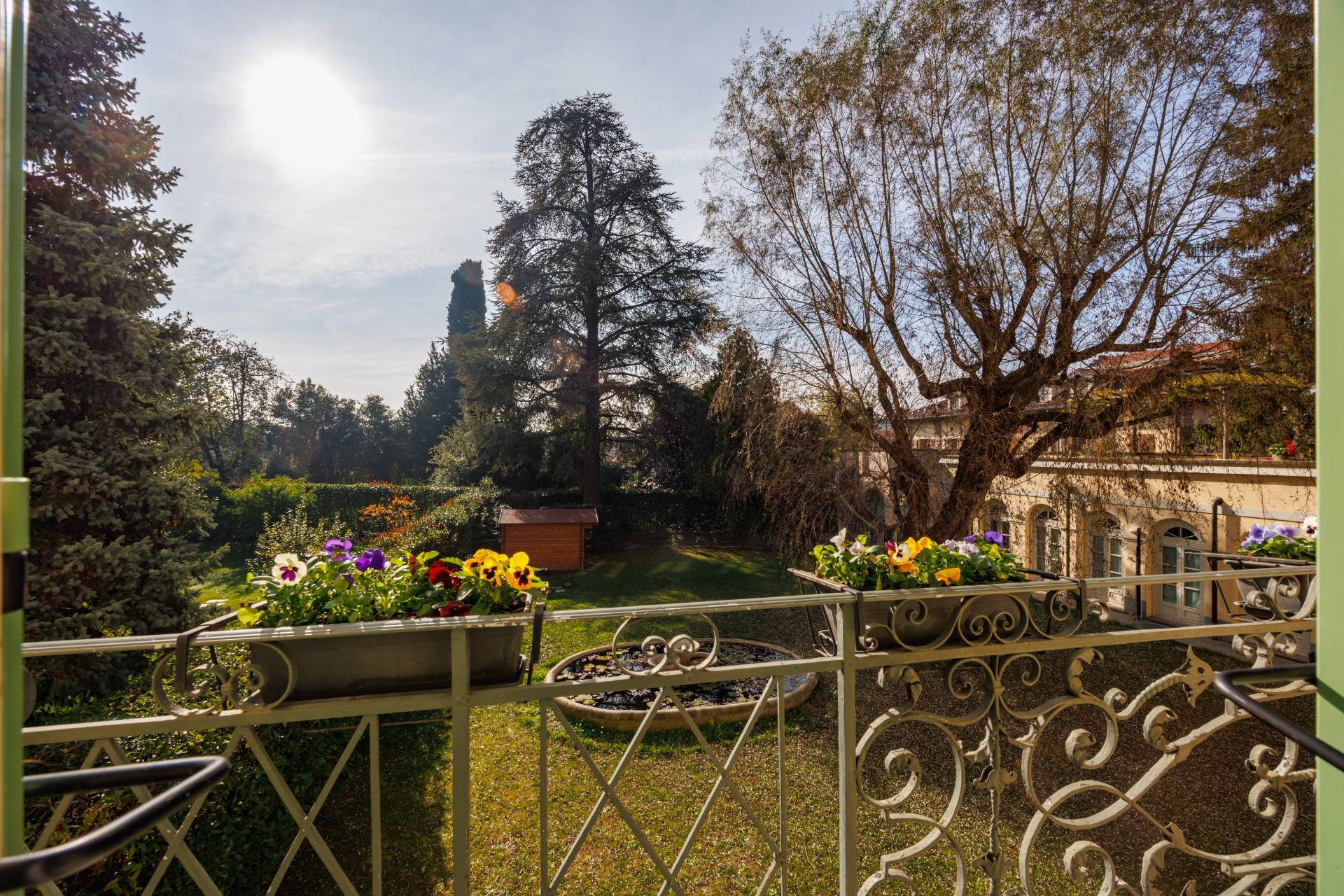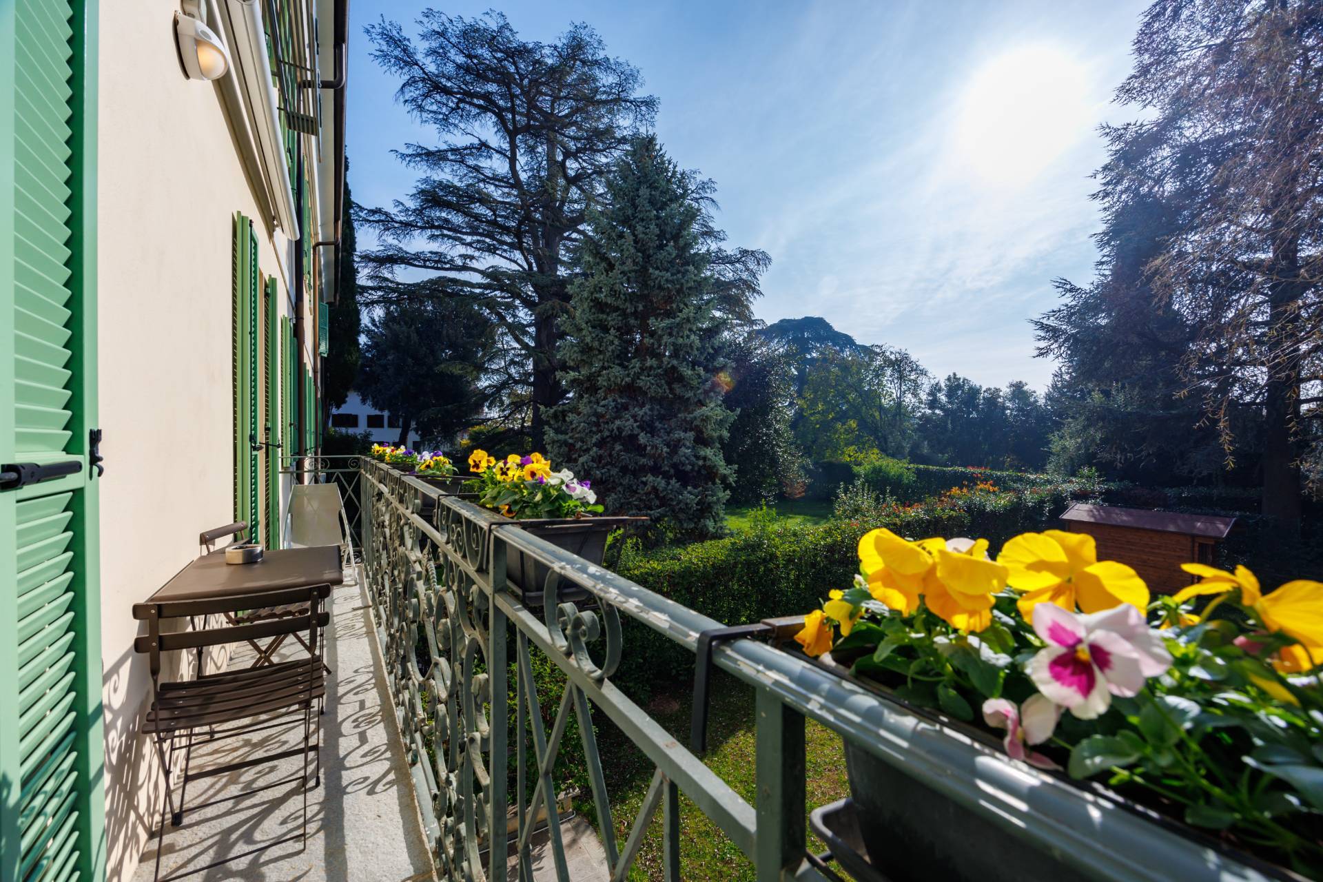 L'Appartamento possiede due balconi uno con affaccio su via Colla e un altro più ampio e godibile sull'interno cortile con vista sul giardino botanico ricco di piante secolari e specie rare allestito nell'800 da Luigi Colla.