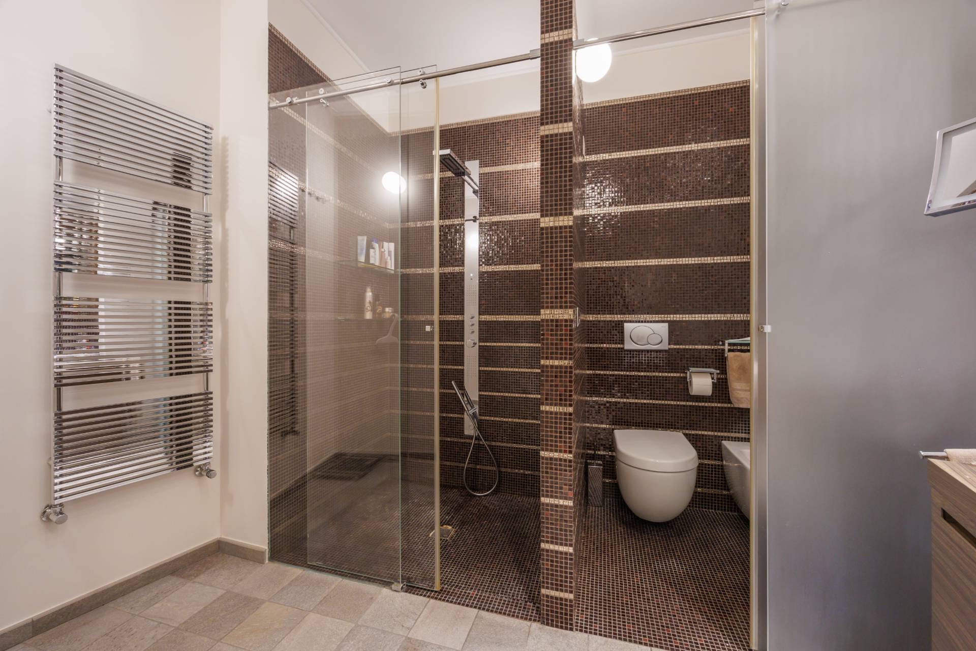 Ogni ambiente è dotato di impianti di riscaldamento e raffreddamento a pavimento.