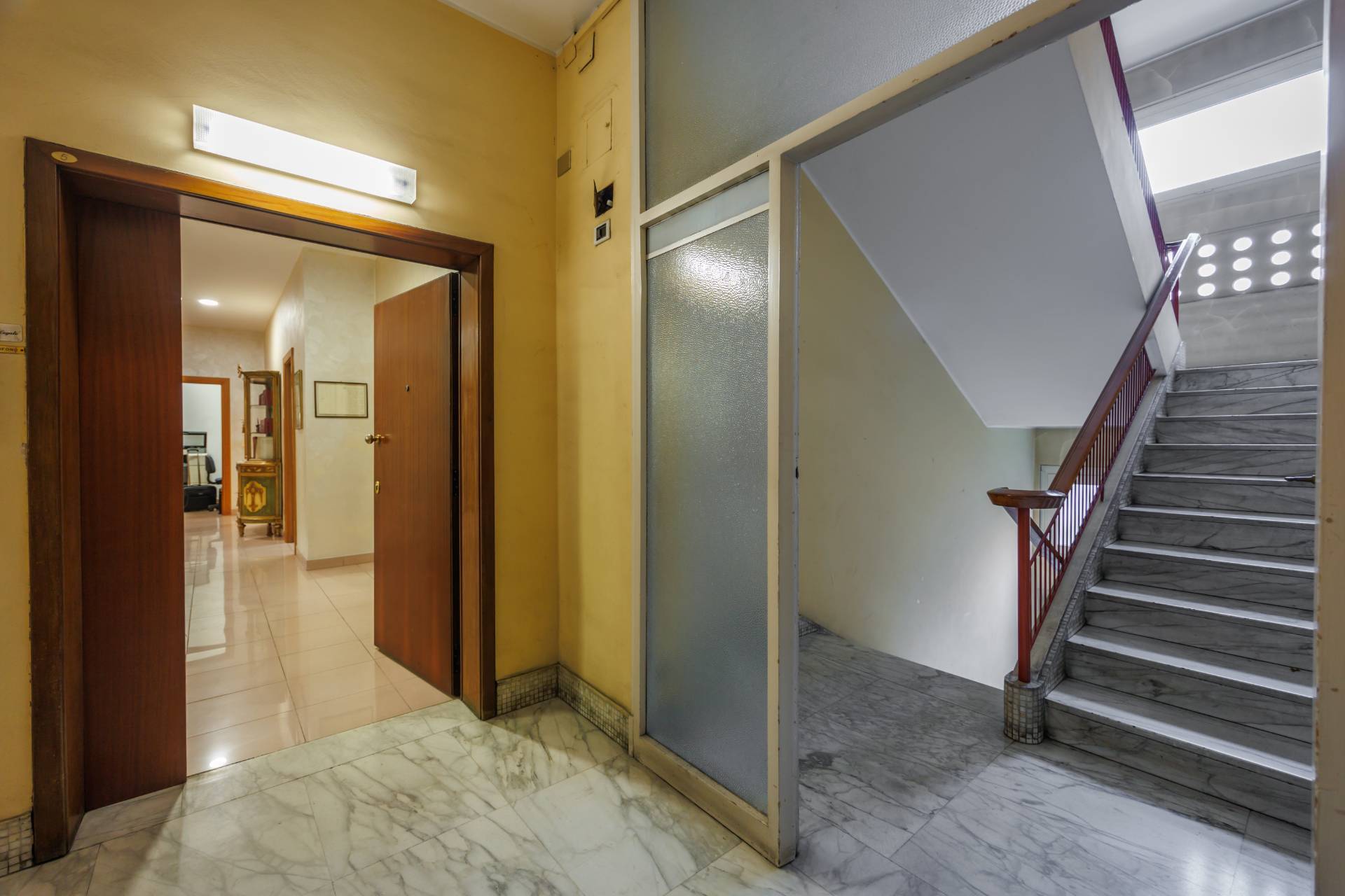 L'immobile è in buone condizioni ed è composto da: ingresso doppio, ampia sala riunioni, quattro stanze spaziose e luminose, comodo ripostiglio, bagno doppio e finestrato, balcone con affaccio interno, cantina di pertinenza