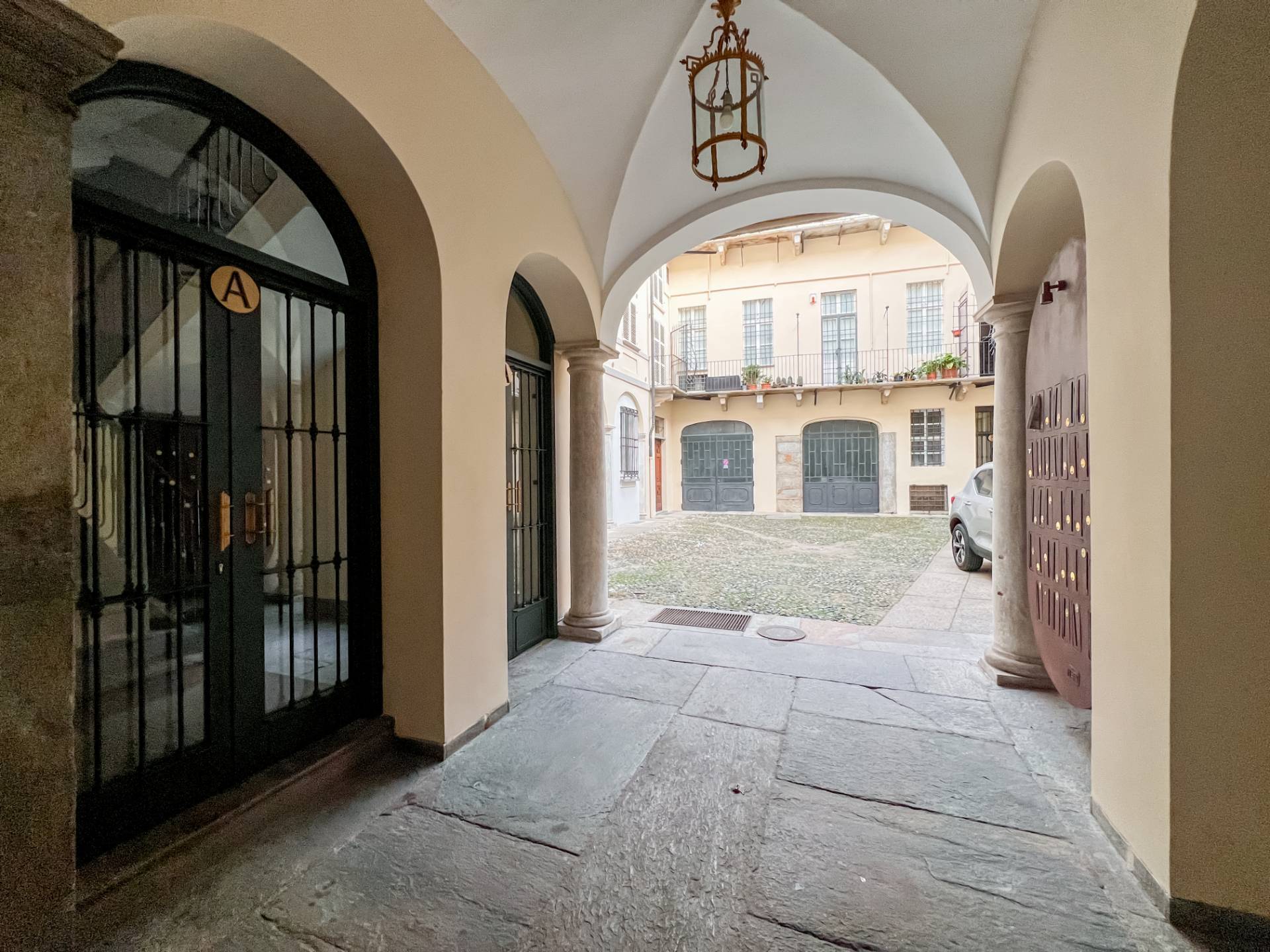 Universita Nel prestigioso Palazzo Frichignono di Castellengo, dimora storica del 1650 di appartenenza a Emanuele Filiberto di Savoia e impreziosita da eleganti decorazioni barocche, proponiamo un esclusivo Appartamento al primo piano nobile dotato di tripla esposizione e servito da ascensore. L'immobile è caratterizzato da ambienti di ampia metratura e da dettagli originali di grande fascino, quali soffitti lignei a cassettoni e soffitti affrescati, che testimoniano l'autenticità e il valore storico della residenza. Internamente si compone di ingresso, ampio salone di circa 40 mq con camino originale del Seicento, sala da pranzo, cucina con balcone angolare affacciato sul cortile interno, due camere da letto, una camera singola, due bagni, ulteriore bagno/lavanderia, disimpegno, ripostiglio, un soppalco ad uso studio/camera ospiti e un secondo soppalco ad uso deposito. Completa la proprietà una cantina di pertinenza.