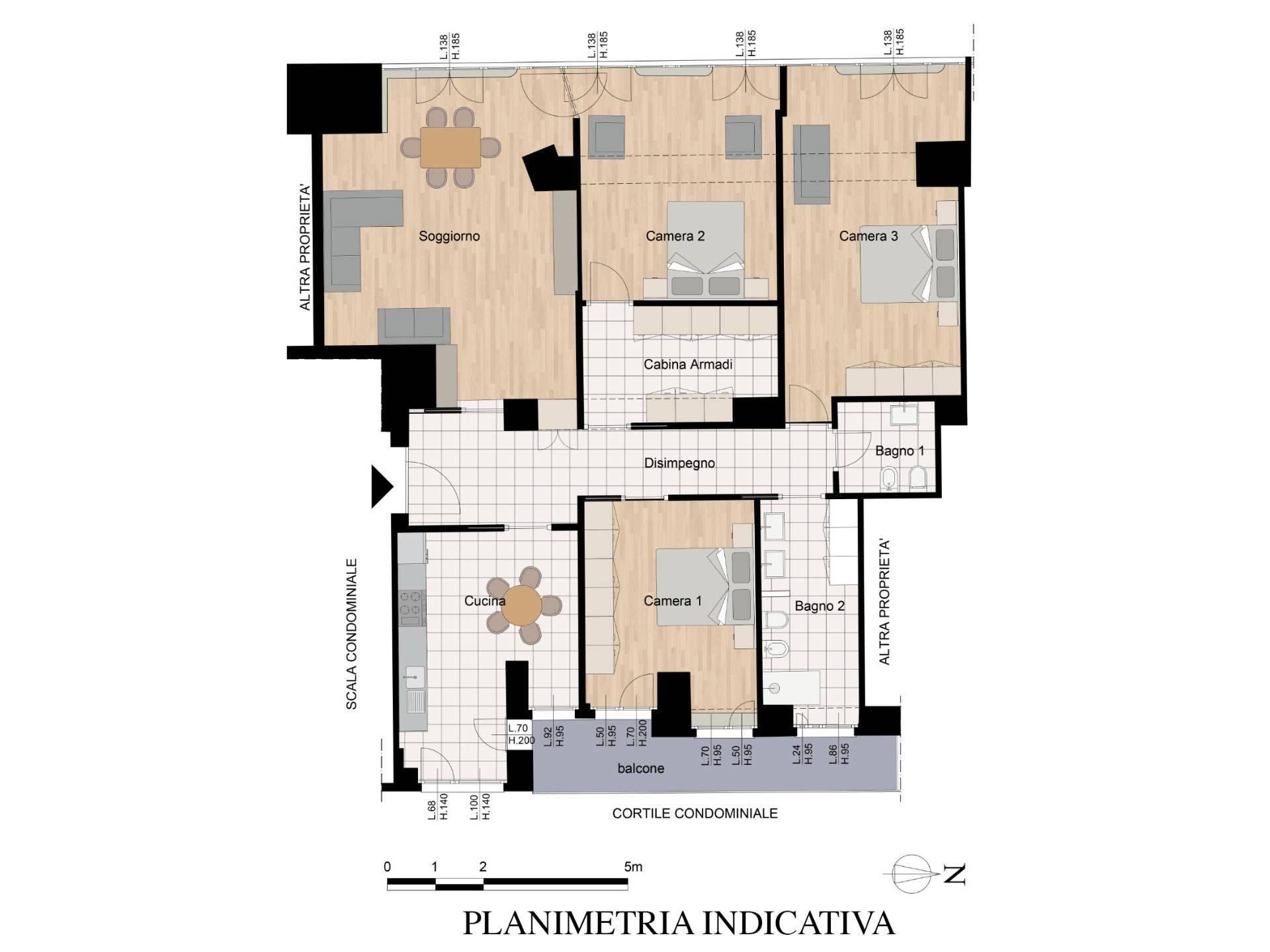 L'immobile è composto da: ingresso doppio, ampio salone, quattro camere spaziose e luminose di cui una con predisposizione per cucina, comodo ripostiglio, bagno finestrato, balcone con affaccio interno, cantina di pertinenza.