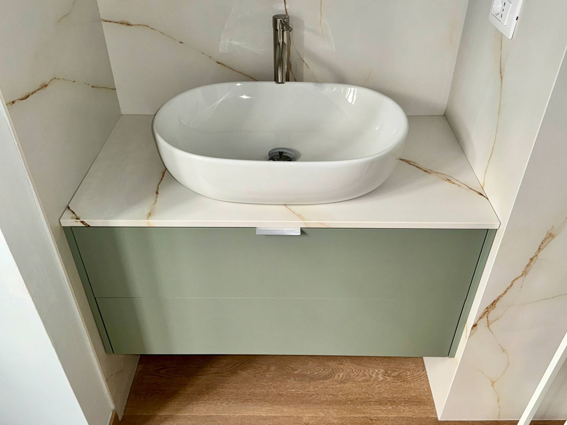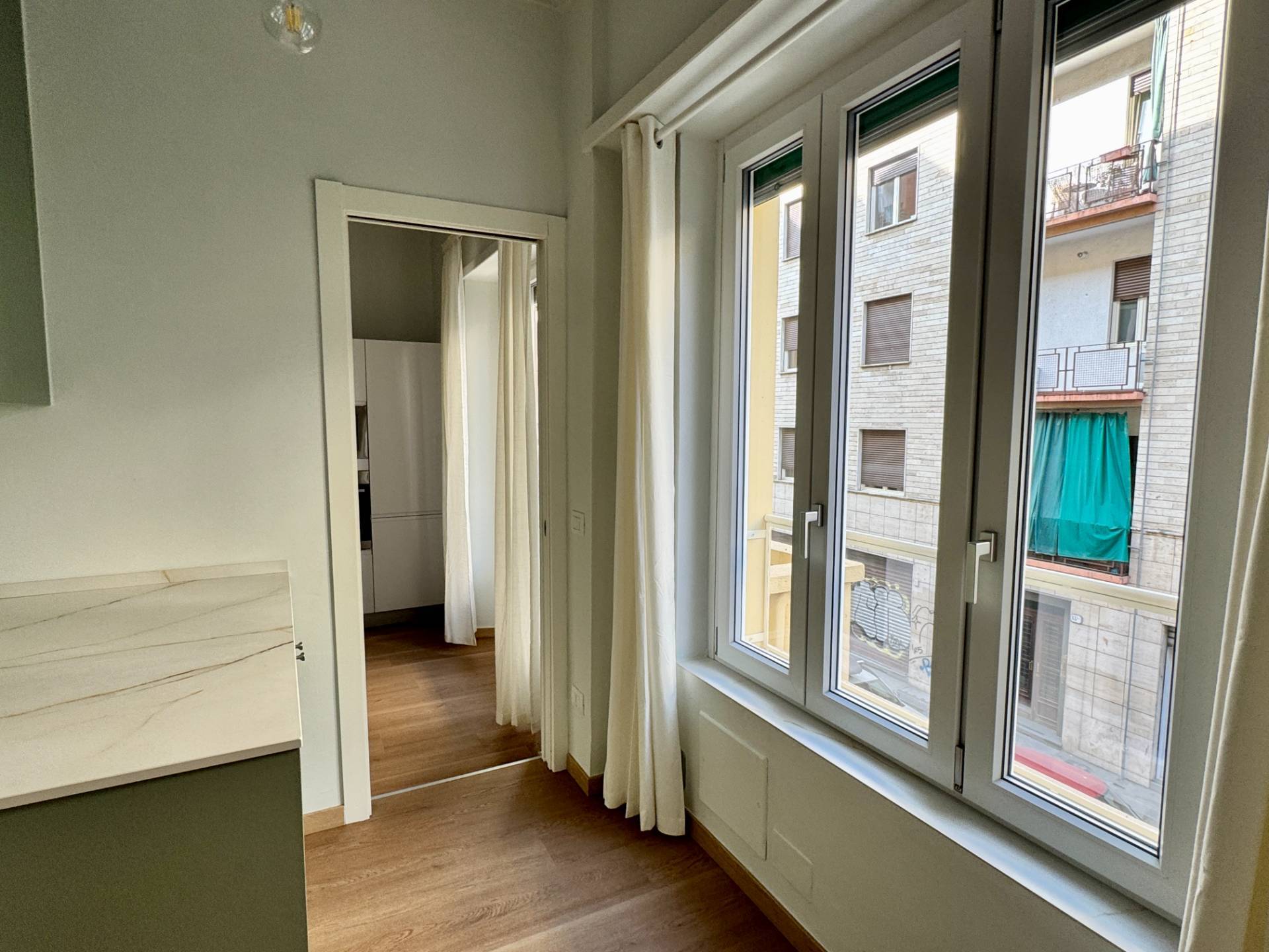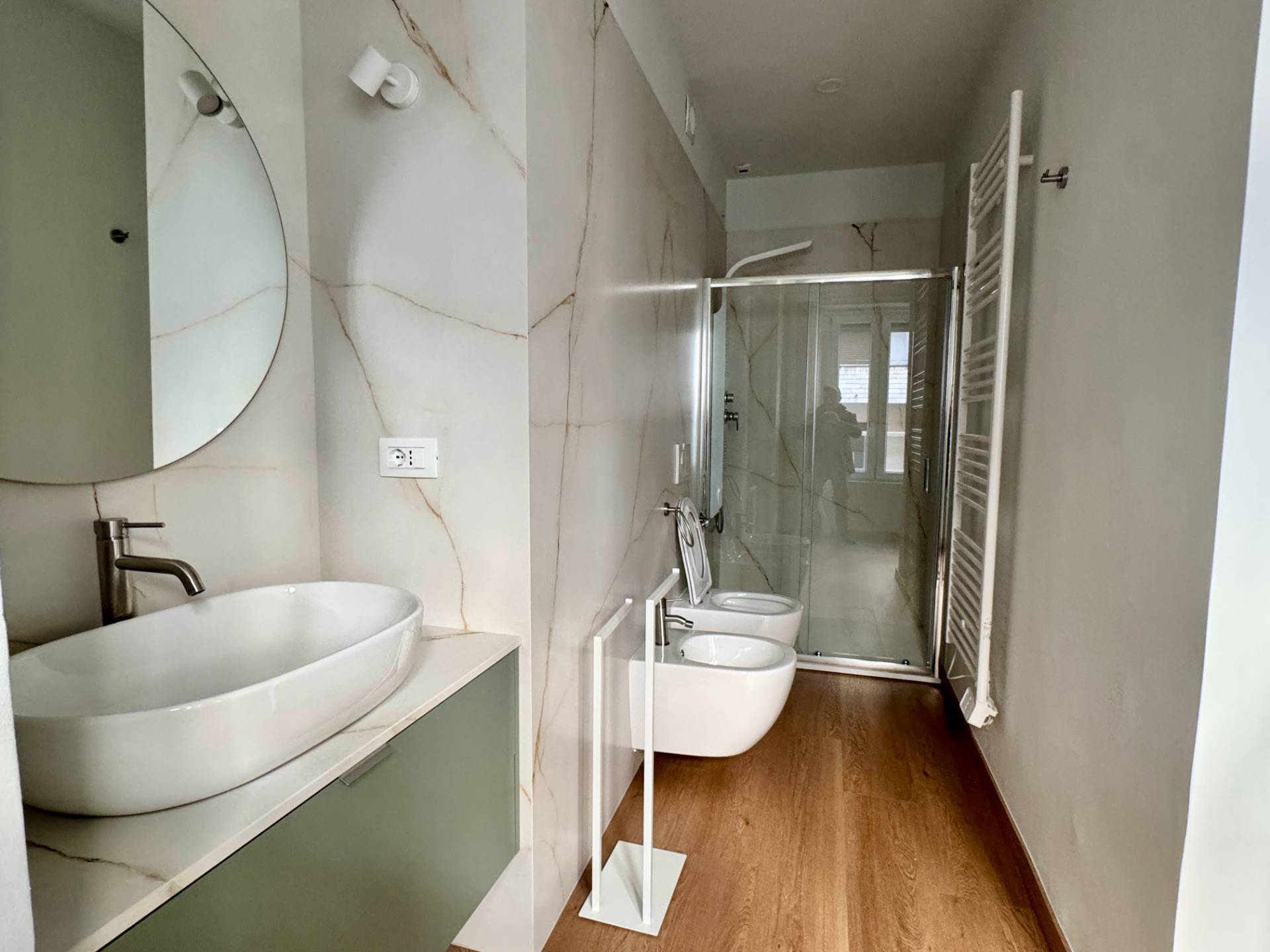 L'Appartamento è composto da ingresso, soggiorno con cucina a vista e balcone, ampia camera da letto e grande sala bagno corredata di mobilio elegante e moderno.
