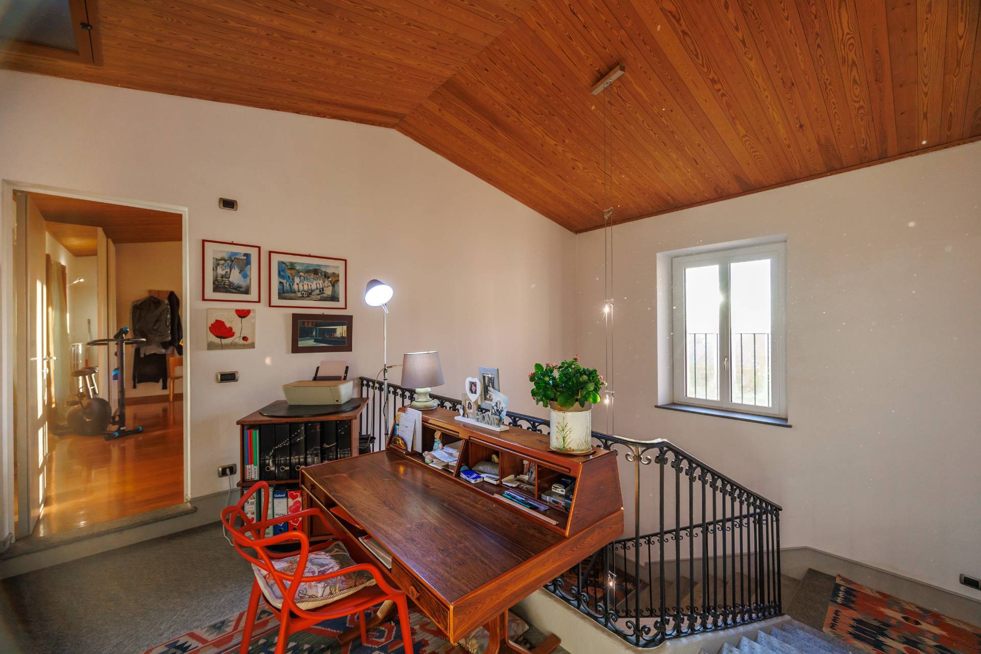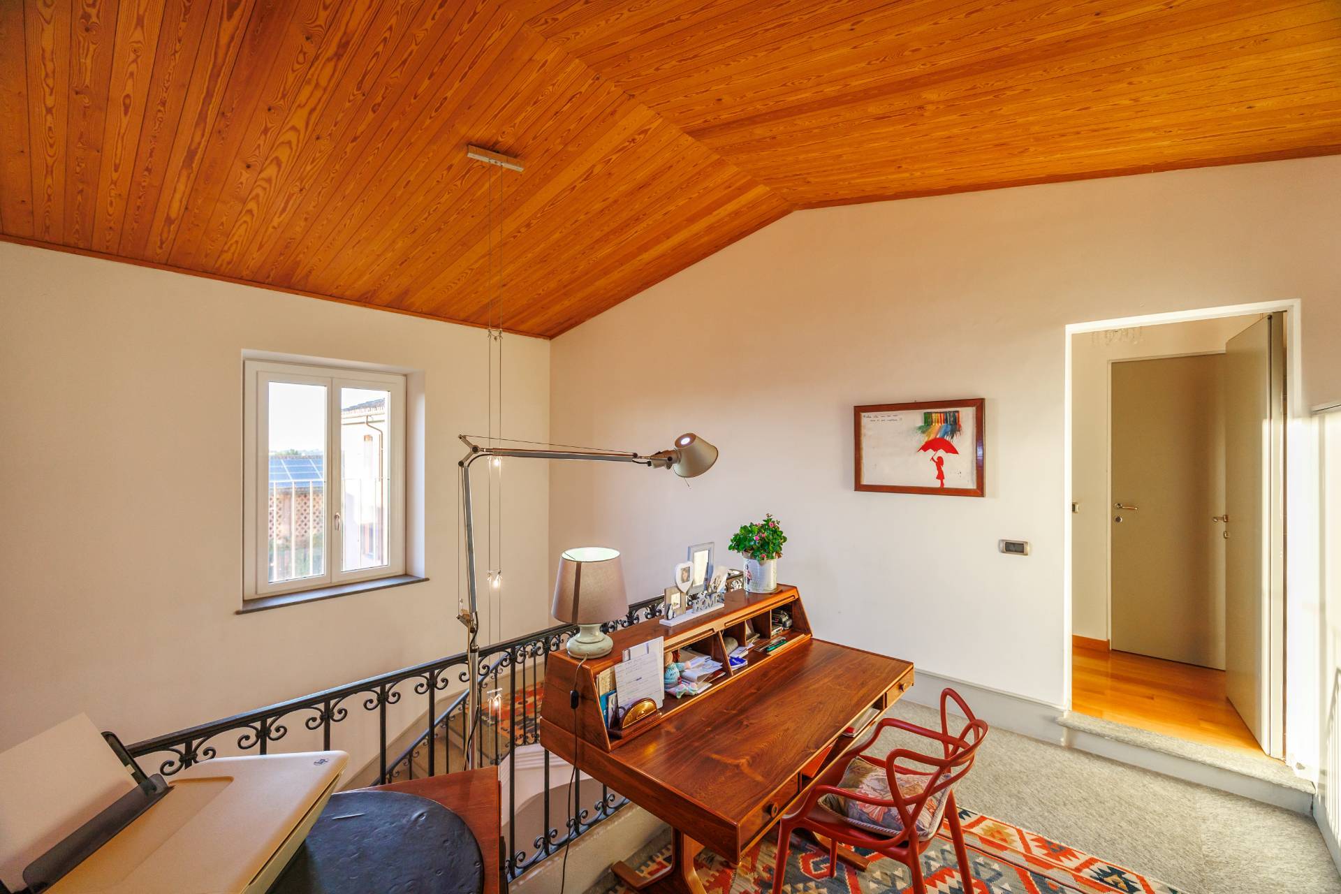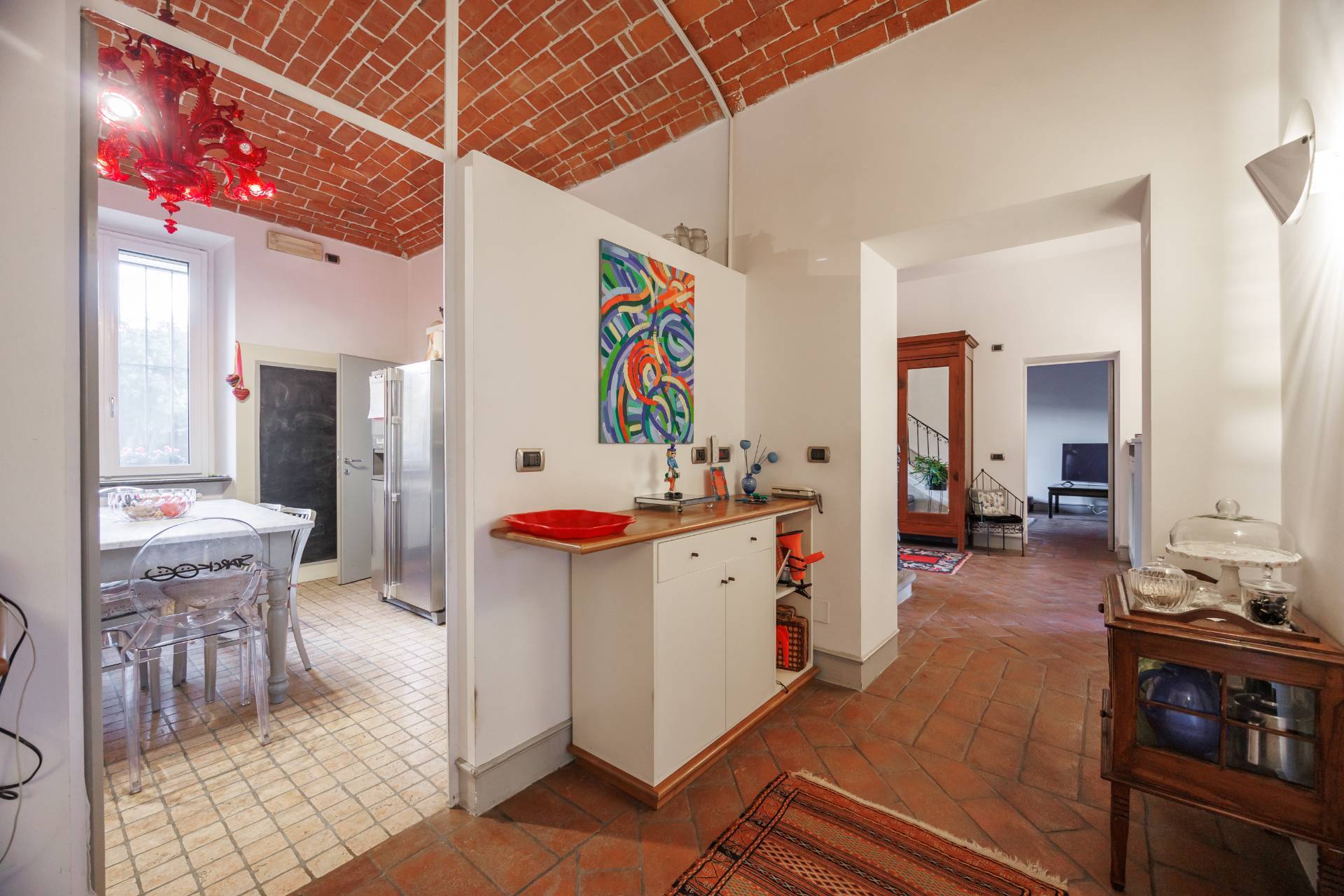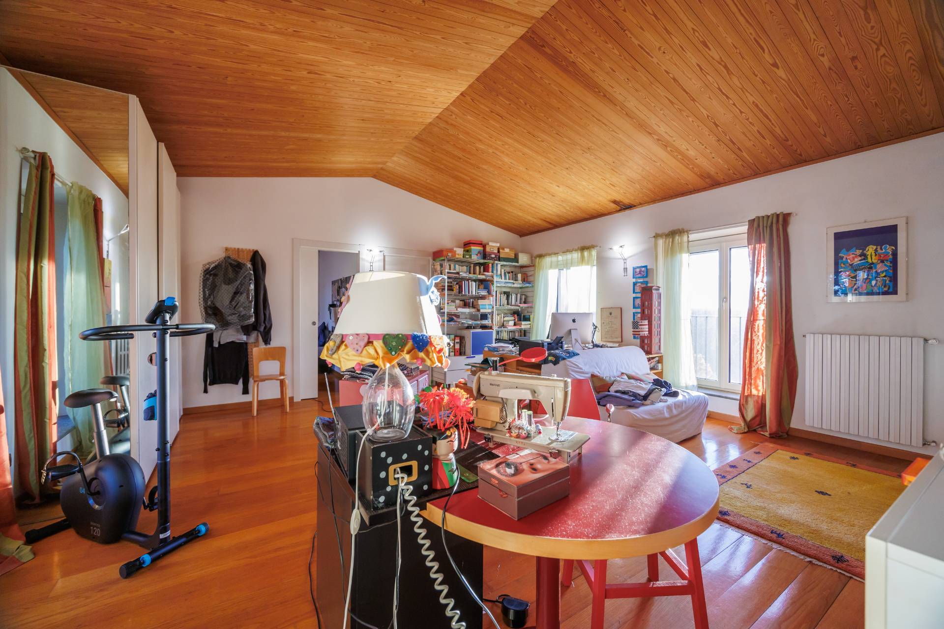 L'abitazione, disposta su ampi volumi e caratterizzata da soffitti alti e affacci sul parco, è composta da ingresso, due saloni con camino, una cucina abitabile, quattro camere da letto, un grande open space ideale come studio, area hobby o ulteriore zona notte, tre bagni, una cantina e lavanderia.