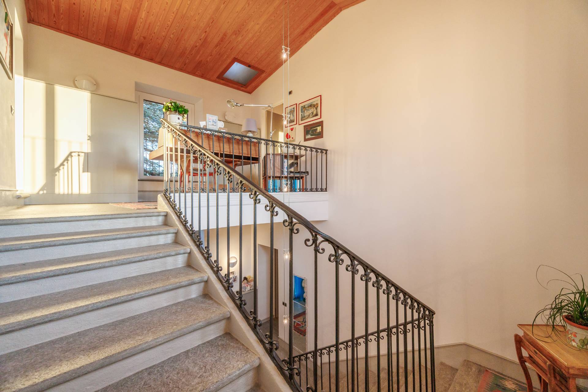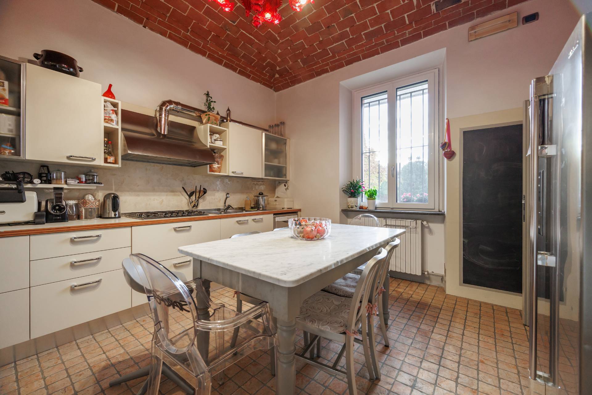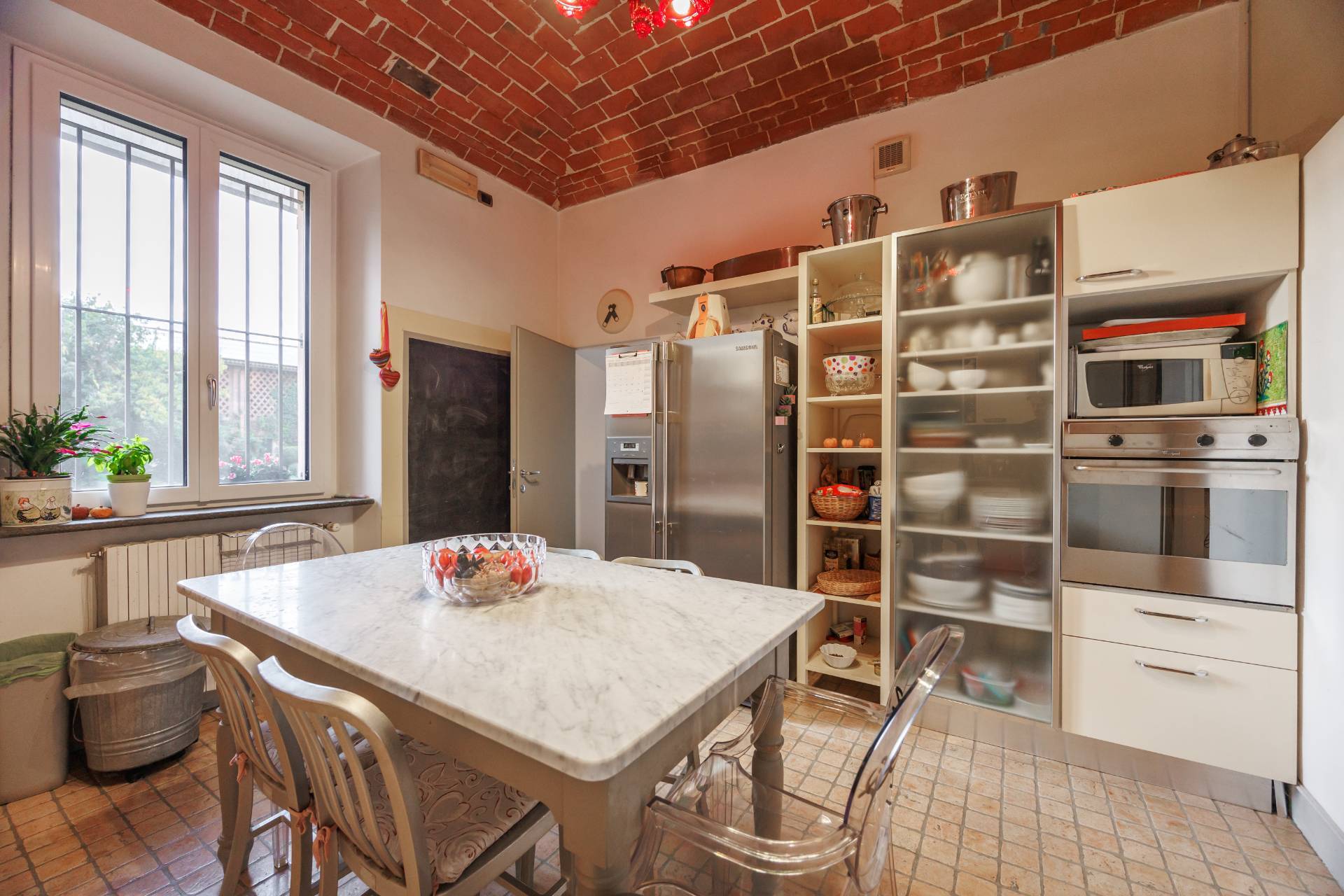 L'abitazione, disposta su ampi volumi e caratterizzata da soffitti alti e affacci sul parco, è composta da ingresso, due saloni con camino, una cucina abitabile, quattro camere da letto, un grande open space ideale come studio, area hobby o ulteriore zona notte, tre bagni, una cantina e lavanderia.