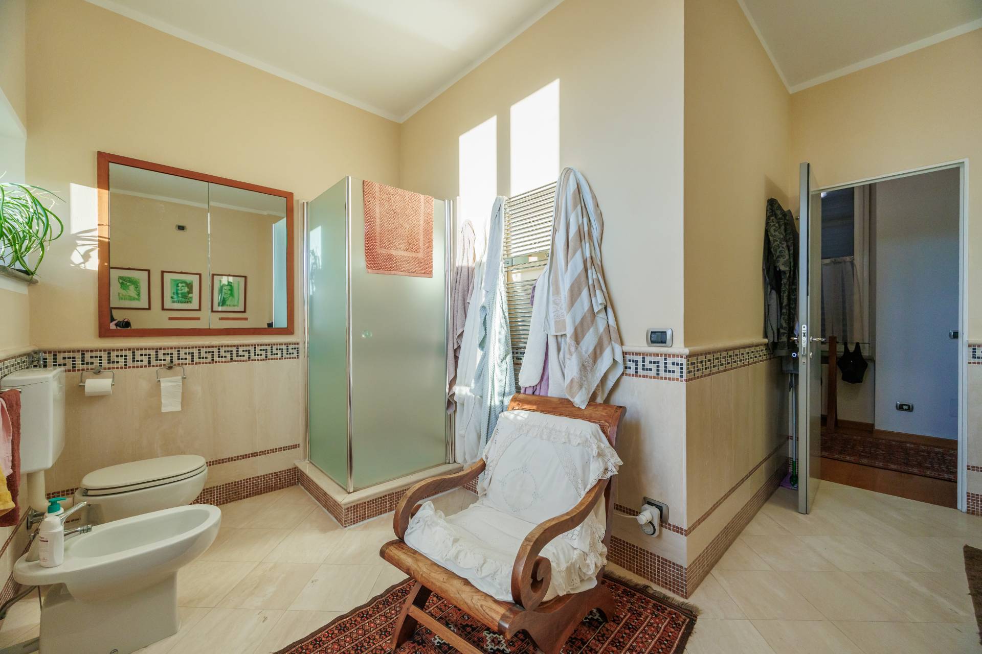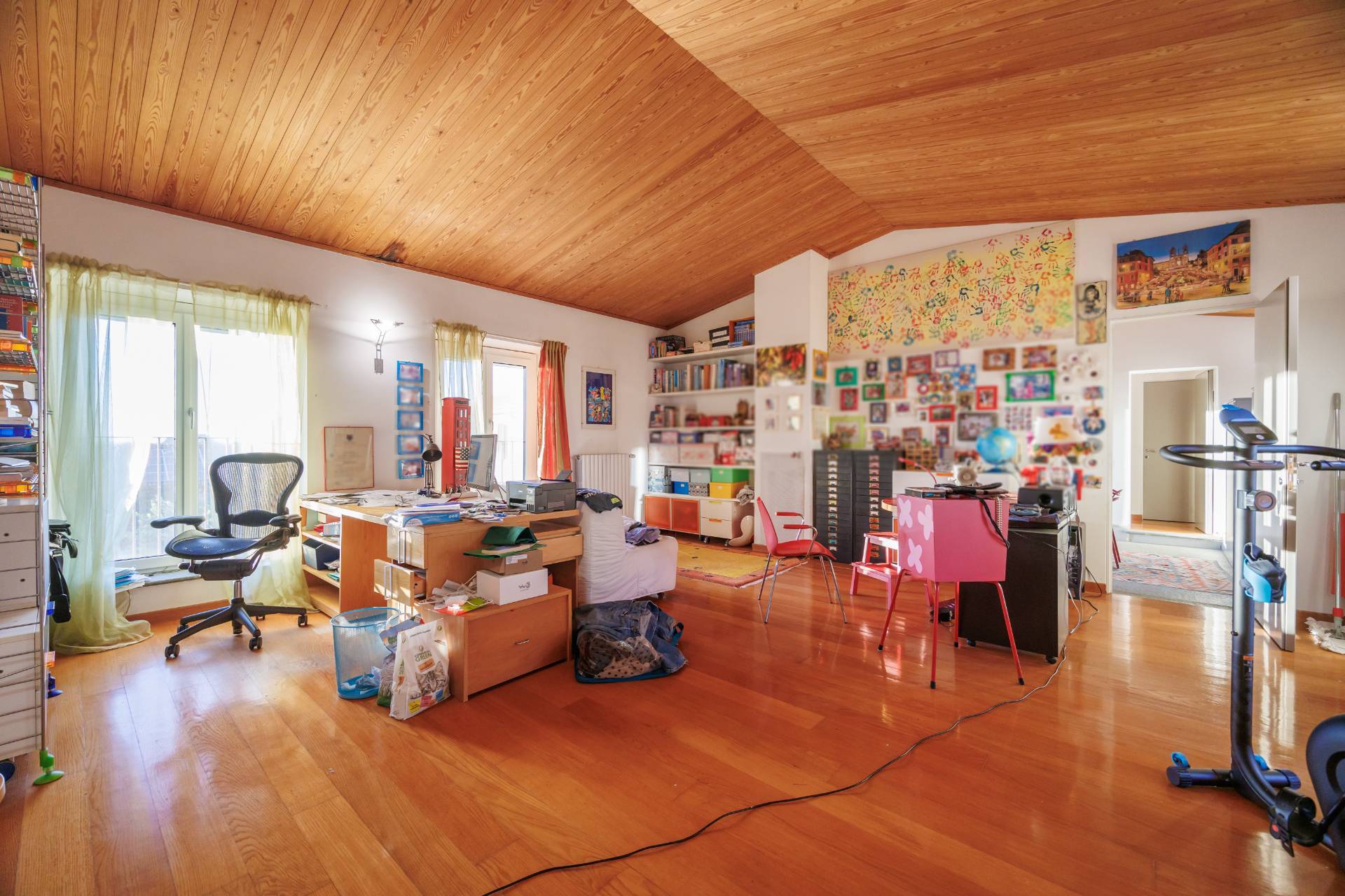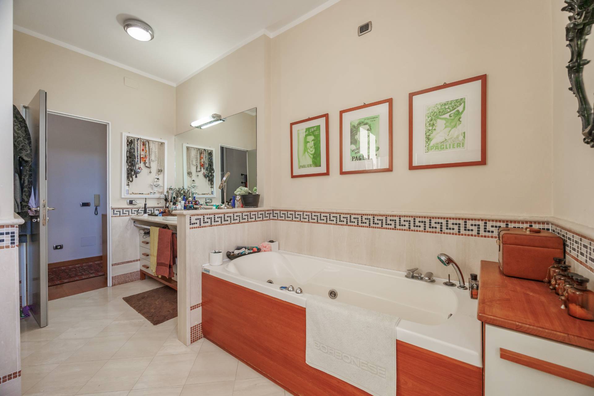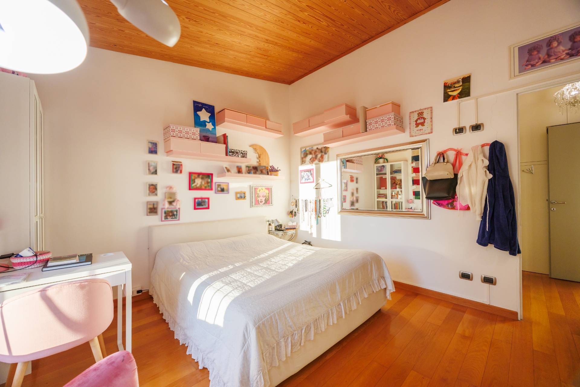 L'abitazione, disposta su ampi volumi e caratterizzata da soffitti alti e affacci sul parco, è composta da ingresso, due saloni con camino, una cucina abitabile, quattro camere da letto, un grande open space ideale come studio, area hobby o ulteriore zona notte, tre bagni, una cantina e lavanderia.