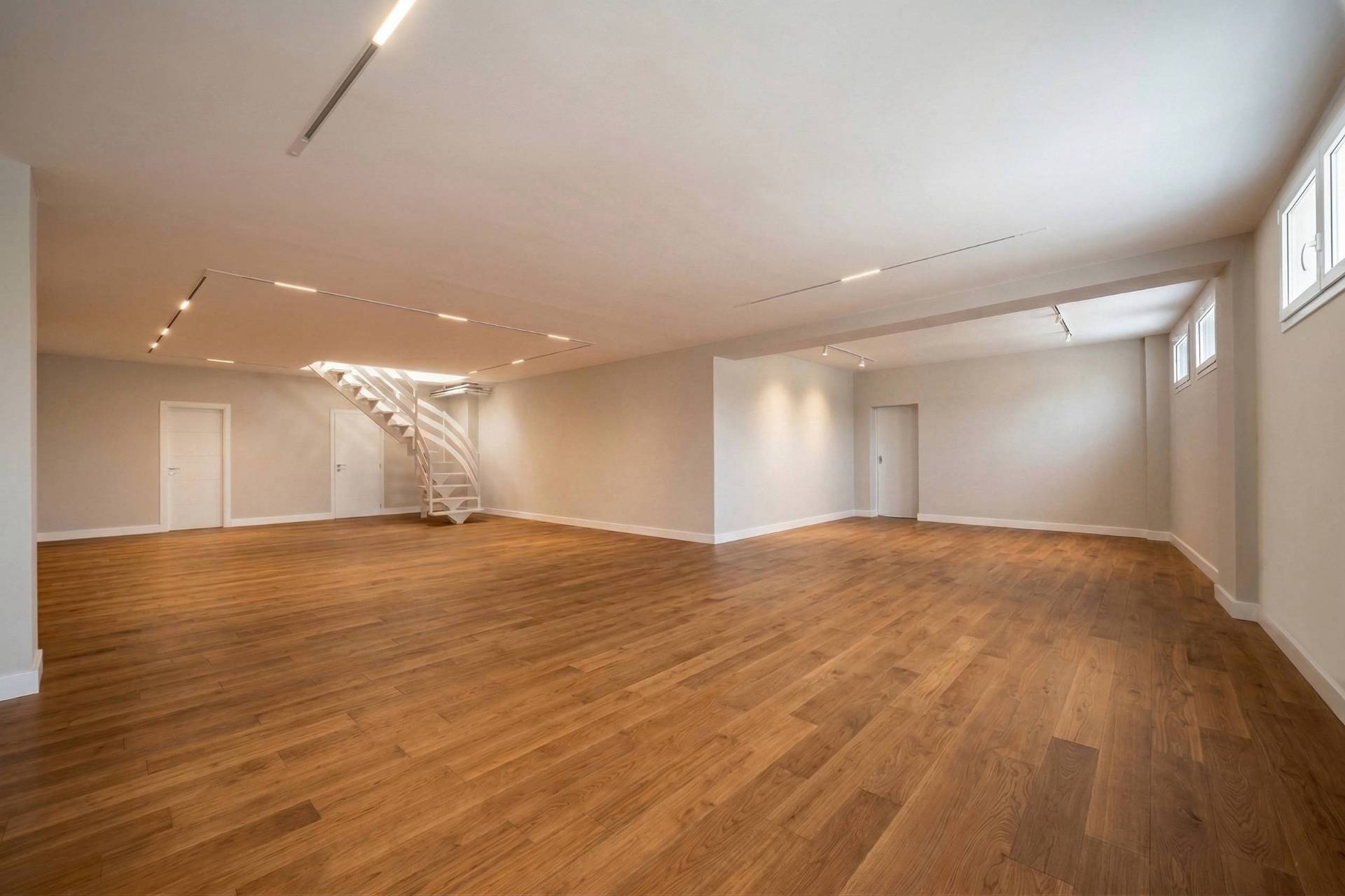 Il piano terra, luminoso e silenzioso, è ideale come reception, studio privato, sala riunioni o showroom di rappresentanza.