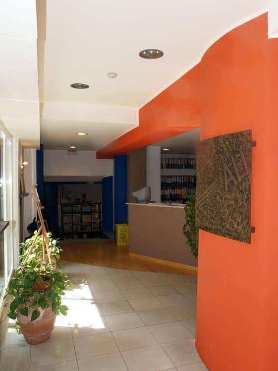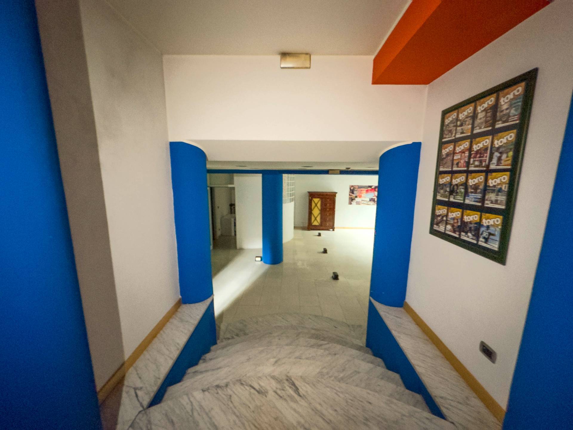 Bell'ufficio al piano seminterrato di palazzina moderna, ampiamente finestrato e luminoso. Ingresso indipendente, con comoda scala su ampia reception, grande salone, quattro uffici, archivio e doppi servizi. Buone condizioni interne.
