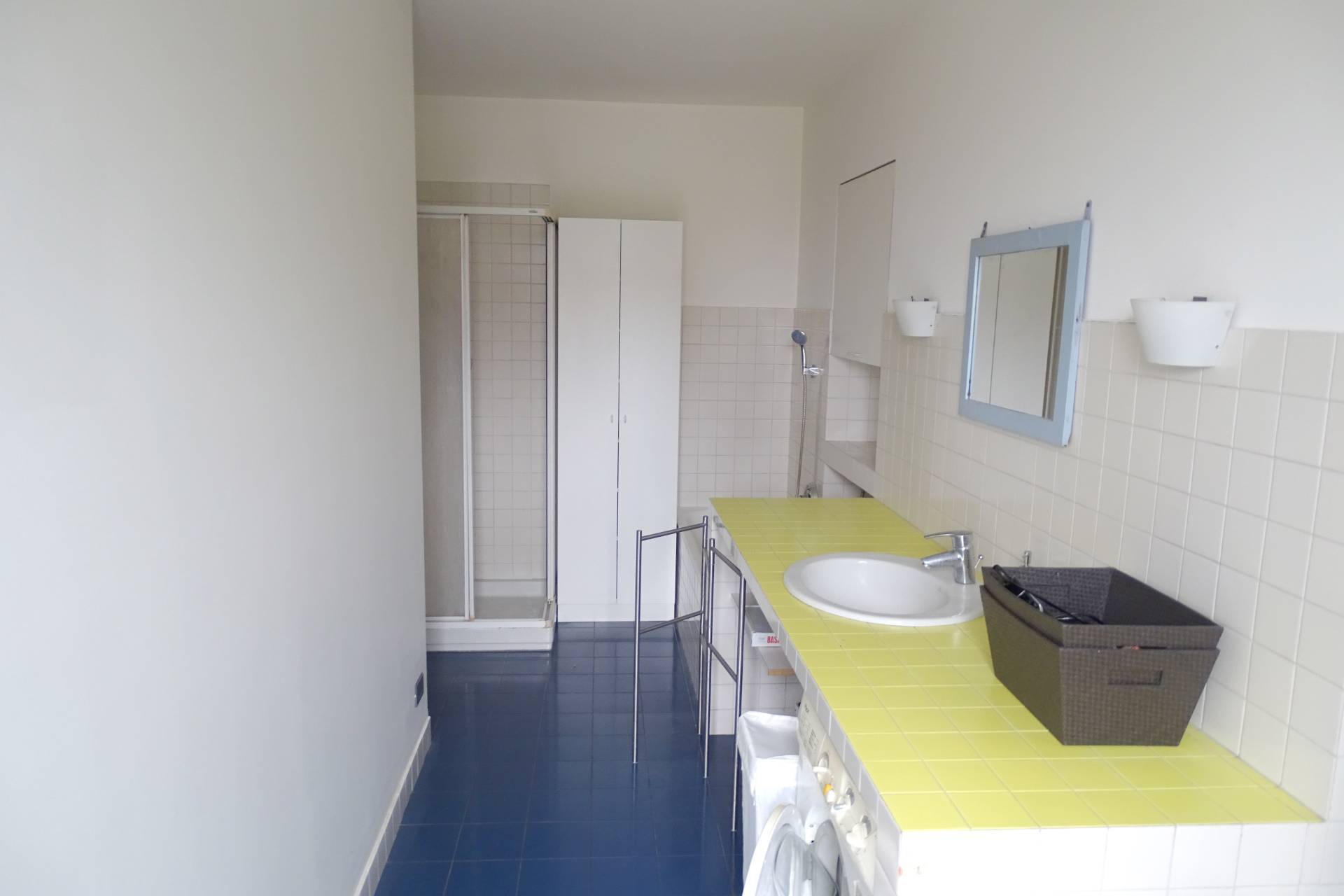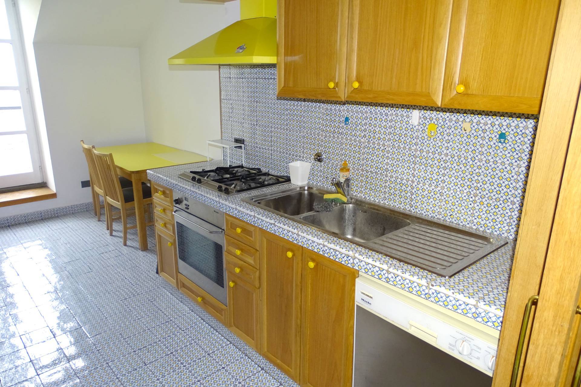 E' composto da ampio salone, cucina abitabile in muratura, camera, cabina armadi e bagno. Sono inoltre compresi nel prezzo un posto auto nel silos posto nel cortile condominiale (altezza massima della vettura 1,63 metri) e una cantina. Riscaldamento autonomo, aria condizionata nel salone. Vista sulle montagne dal lato di corso Re Umberto e sulla collina dal lato cortile. Ideale per single o coppie.