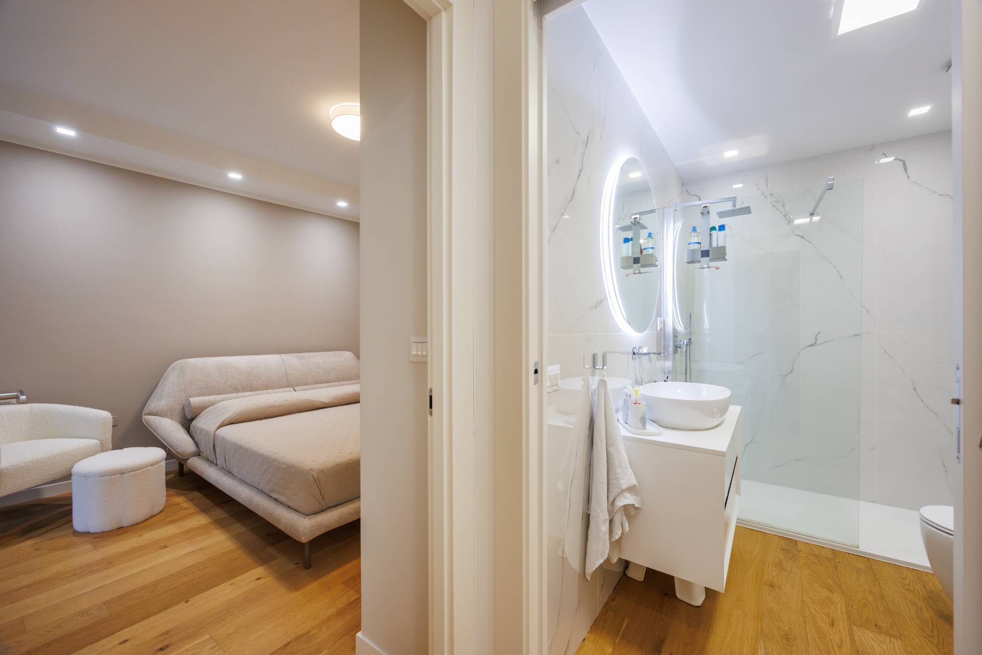 Le caratteristiche principali interne sono: il parquet di rovere in tutti gli ambienti interni della casa, gli infissi doppi in legno a taglio termico e antisfondamento, tapparelle motorizzate, zanzariere e aria condizionata con split a inverter.