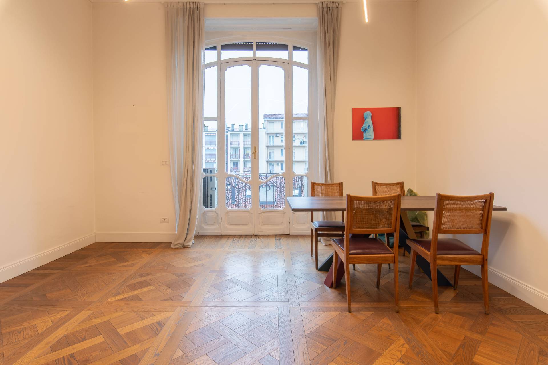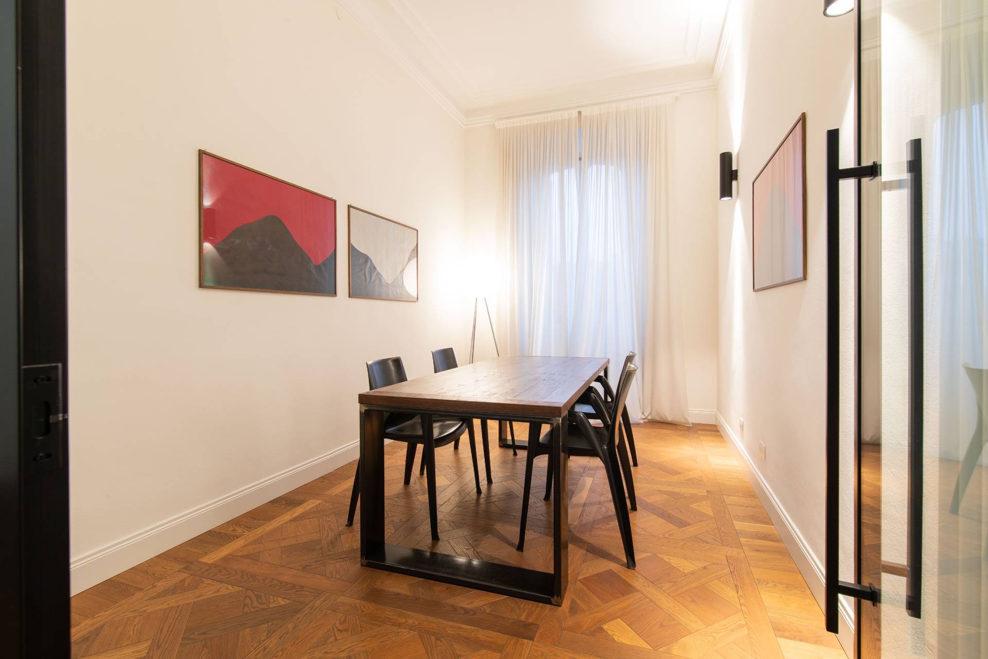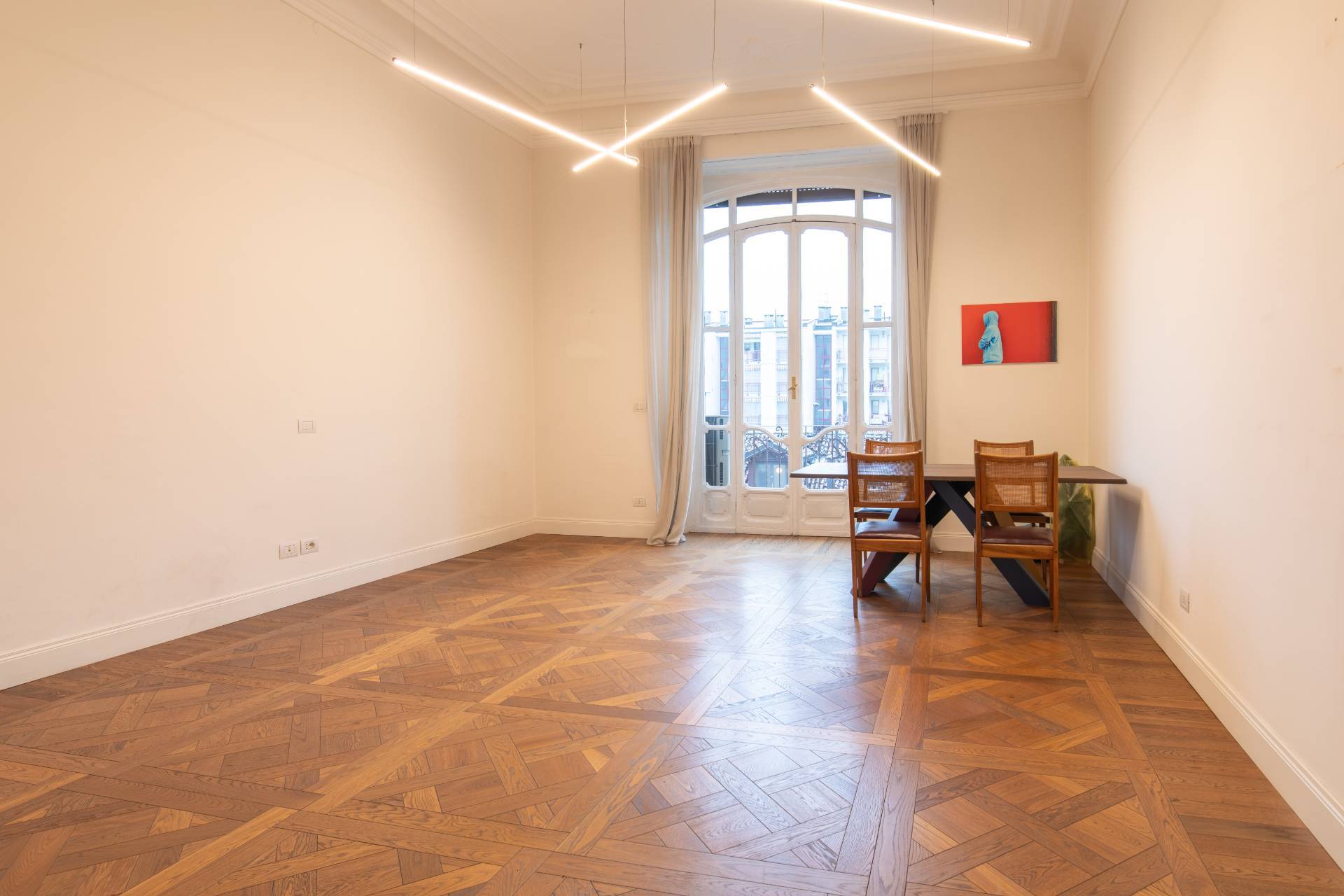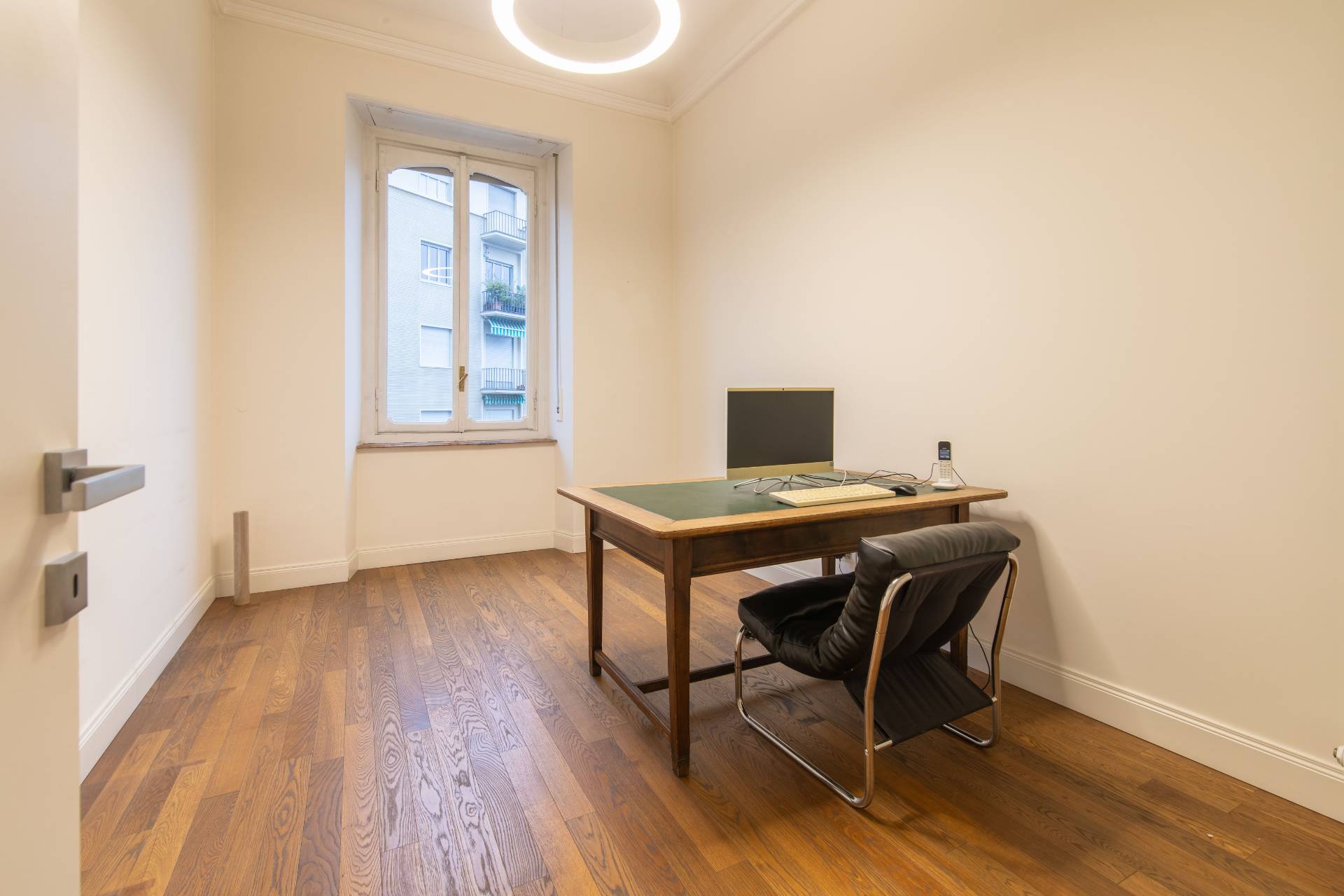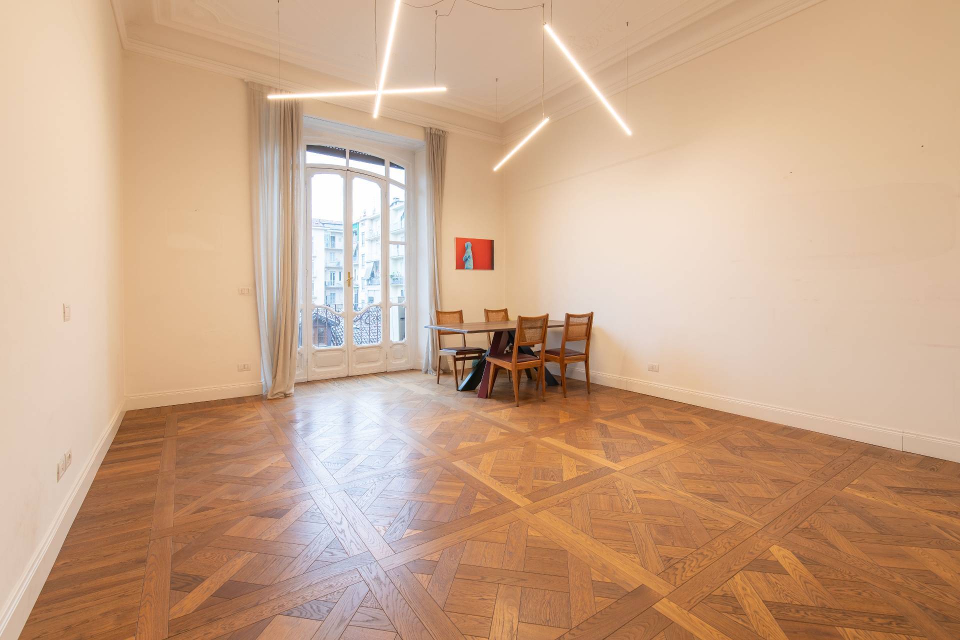 Al terzo piano di un prestigioso ed elegante edificio Liberty del Carrera, nel cuore di Cit Turin, luminoso Ufficio di ampia metratura appena ristrutturato, già libero e disponibile. Interamente cablato e pronto per essere operativo. Internamente è composto da una hall di ingresso, nove uffici già delimitati da pareti e una grande sala riunioni. L'Ufficio è caratterizzato da finiture di pregio come il parquet in pregiato legno massello disegnato su misura e l'impianto di condizionamento caldo/freddo canalizzato.