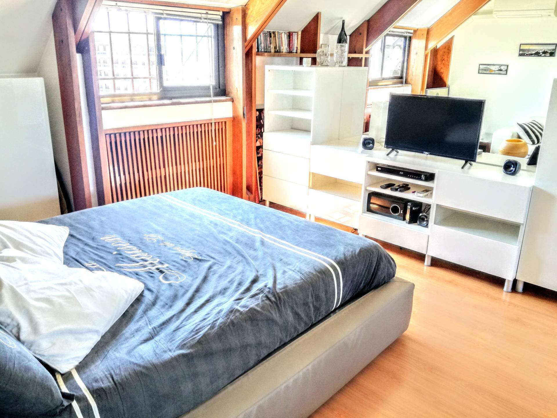 Bel monolocale mansardato di circa 60 mq. al nono ed ultimo piano di un palazzo degli anni '60 con ascensore, che però si ferma all'ottavo piano.