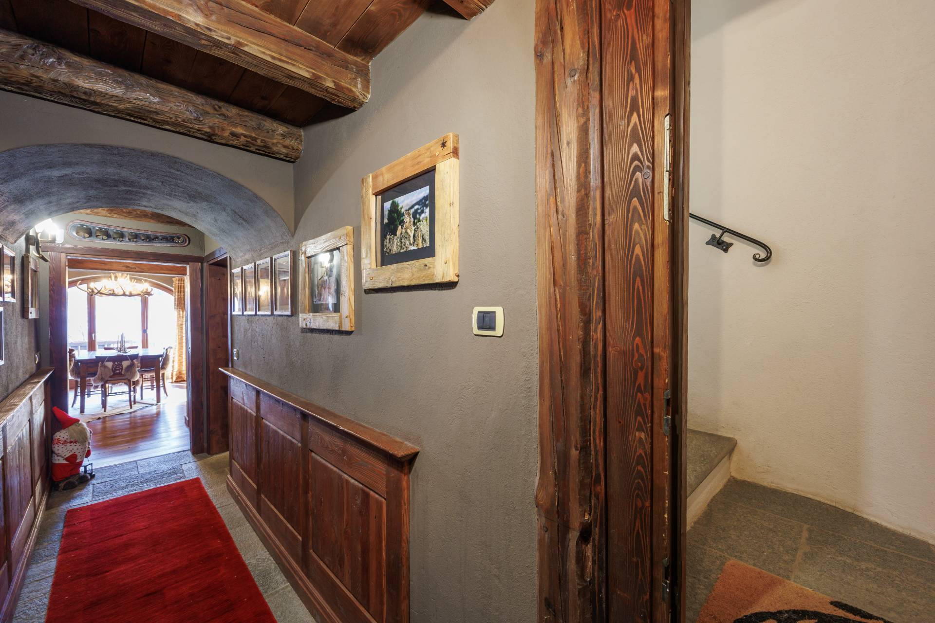 L'immobile si sviluppa al primo piano e accoglie con un corridoio/disimpegno che conduce ad un ampio e luminoso soggiorno living in perfetto stile chalet, impreziosito da pavimenti in legno, travi a vista e un'atmosfera estremamente avvolgente.