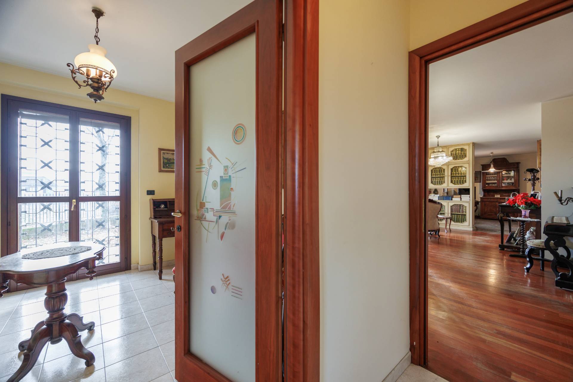 Venaria Reale, in una zona esclusiva, precisamente in via Sapino, proponiamo in Vendita una Villa bi/trifamiliare costruita nel 1999, disposta su 3 livelli e circondata da un ampio giardino. La Villa ha un ascensore interno che consente di raggiungere i 3 piani senza barriere architettoniche, direttamente dal piano seminterrato dove è presente il box auto che può ospitare fino a 4 automobili e servito da basculante comandato elettricamente. Gli infissi sono tutti in legno e vetro doppio, sono presenti le grate blindate in ferro e le zanzariere. L'impianto di riscaldamento è servito da due caldaie a metano, una delle quali sostituita di recente.