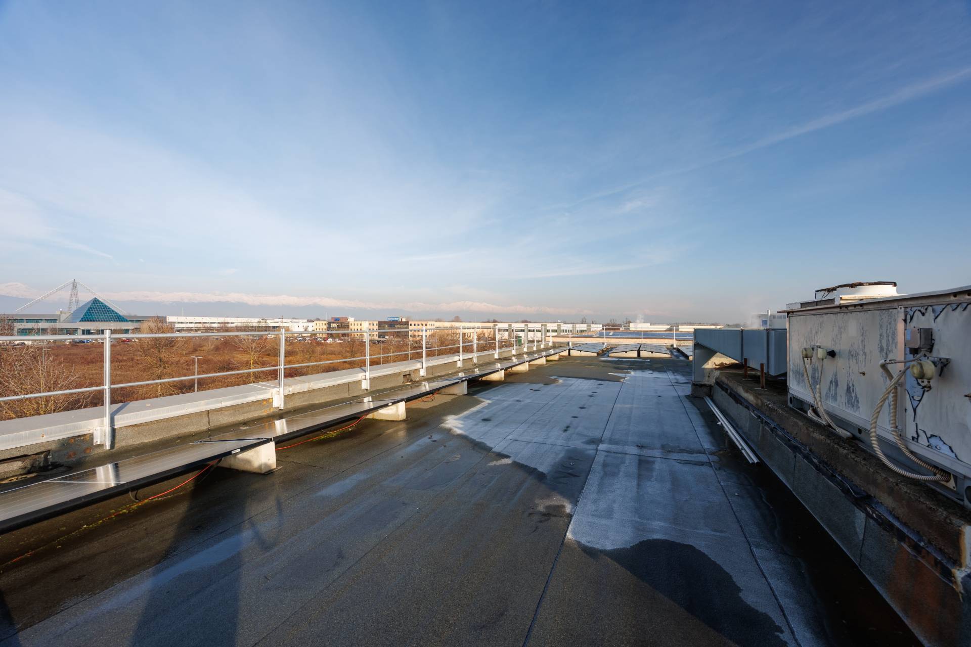 La copertura della palazzina uffici è di tipo piana con soprastante impermeabilizzazione costituita da guaina protetta con strato ardesiato.