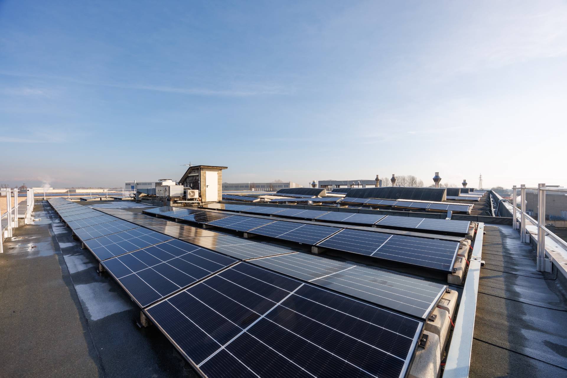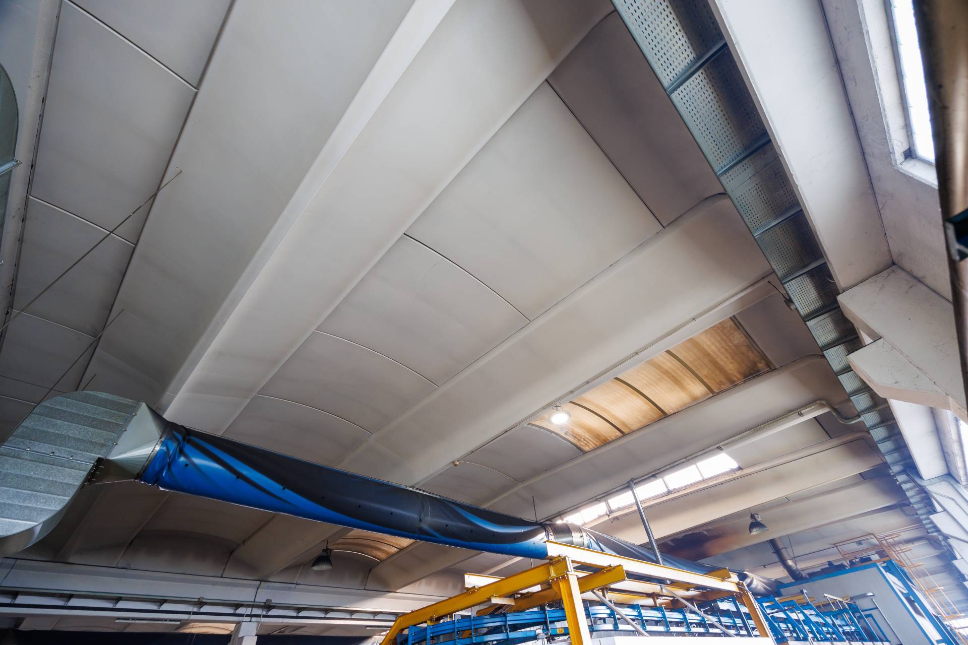 La copertura piana è costituita da Tegoli, alternati con Shed e lucernari che consentono di lavorare nelle ore diurne con luce naturale senza dover ricorrere all'illuminazione artificiale.
