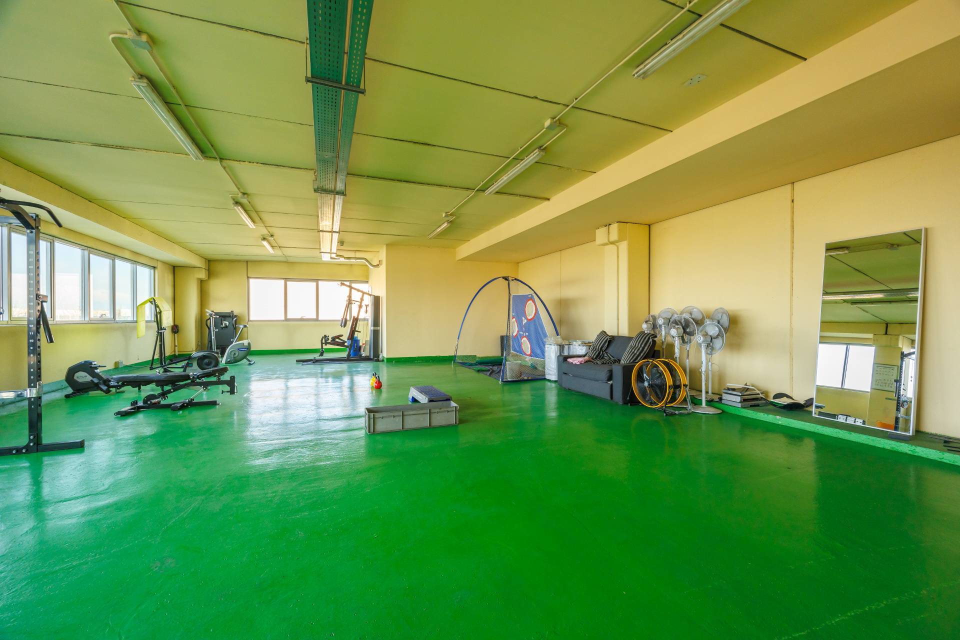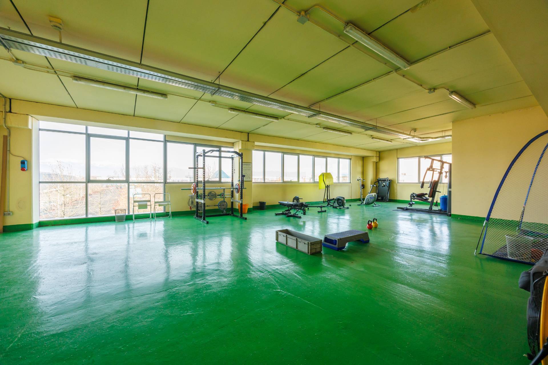 All'interno del Capannone, collocato sotto ad un grande soppalco, è presente la cabina elettrica e il locale infermeria con tamponamenti in blocchi splittati.