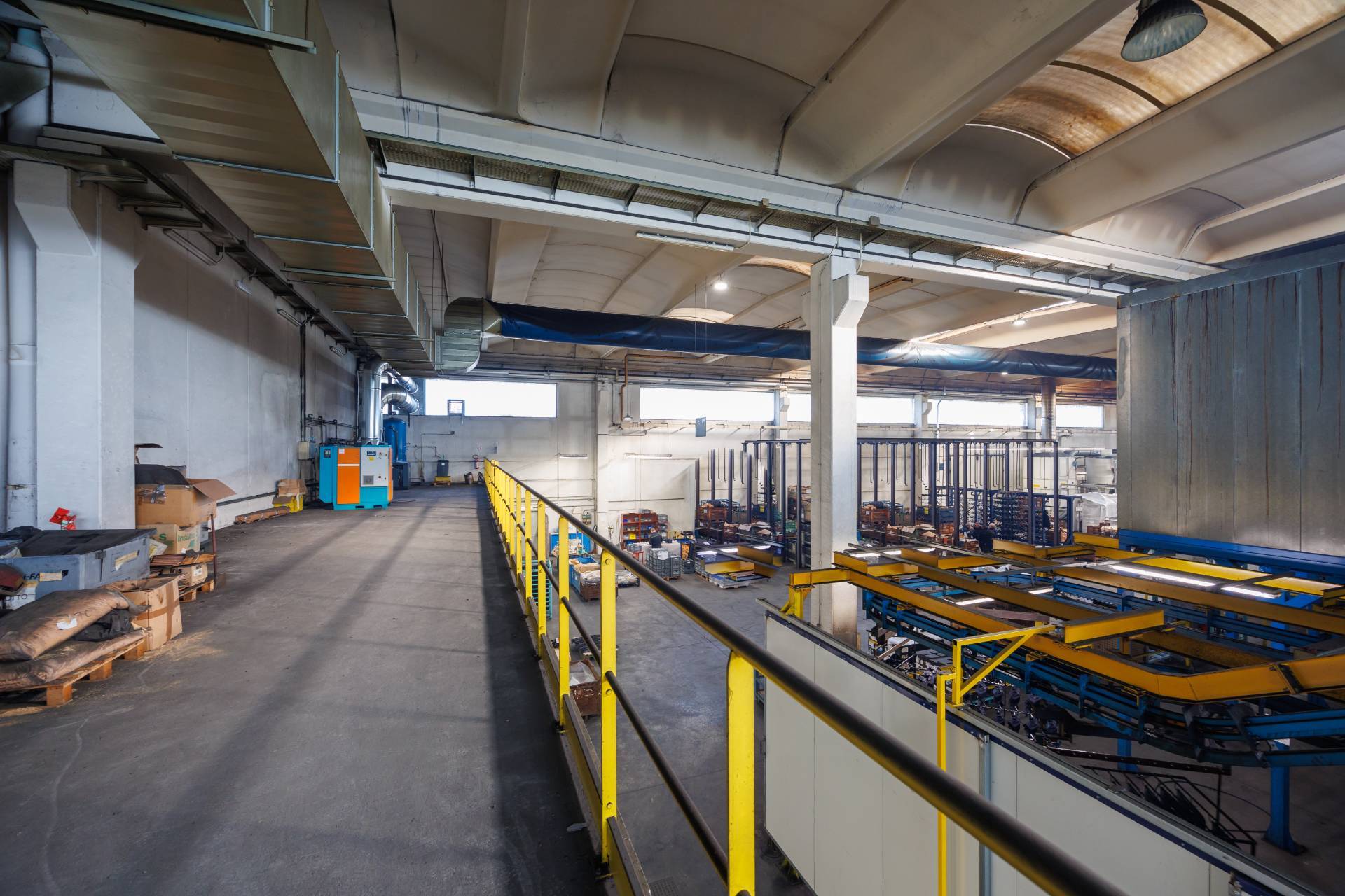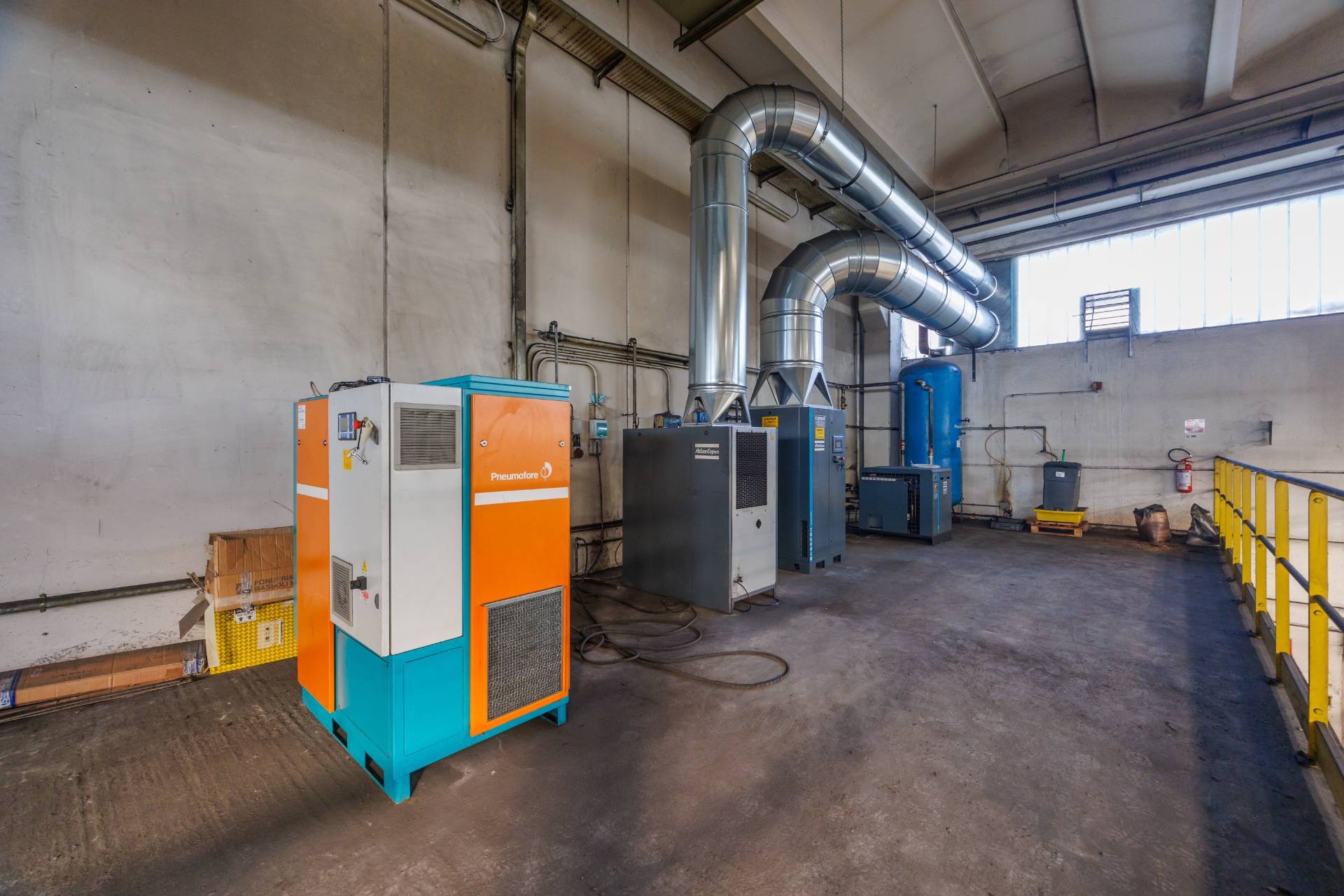 Il Capannone è corredato da impianto di termoventilazione con unità di trattamento aria a parziale ricircolo con presa di aria esterna in grado di garantire 1V/h di ricambio meccanico mentre la palazzina uffici da impianto di condizionamento con ventil convettori e UTA aria primaria in grado di garantire aria di rinnovo e ricambi per le zone insufficiente aerazione naturale e per i servizi igienici.