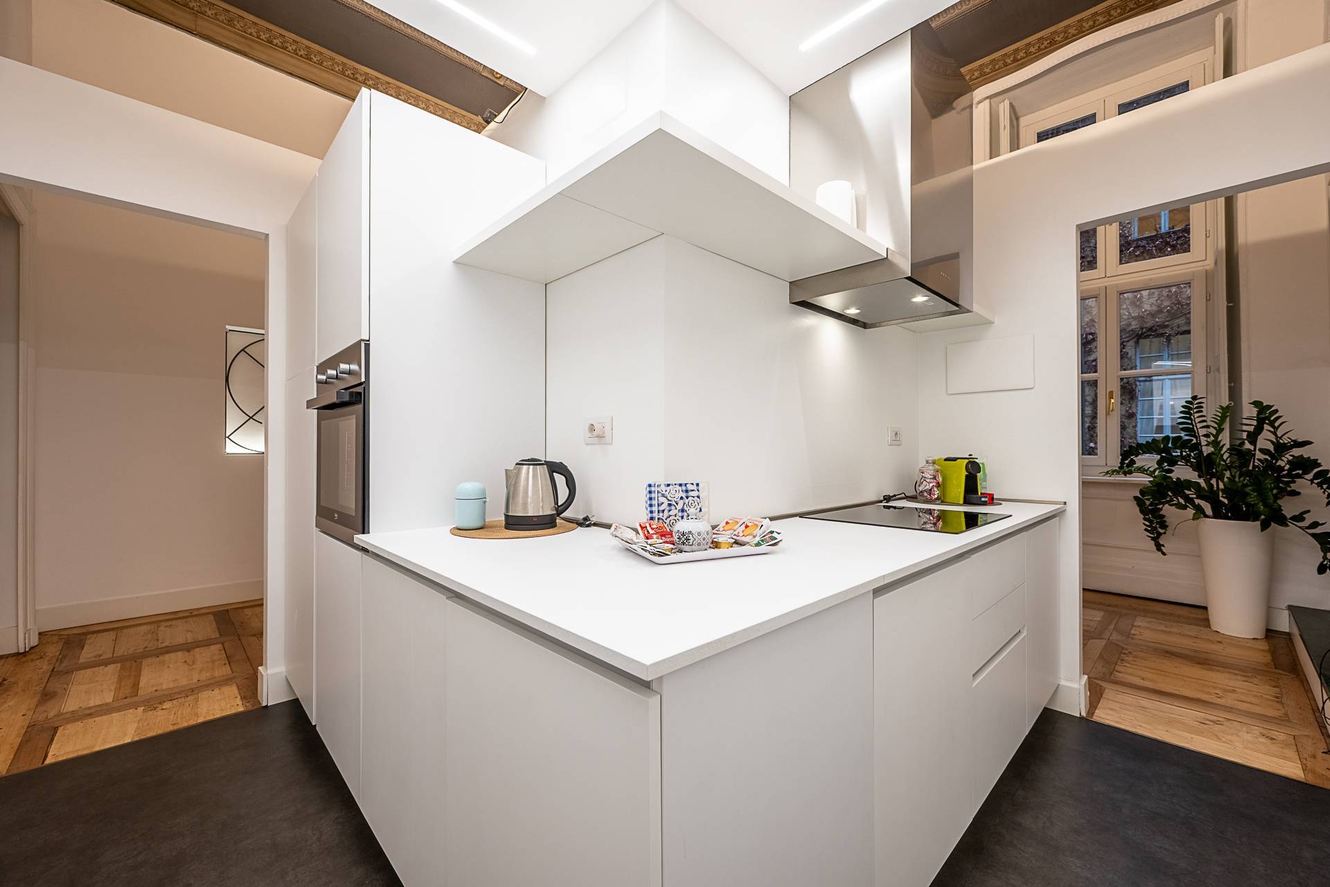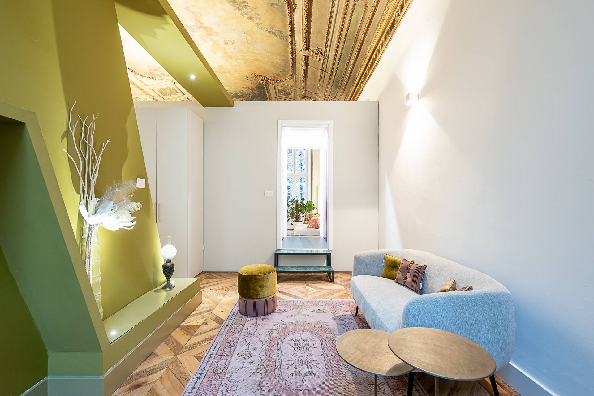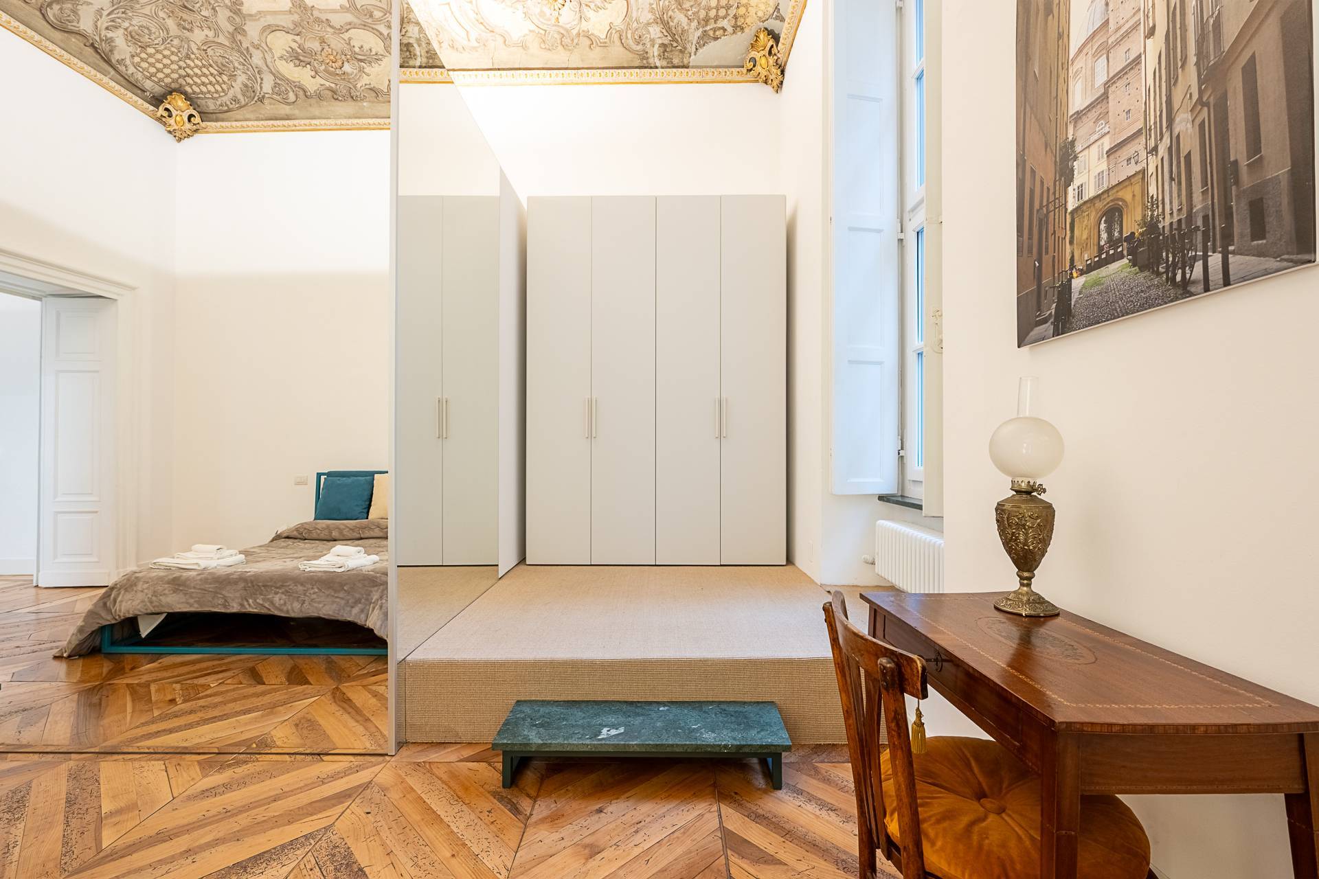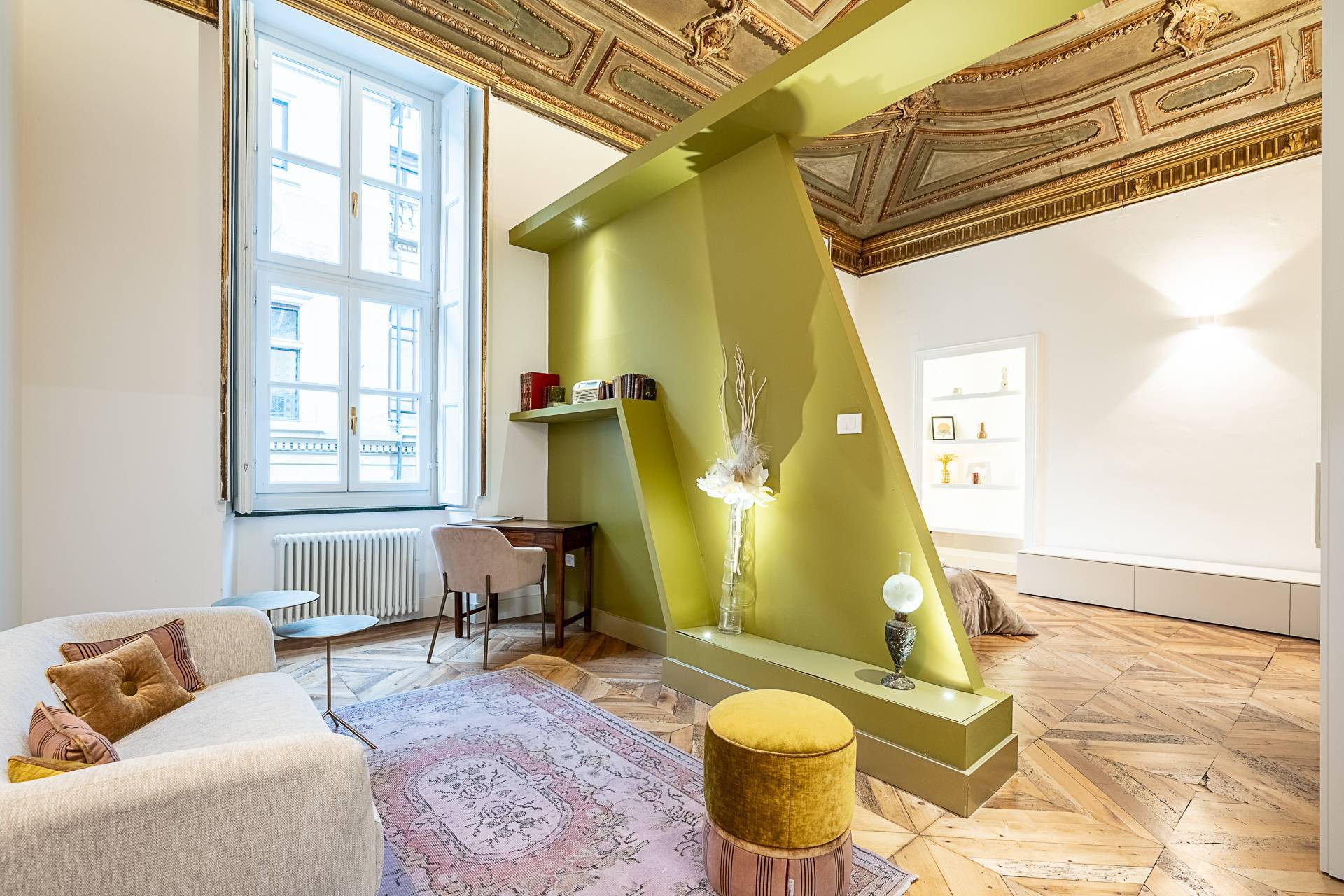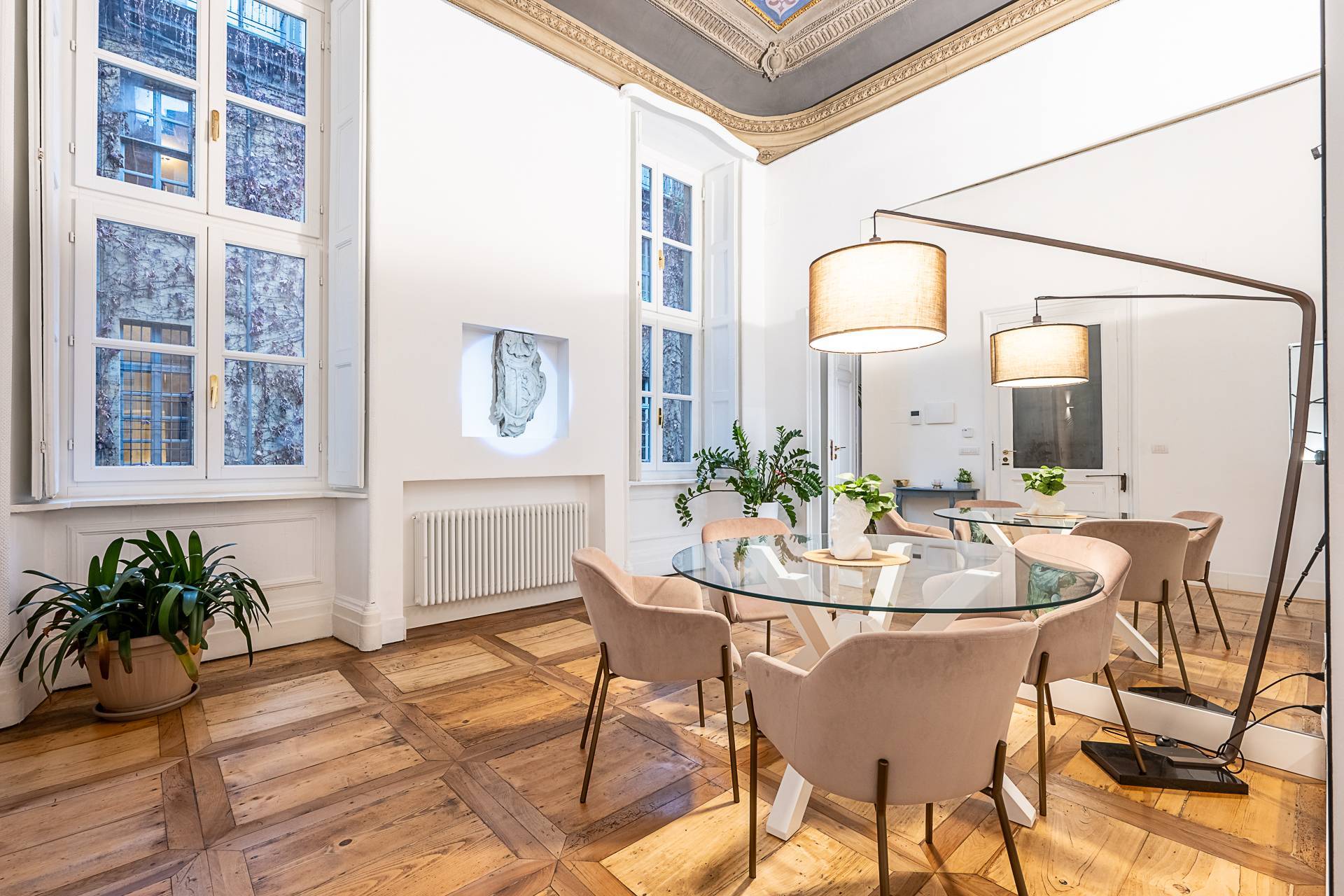 L'Appartamento è stato oggetto di una radicale ristrutturazione volta a rendere protagonisti i numerosi elementi d'epoca presenti al suo interno e dare risalto alle altezze dei soffitti e ai suoi decori. Pavimenti in parquet originale.