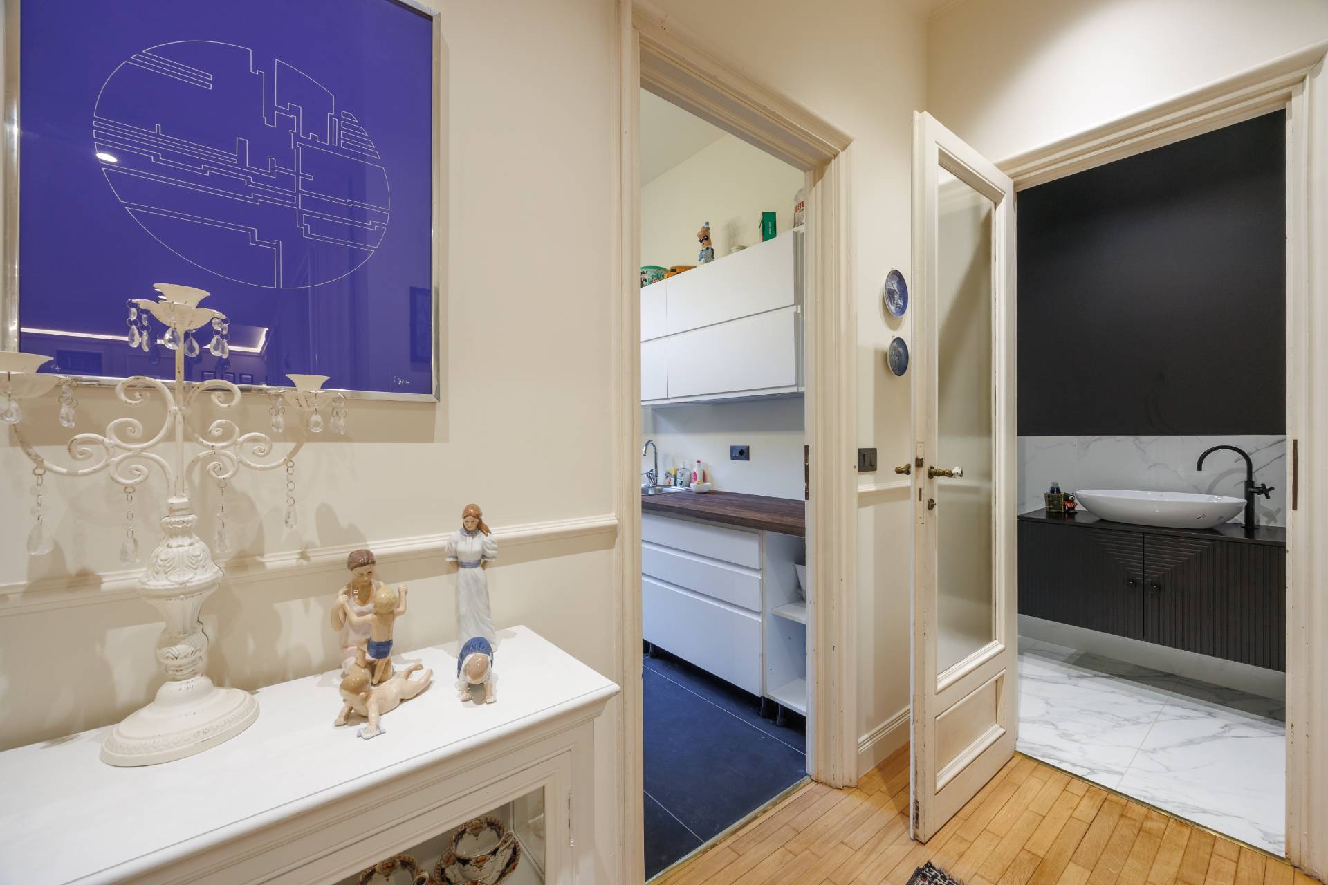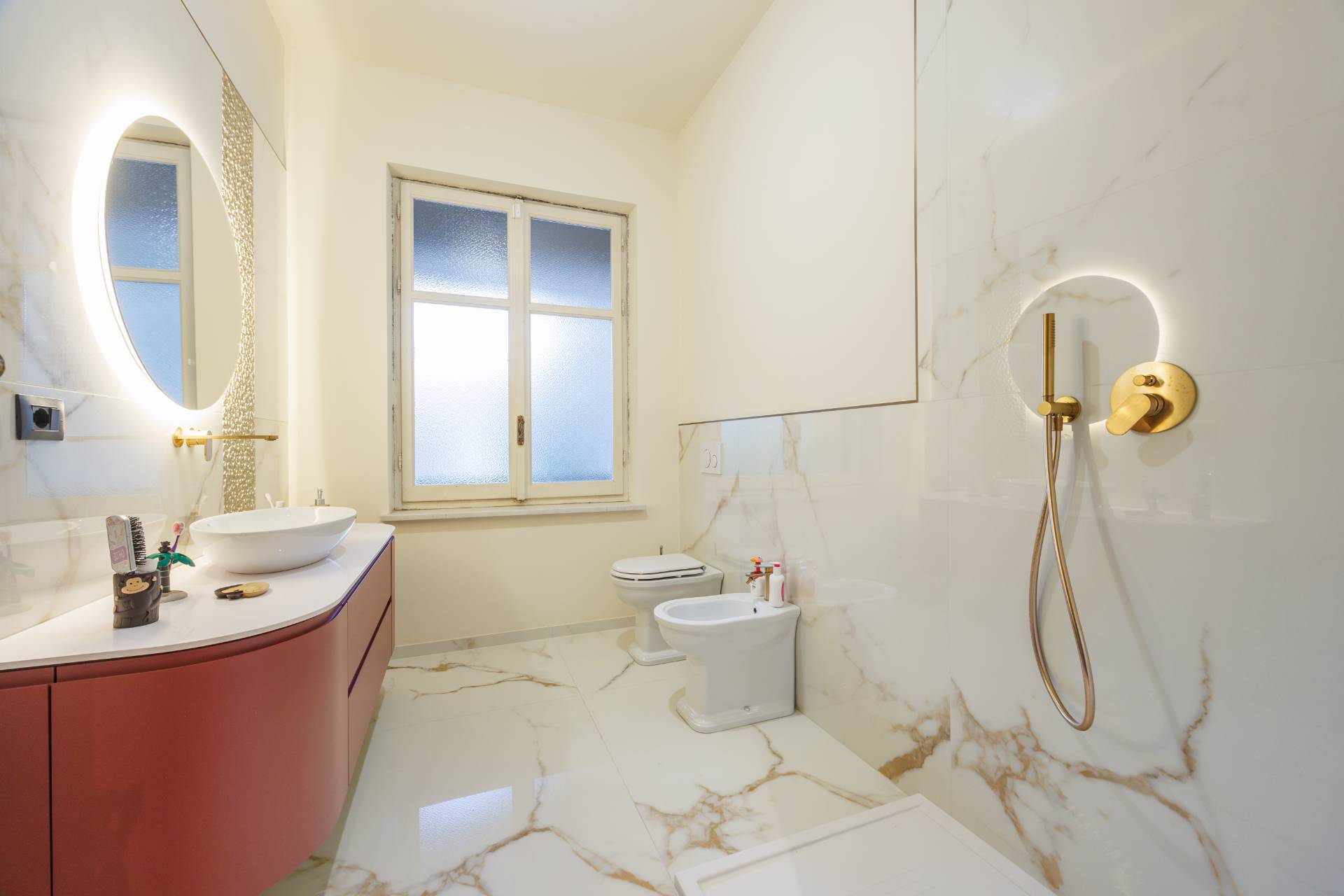 • il secondo livello, raggiungibile tramite una grande e raffinata scala interna di marmo, è riservato alla zona notte ed è composto da una master room angolare con quattro finestre, di ottima metratura e con cabina armadio, magnifico bagno finestrato con vasca da bagno e ampia doccia (con accesso ad un balcone), due camere da letto (di cui una con balcone coperto), una camera adibita a cabina armadio, un altro bagno finestrato ed una lavanderia.