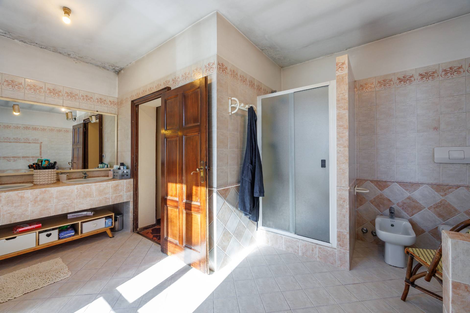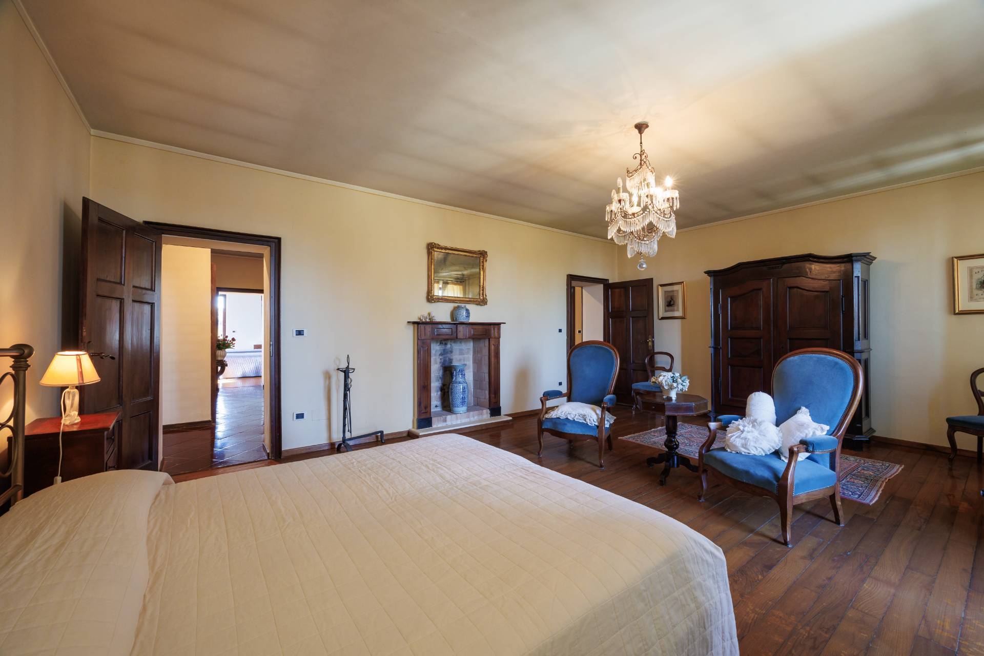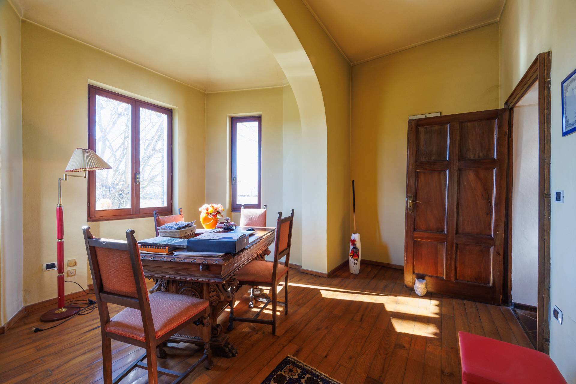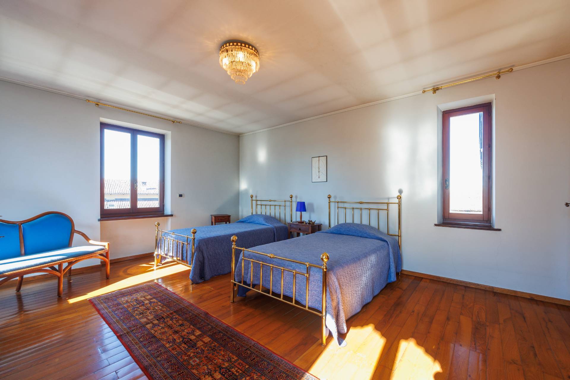 Una comoda e ampia scala interna in legno conduce al piano superiore, dove trovano spazio tre camere da letto e un secondo bagno, garantendo ambienti generosi e versatili, adatti anche a studio o stanza hobby.