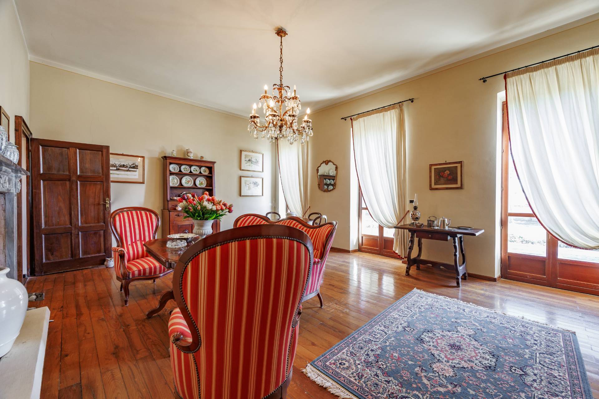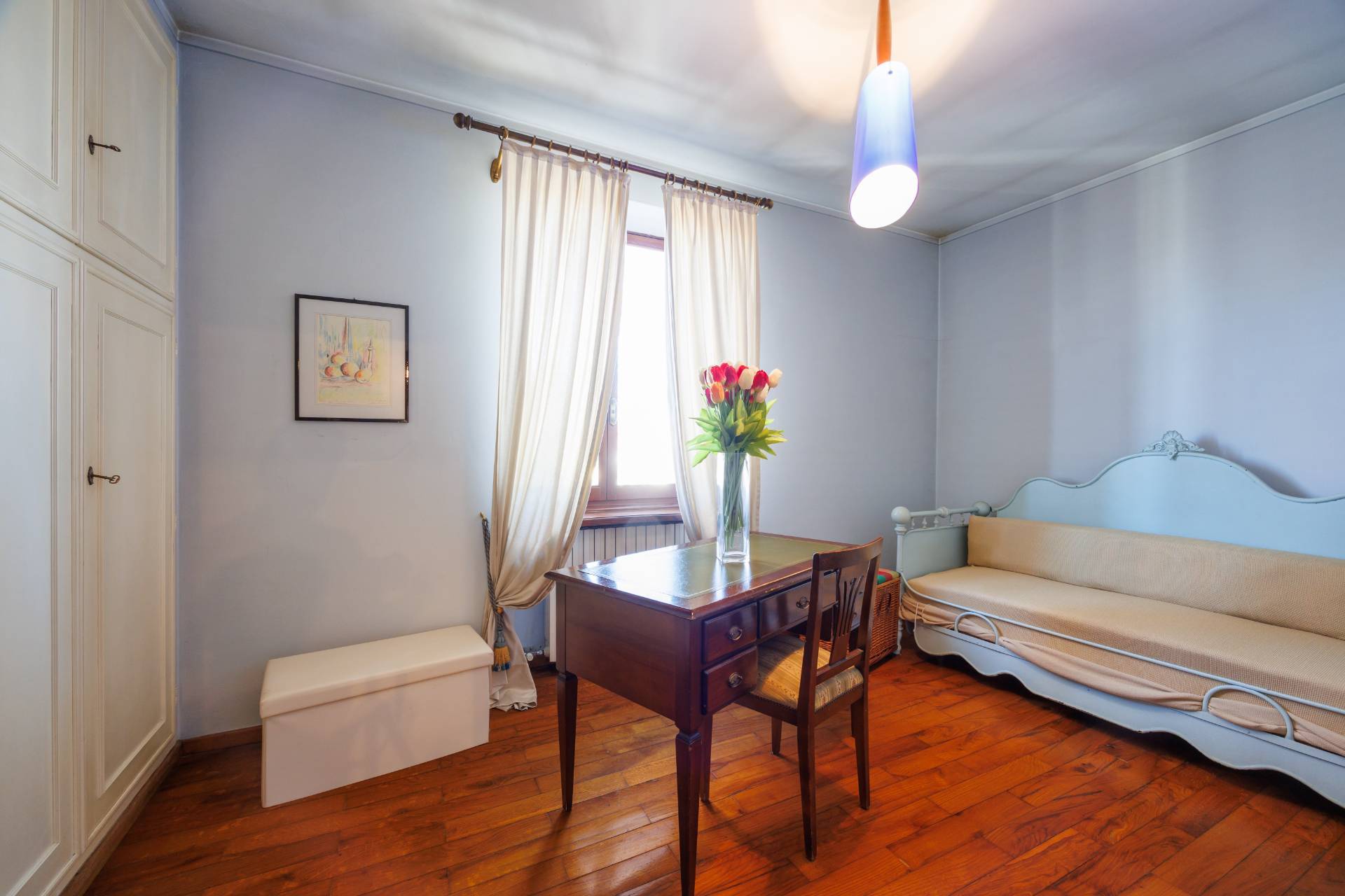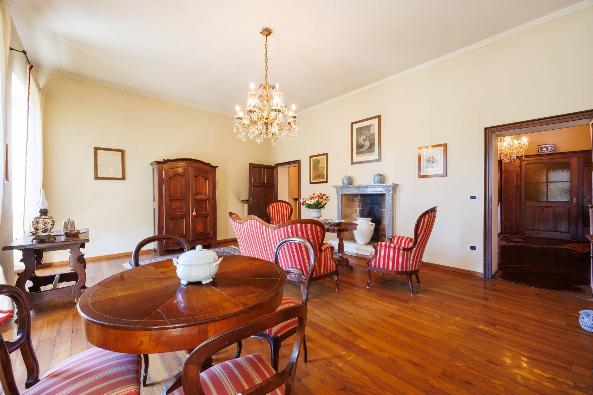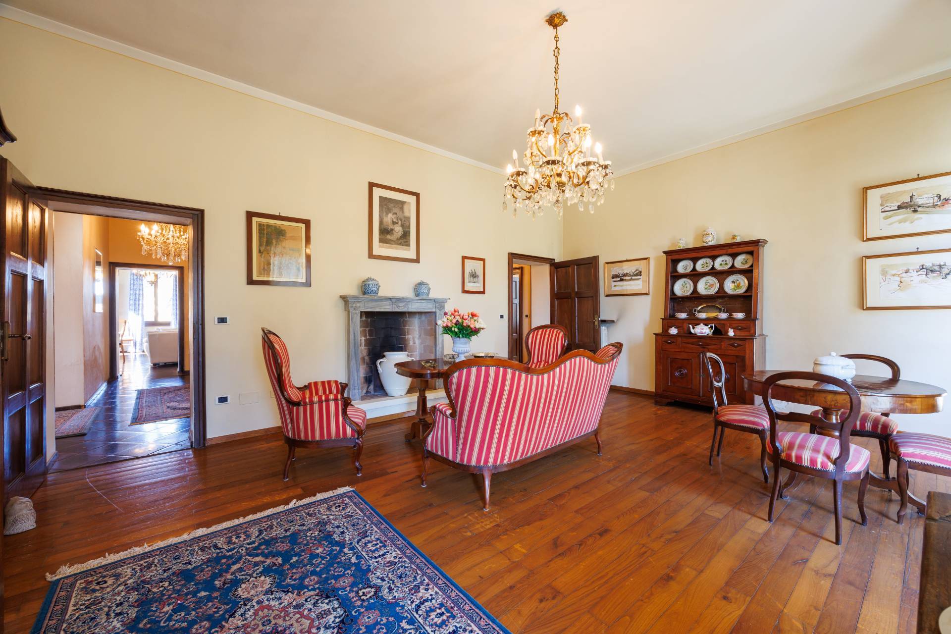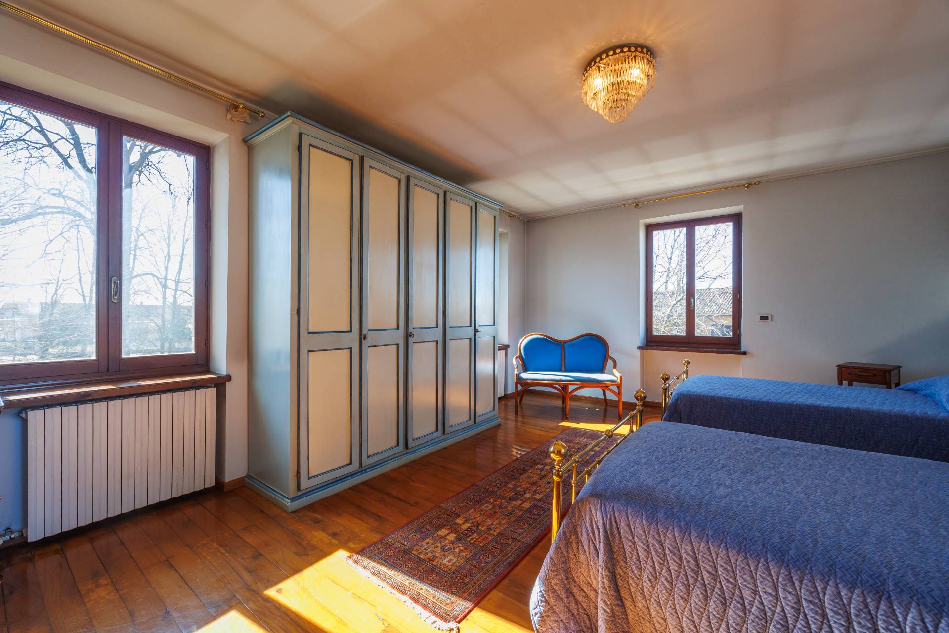 Una comoda e ampia scala interna in legno conduce al piano superiore, dove trovano spazio tre camere da letto e un secondo bagno, garantendo ambienti generosi e versatili, adatti anche a studio o stanza hobby.