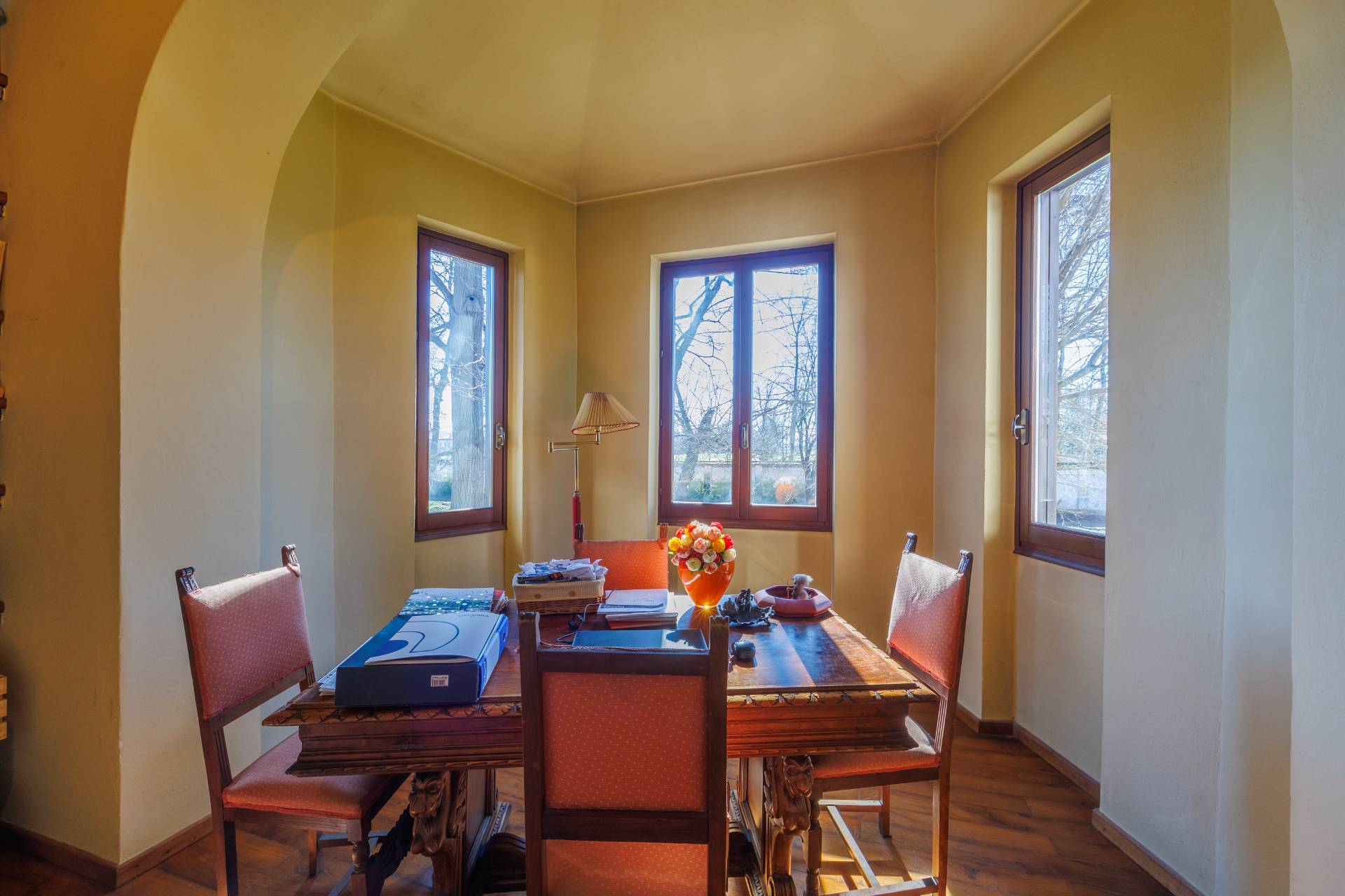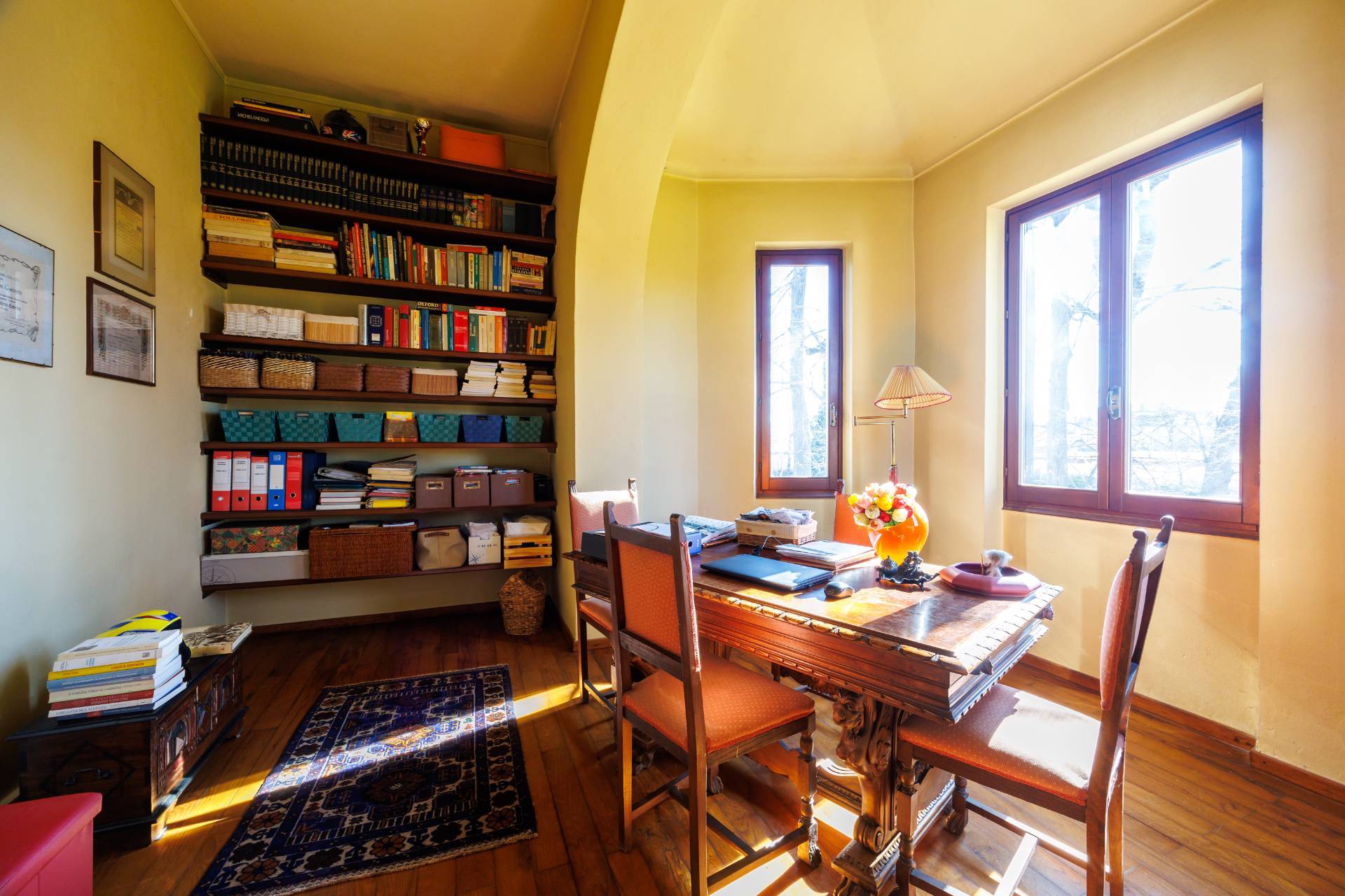 Al piano terra si sviluppa la zona giorno composta da cucina e sala da pranzo, affiancati da un ampio soggiorno ed uno studio, il piano si completa con la lavanderia ed un bagno.