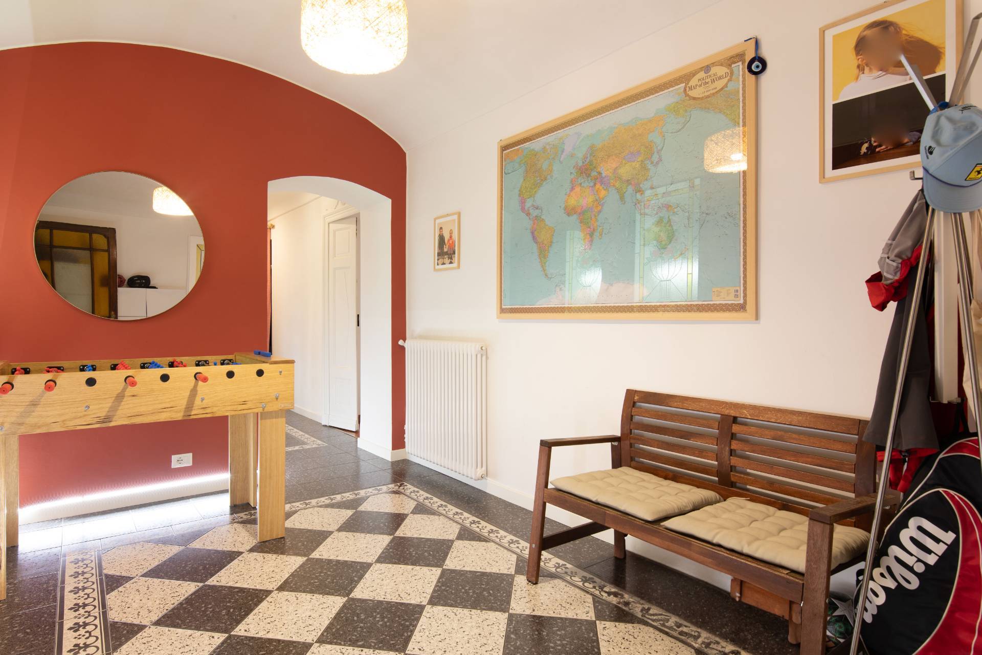 L'ingresso conduce a un ampio salone con camino, caratterizzato da finestra e portafinestra che donano grande luminosità agli ambienti.