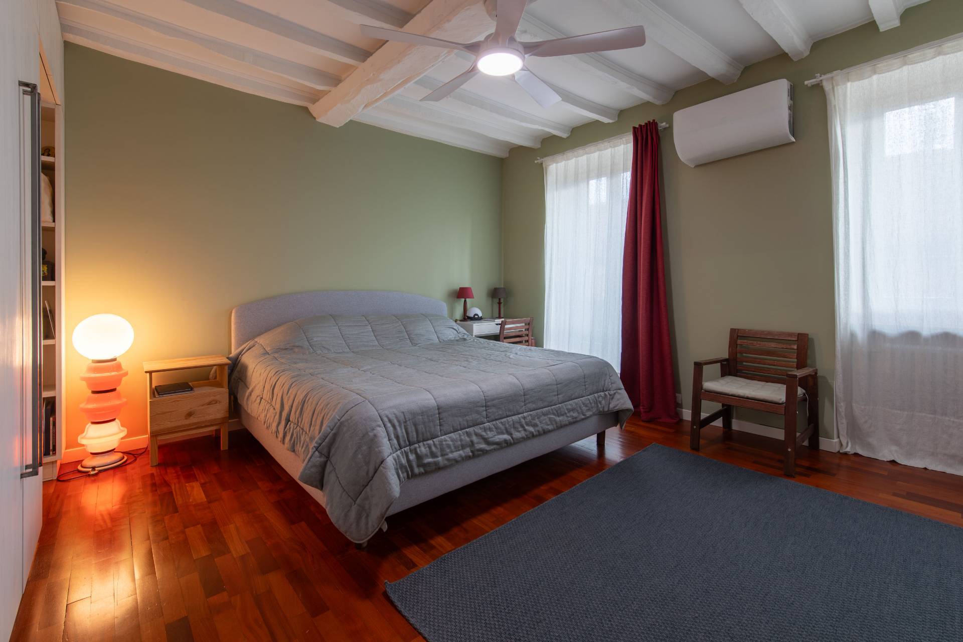 L'immobile è stato finemente ristrutturato nel 2023 e presenta parquet in tutte le stanze, soffitti a cassettoni, infissi nuovi in legno con doppio vetro e oscuranti elettronici integrati.