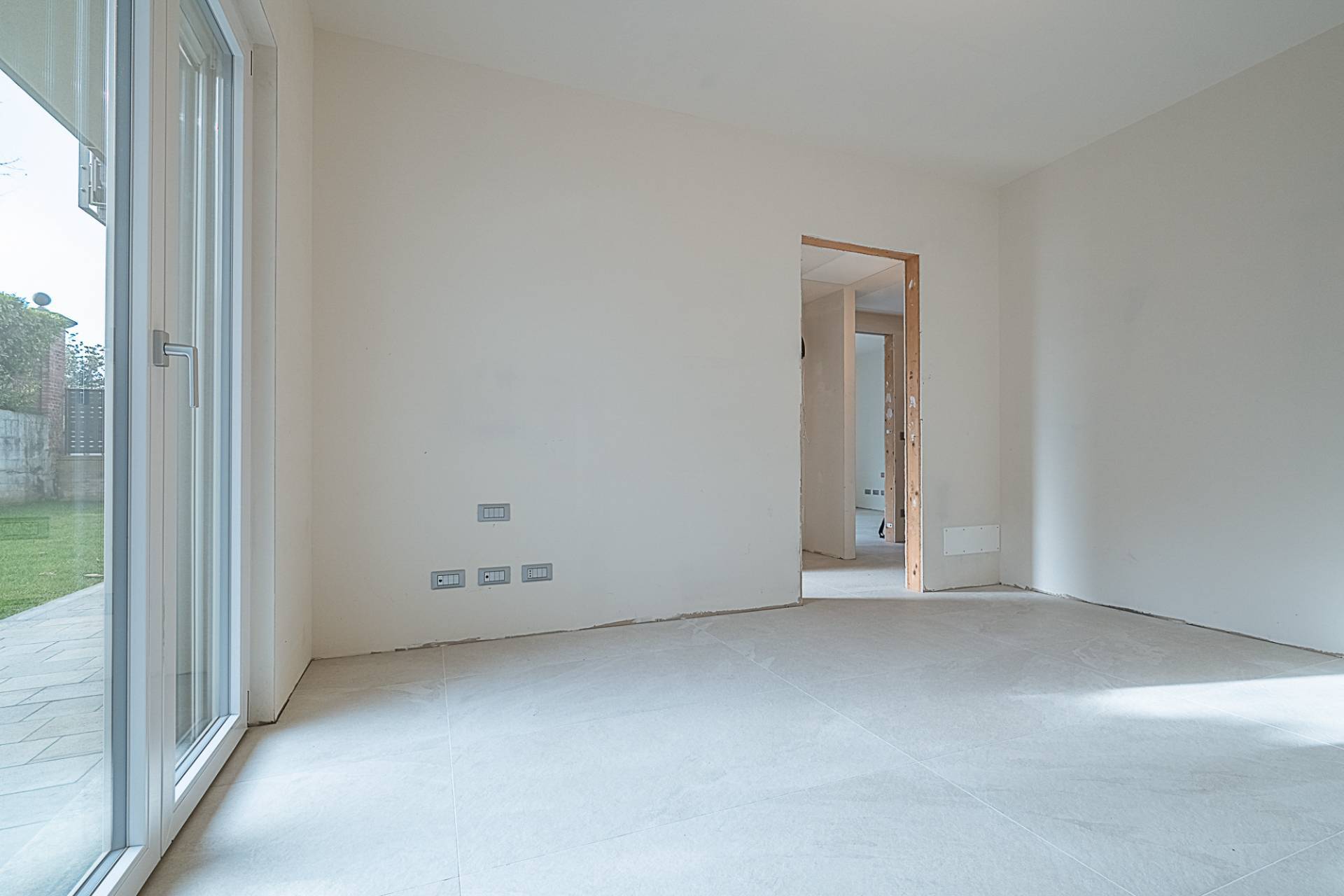 Infissi con doppio vetro basso emissivo stratificato, portoncino blindato, pavimento uniforme in gres porcellanato.