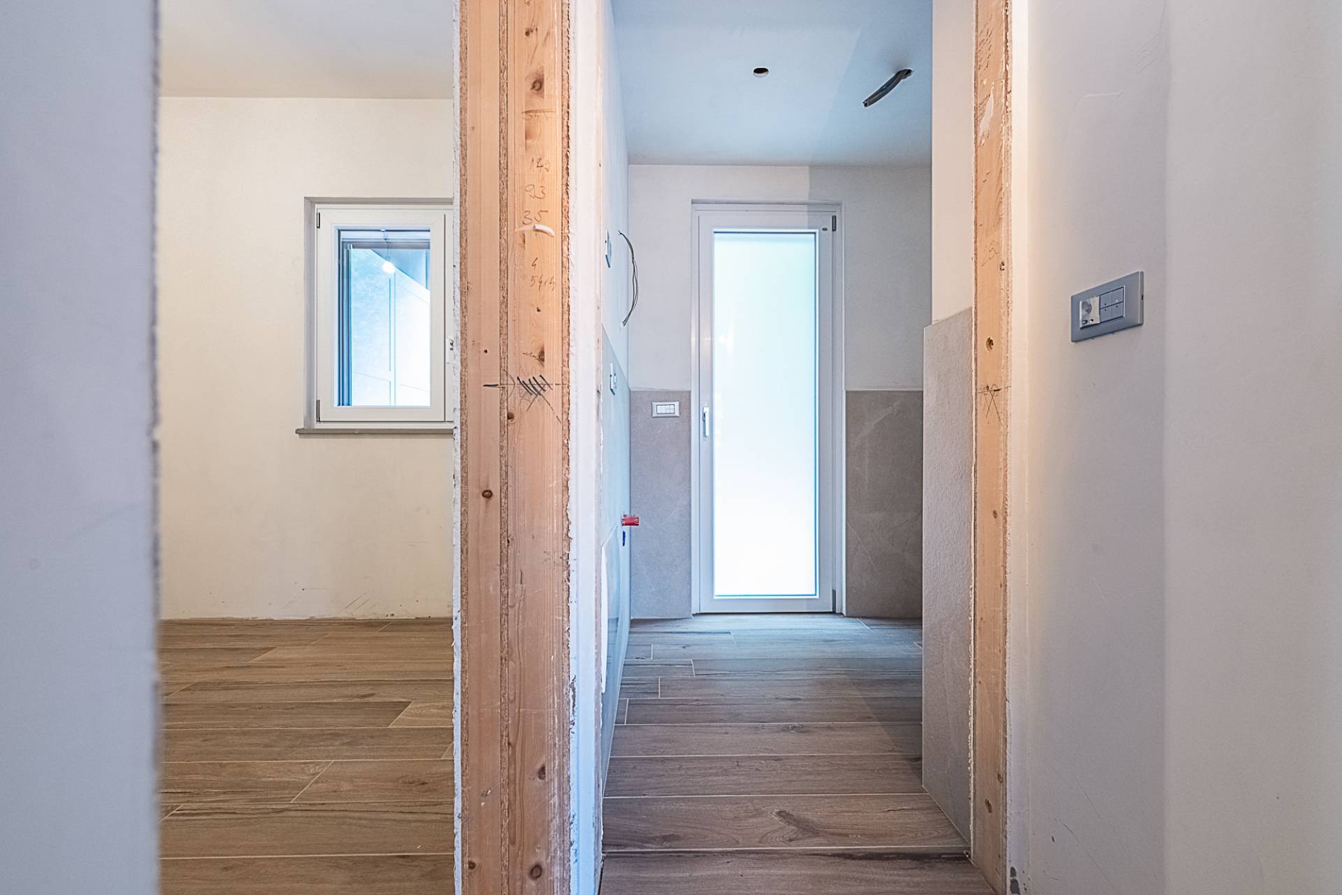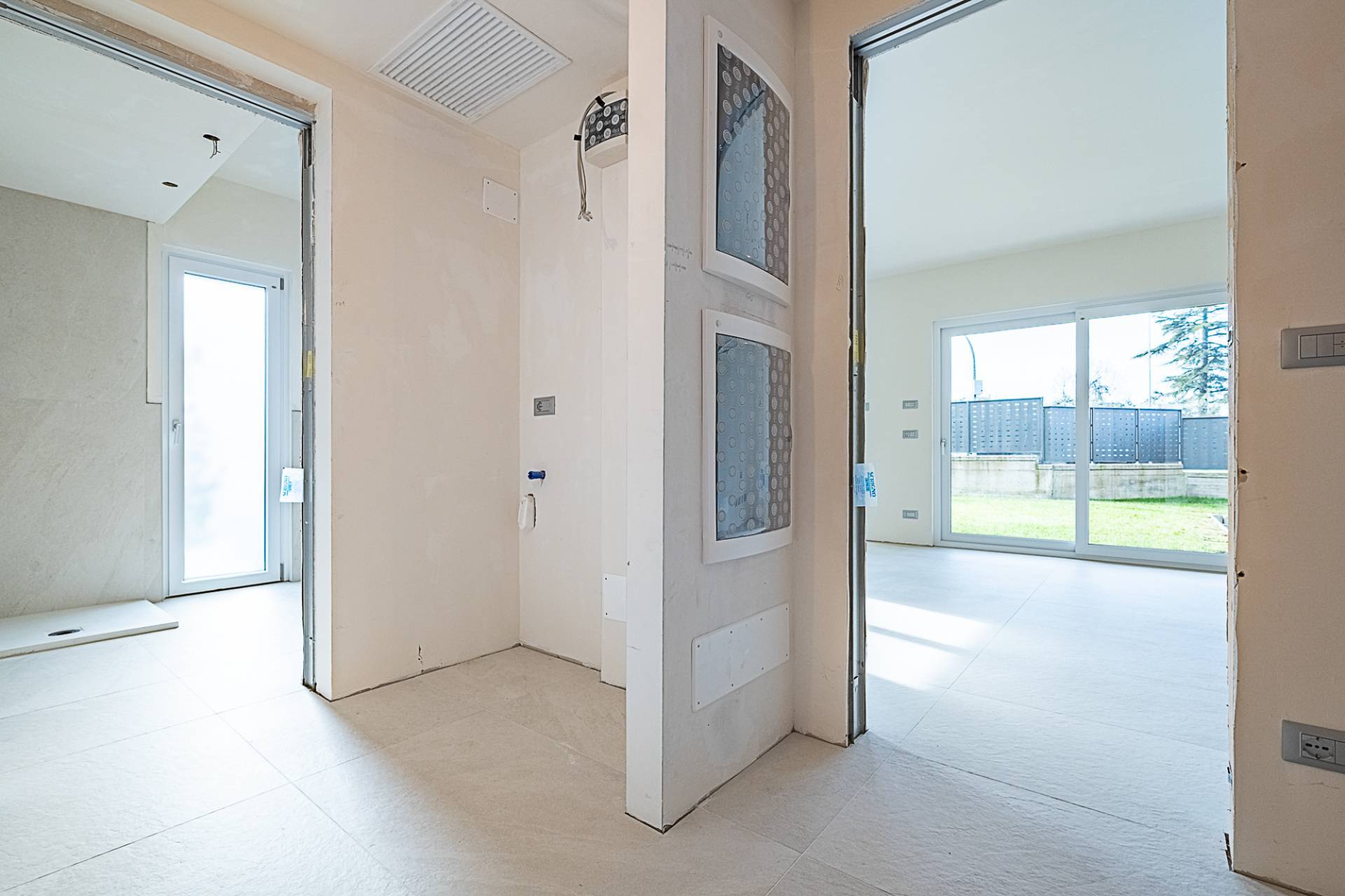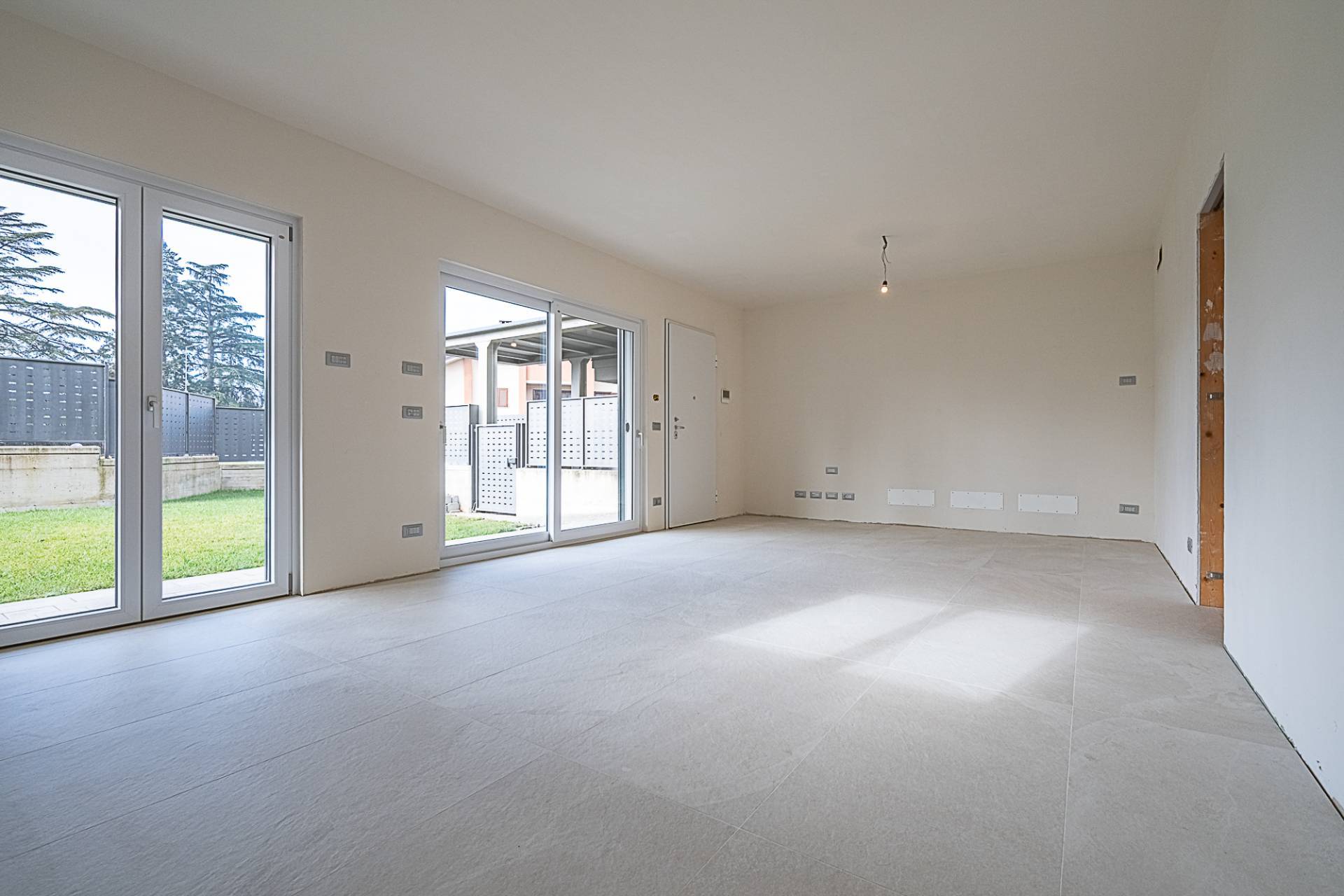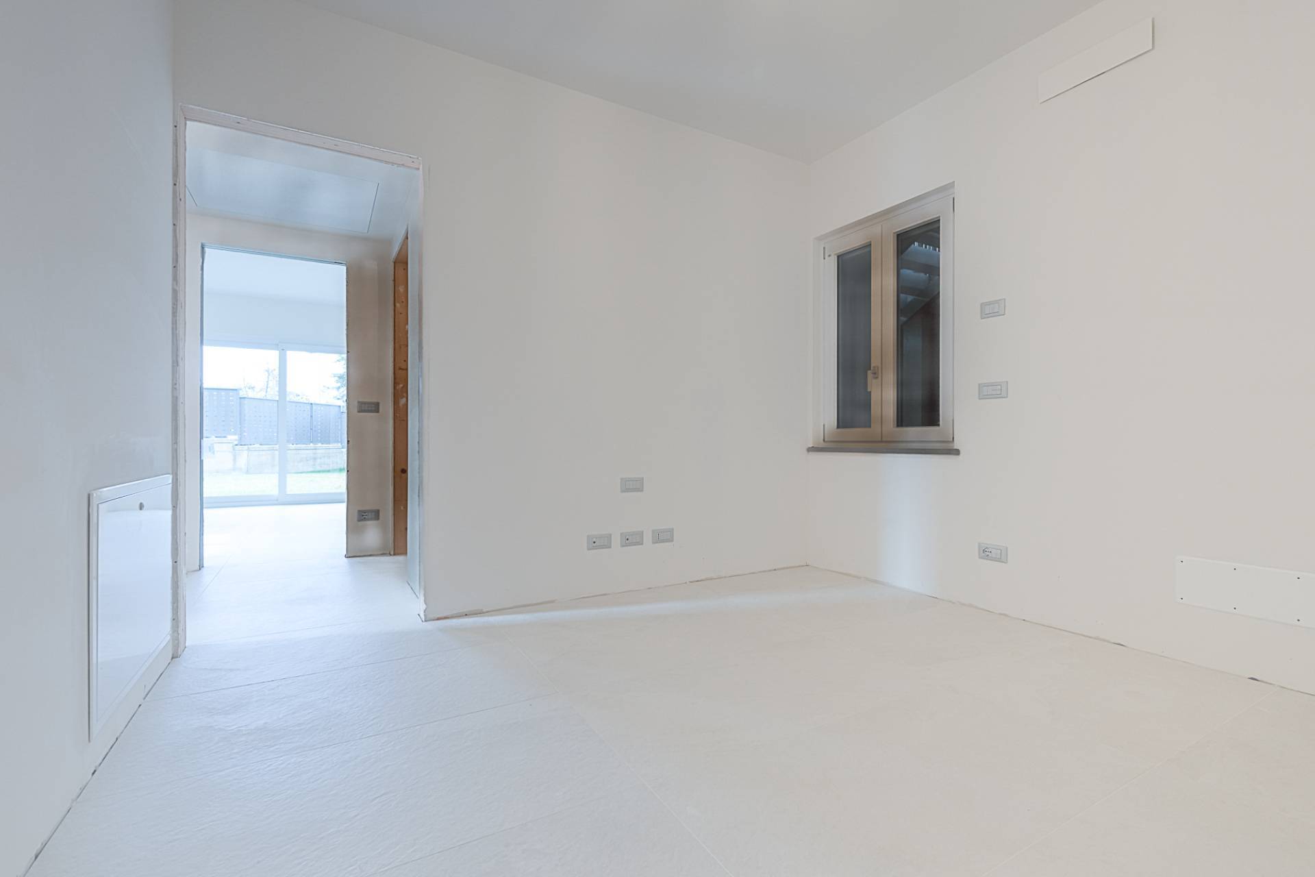 Infissi con doppio vetro basso emissivo stratificato, portoncino blindato, pavimento uniforme in gres porcellanato.
