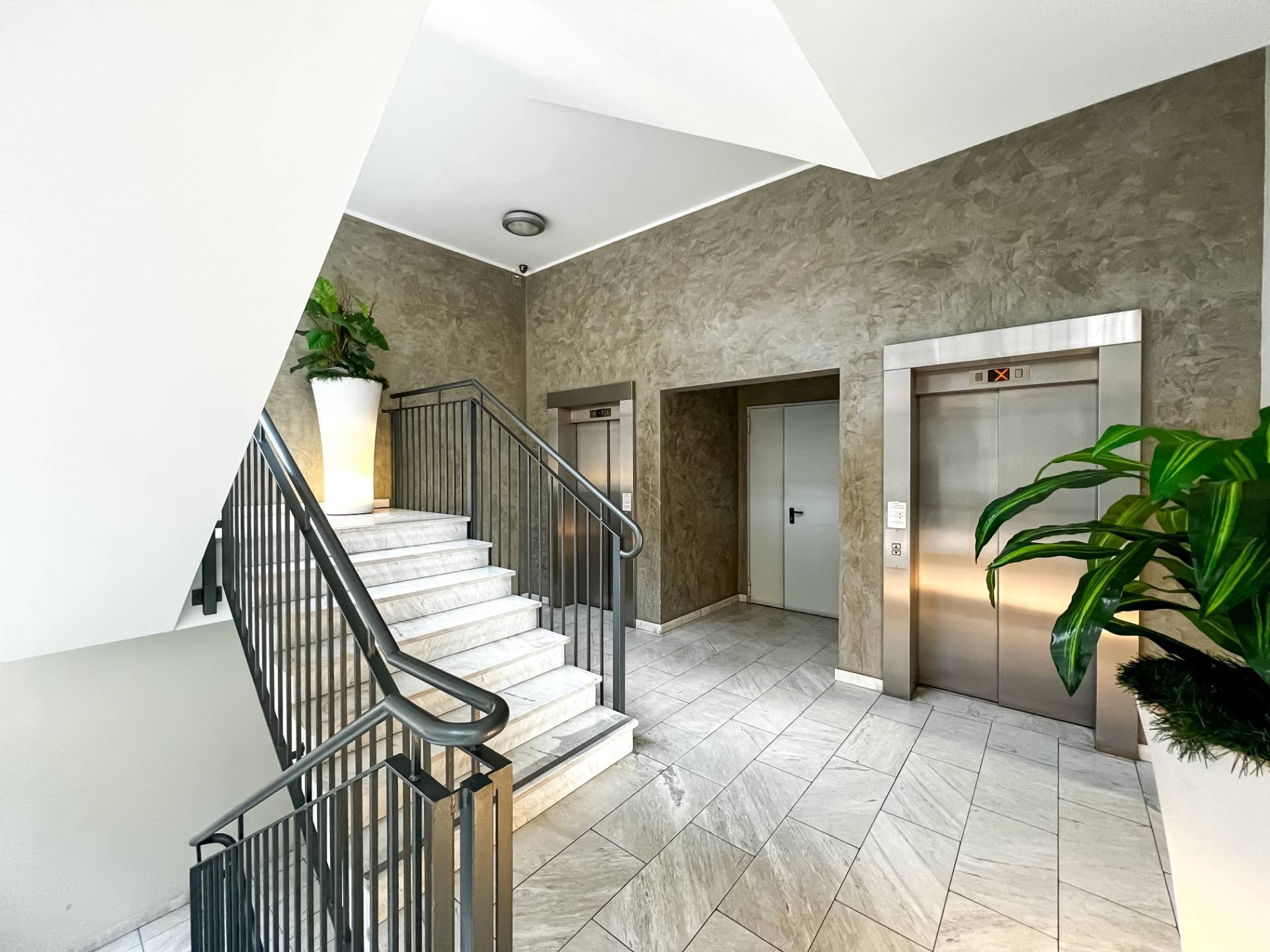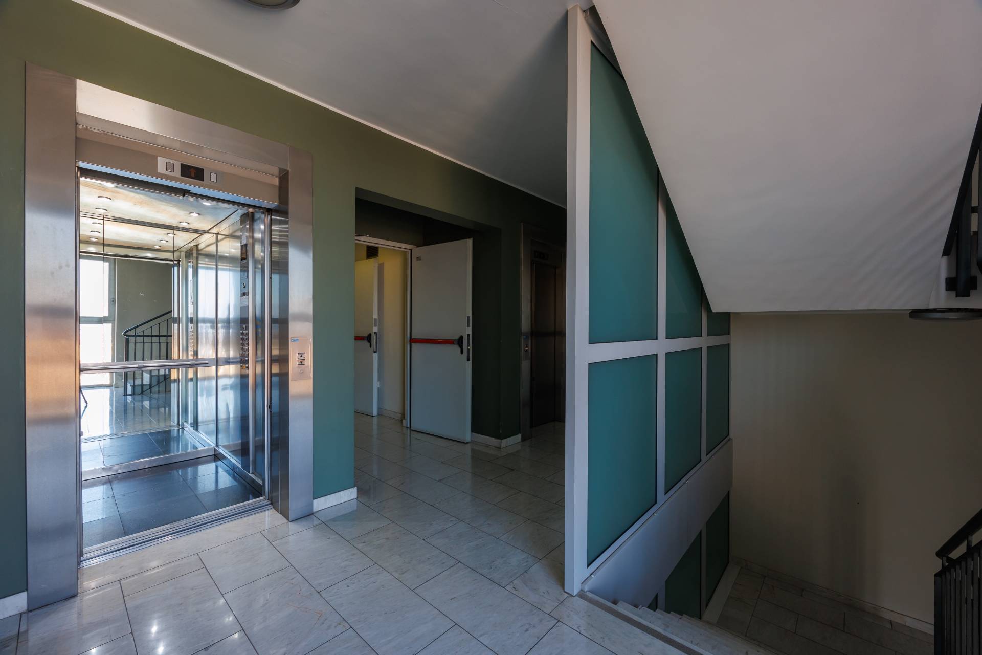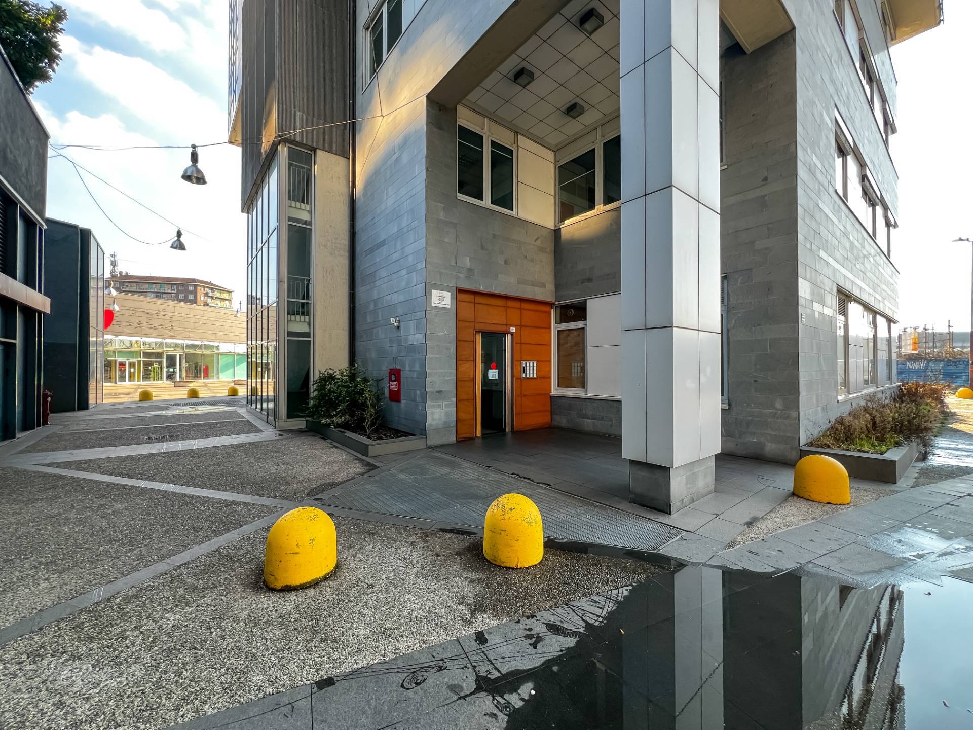 Il moderno grattacielo, servito da doppi ascensori e protetto da portineria, è stato edificato nel 2005. L'immobile è composto da ingresso su zona living con cucina a vista e salone, camera da letto, bagno e ampio terrazzo, e viene affittato parzialmente arredato di cucina e divano.