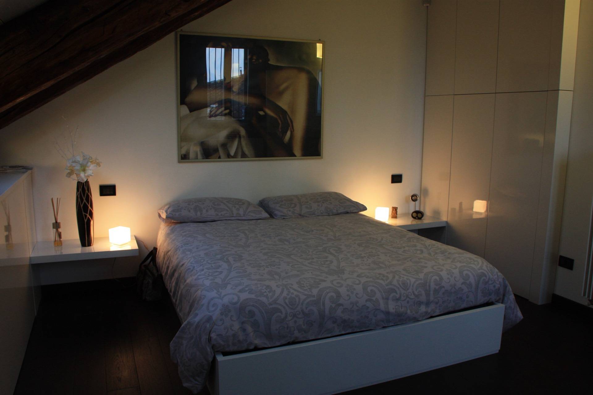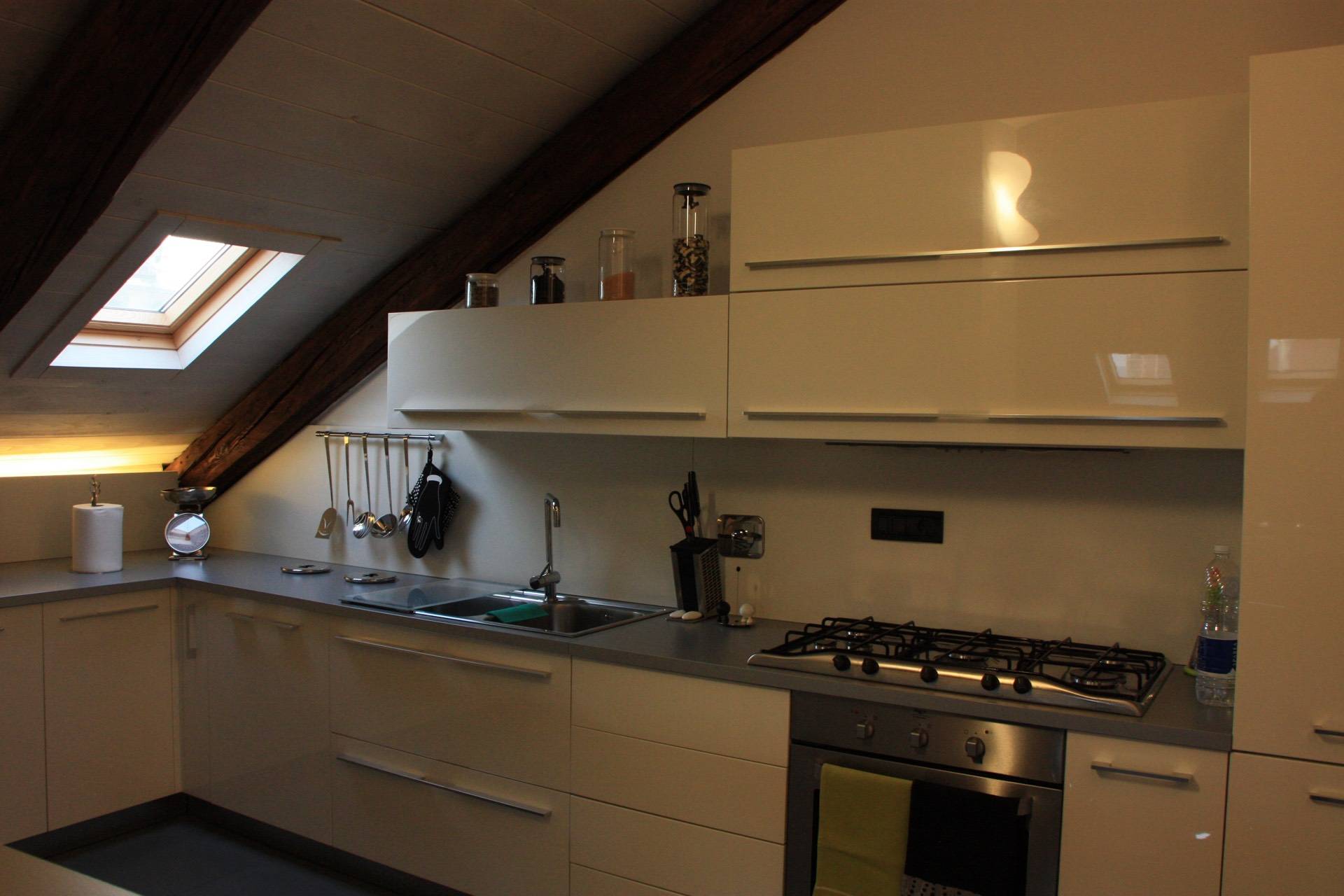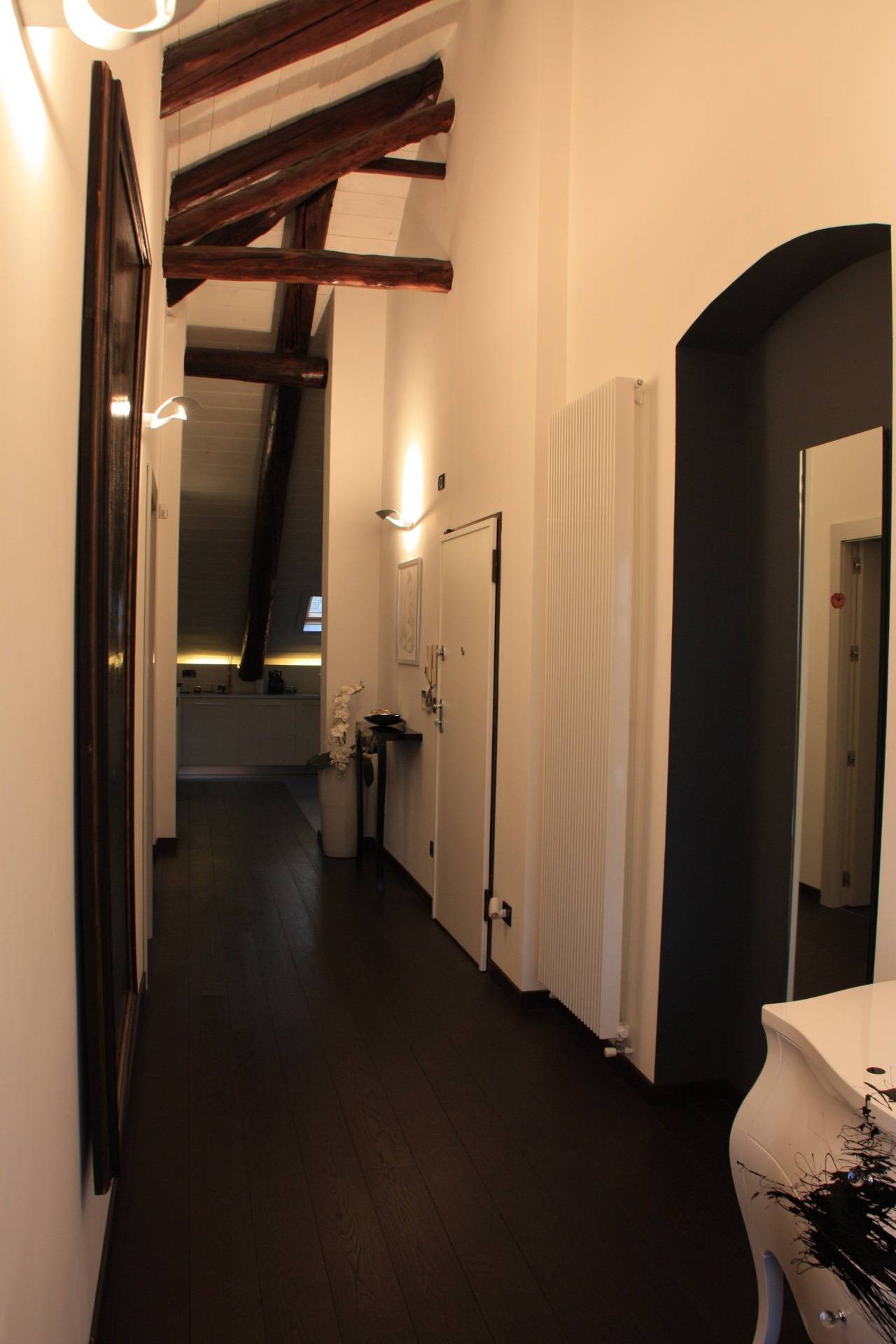 In splendido stabile Liberty di inizio novecento, a pochi minuti a piedi dalla fermata della Metro "Principi d'Acaja", prestigioso Appartamento mansardato alto (altezza massima quattro metri) al quinto piano con ascensore. È composto da ingresso, ampia zona giorno con bow window, cucina con tutti gli elettrodomestici (lavatrice compresa), camera, bagno, terrazzino (parzialmente coperto), ripostiglio e cantina. L'unità è finemente ristrutturata e completamente arredata (arredi su misura), gode di doppia esposizione e di ottima luminosità. Il riscaldamento è autonomo. C'è l'impianto di allarme sia volumetrico che perimetrale e l'impianto di aria condizionata (uno split in camera da letto). La pavimentazione è in rovere termotrattato. Lo stabile è in ottime condizioni generali, il rifacimento dei balconi e del tetto è stato ultimato in primavera 2022. Disponibile dal 1 maggio 2026