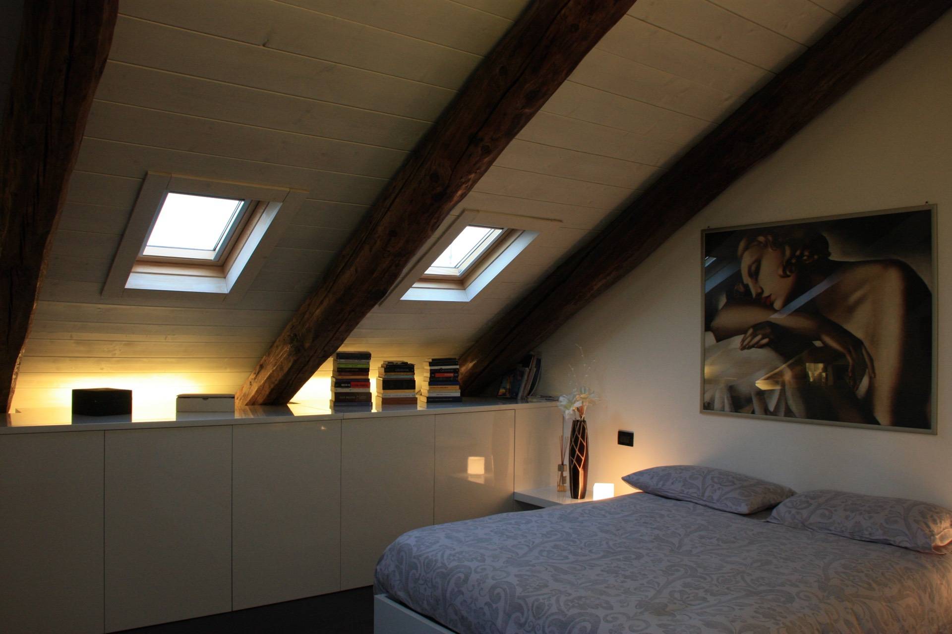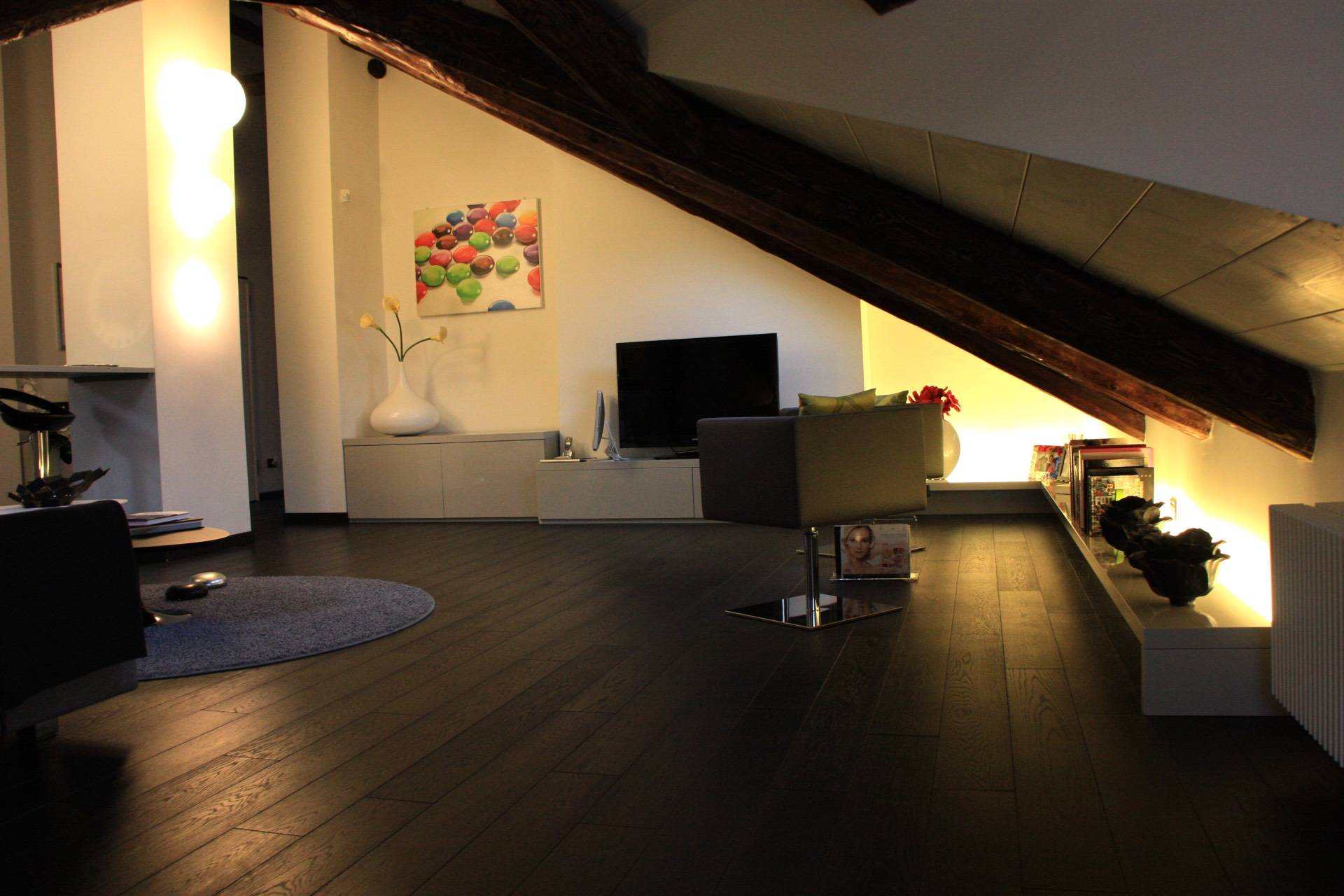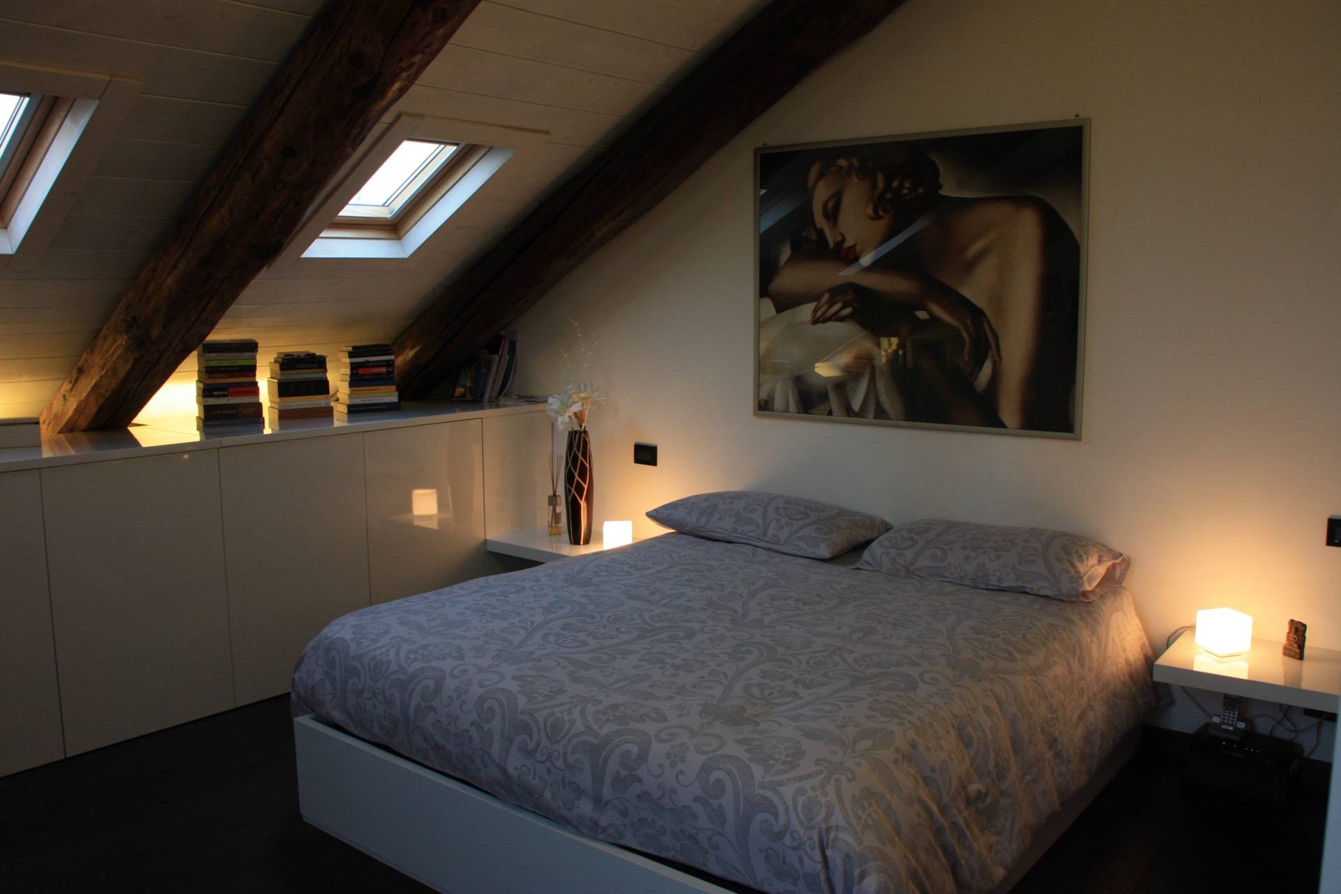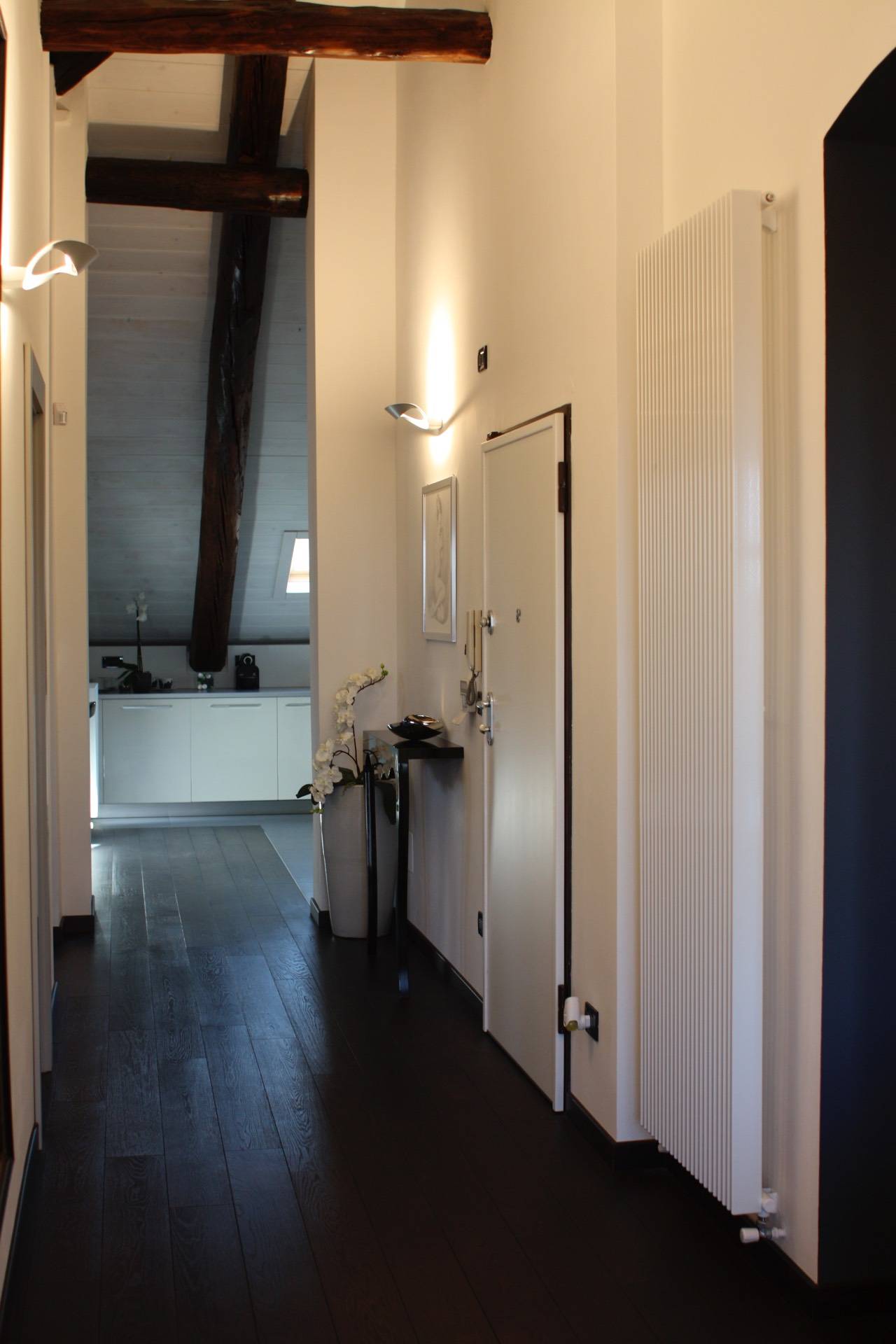 In splendido stabile Liberty di inizio novecento, a pochi minuti a piedi dalla fermata della Metro "Principi d'Acaja", prestigioso Appartamento mansardato alto (altezza massima quattro metri) al quinto piano con ascensore. È composto da ingresso, ampia zona giorno con bow window, cucina con tutti gli elettrodomestici (lavatrice compresa), camera, bagno, terrazzino (parzialmente coperto), ripostiglio e cantina. L'unità è finemente ristrutturata e completamente arredata (arredi su misura), gode di doppia esposizione e di ottima luminosità. Il riscaldamento è autonomo. C'è l'impianto di allarme sia volumetrico che perimetrale e l'impianto di aria condizionata (uno split in camera da letto). La pavimentazione è in rovere termotrattato. Lo stabile è in ottime condizioni generali, il rifacimento dei balconi e del tetto è stato ultimato in primavera 2022. Disponibile dal 1 maggio 2026