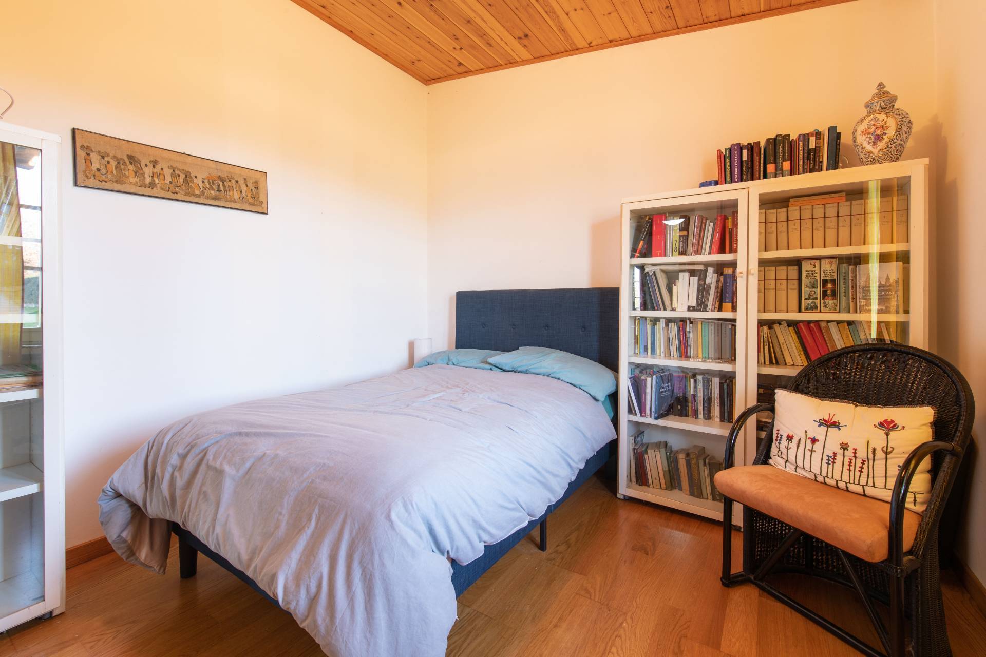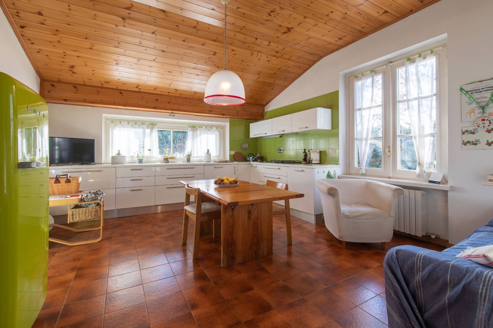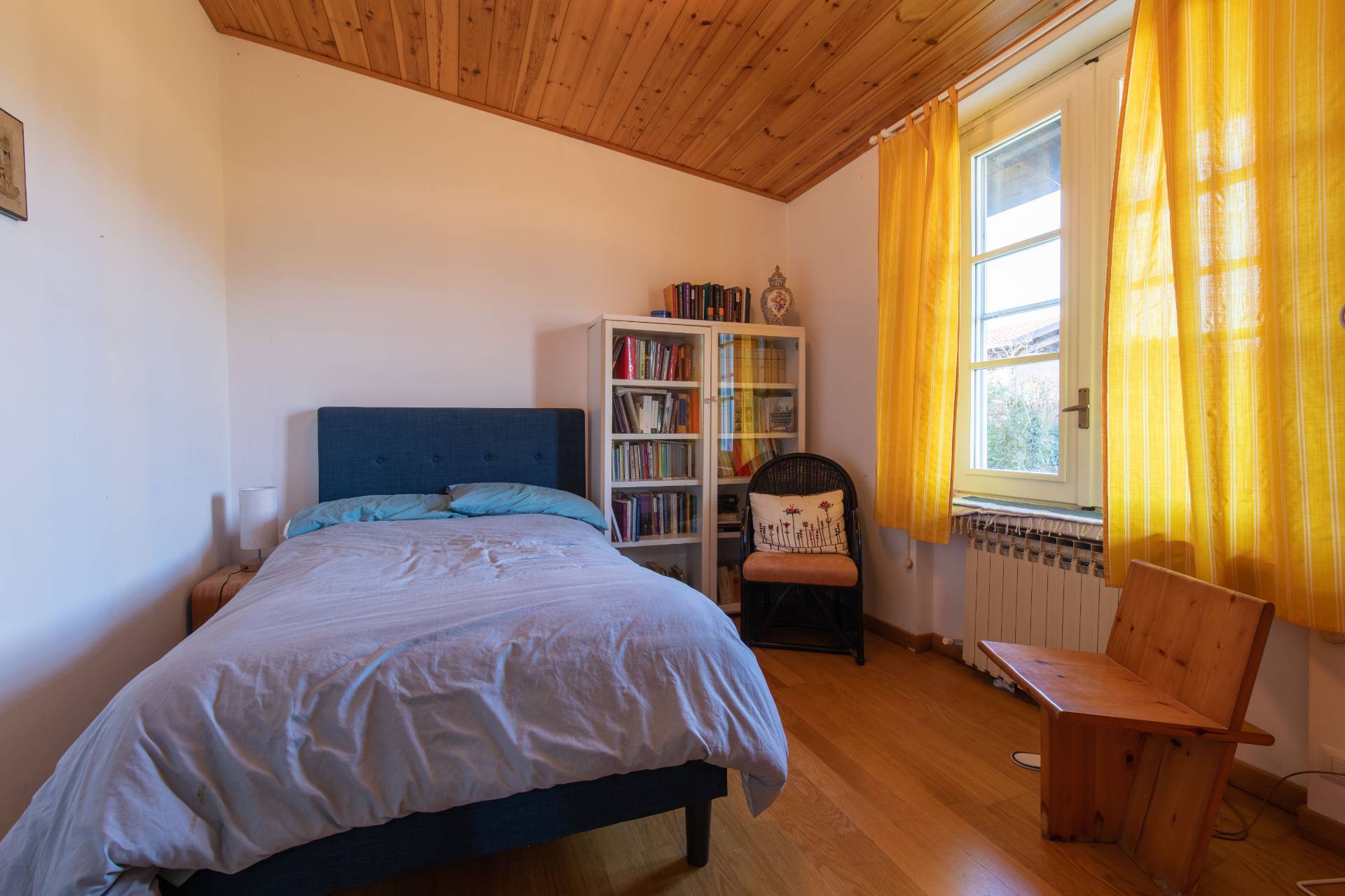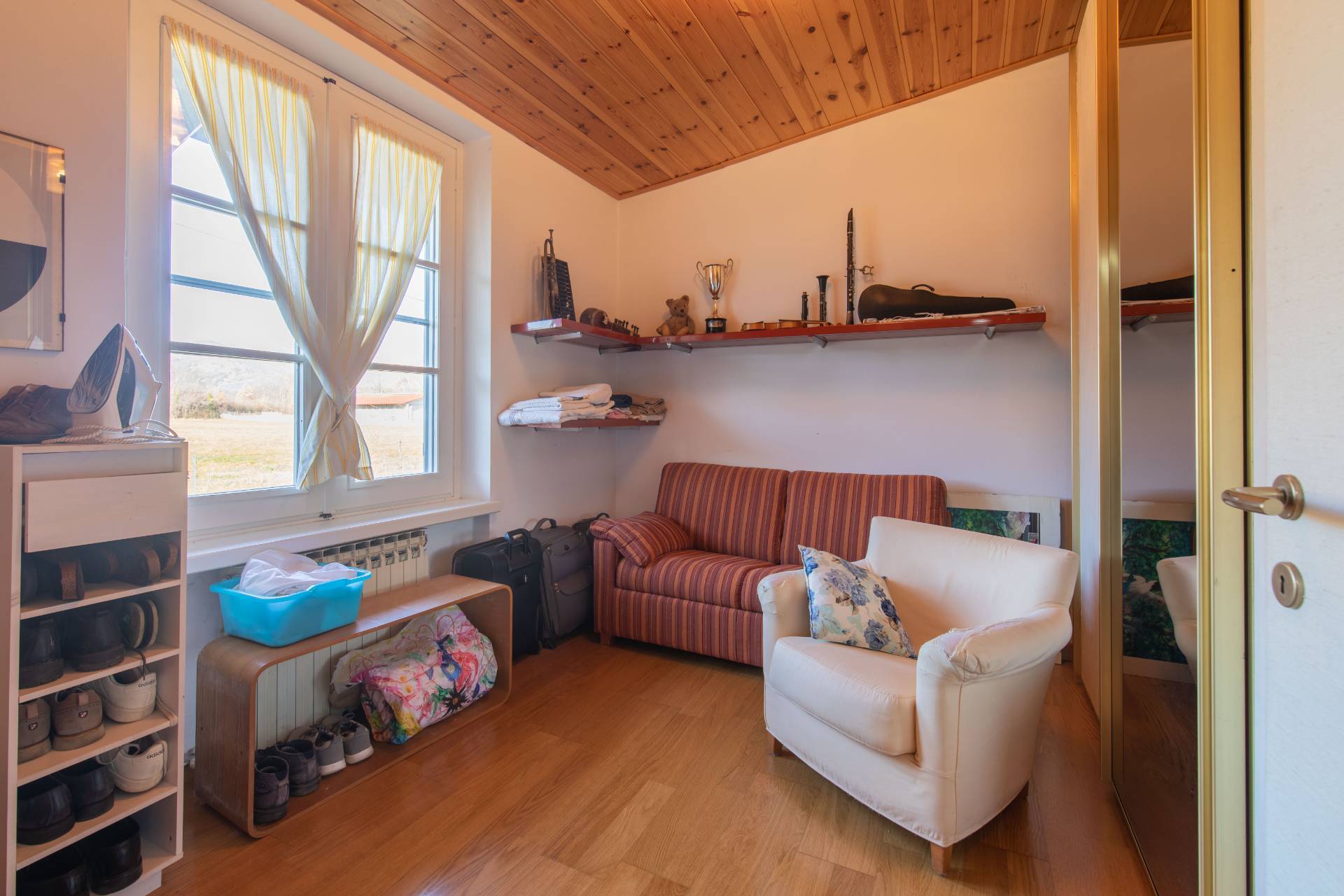 L'immobile si sviluppa su due livelli. Al piano terreno troviamo una cucina abitabile, un ampio e luminoso soggiorno con pavimentazione in cotto e una grande vetrata con accesso al patio, valorizzato dalla presenza di un caminetto; da qui, tramite una scala interna, si può accedere al soppalco, attualmente utilizzato come studio. La zona notte si compone di una camera da letto matrimoniale con caminetto e bagno in suite con doccia e vasca da bagno, altre due camere da letto più un ulteriore bagno con doccia.