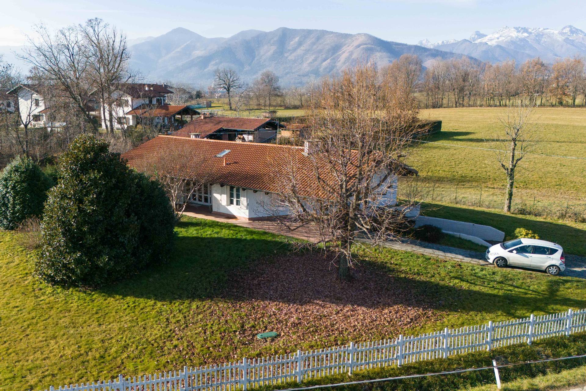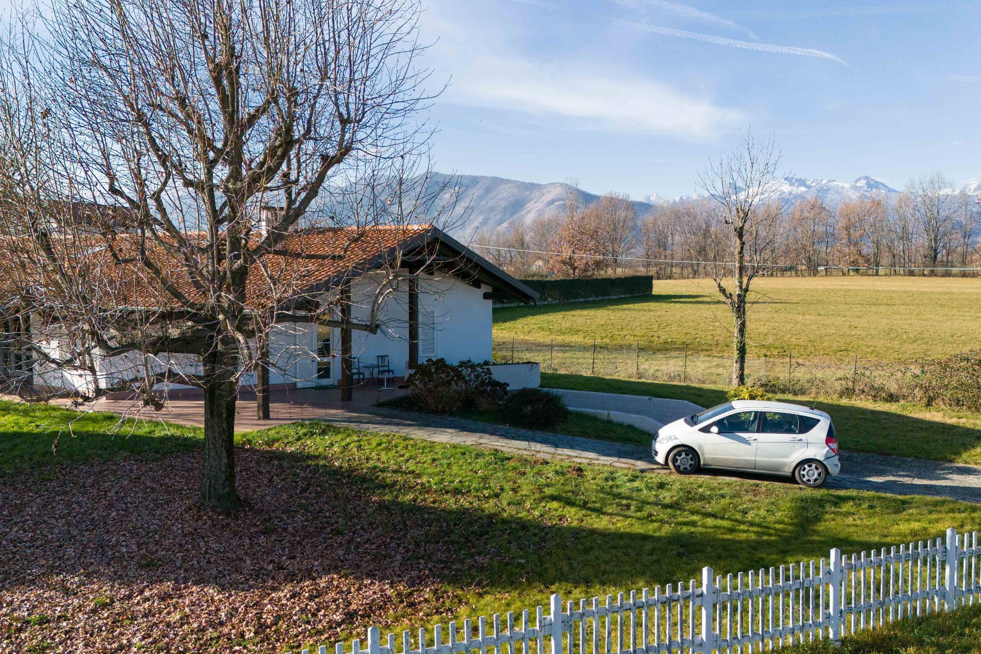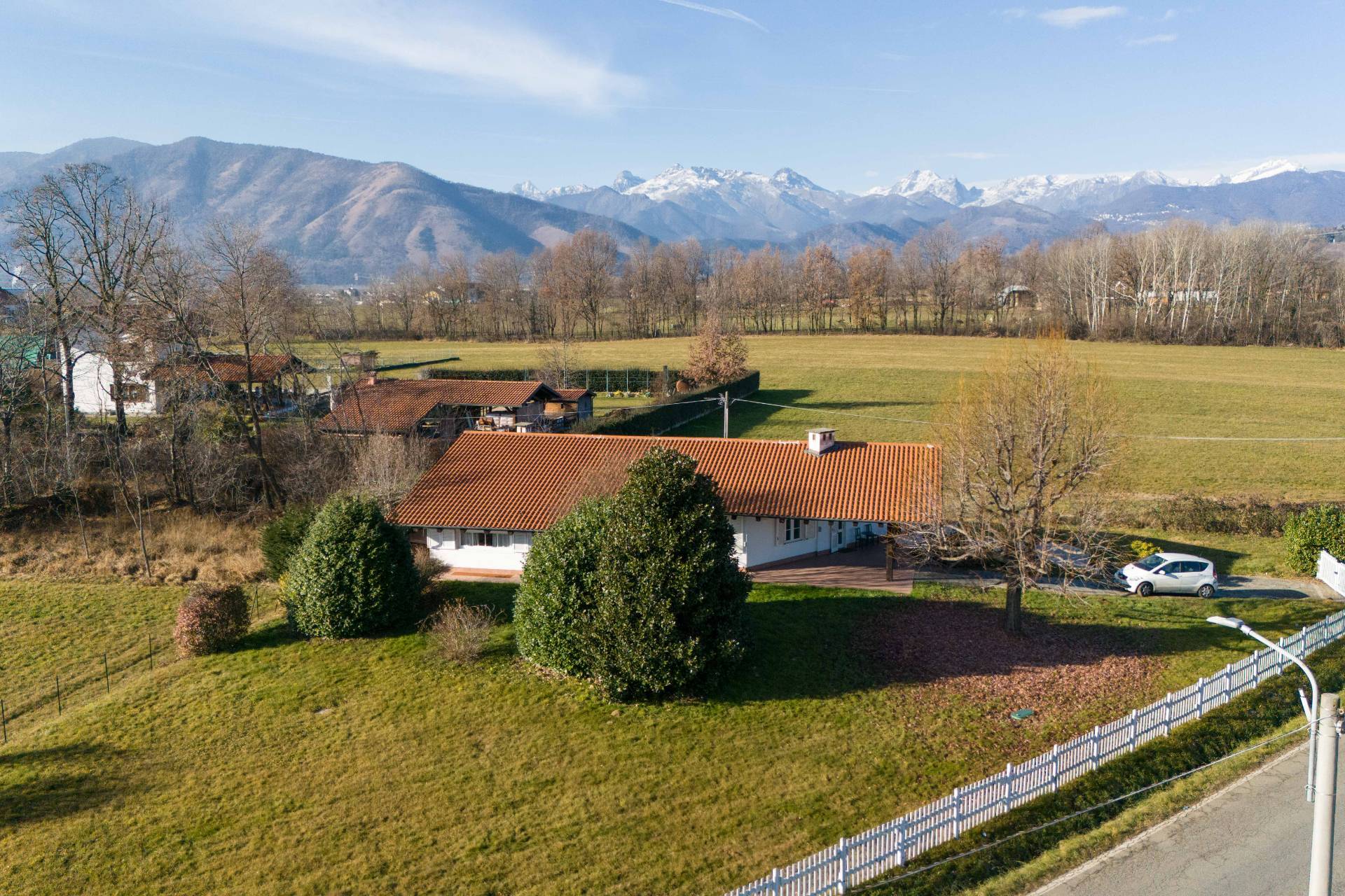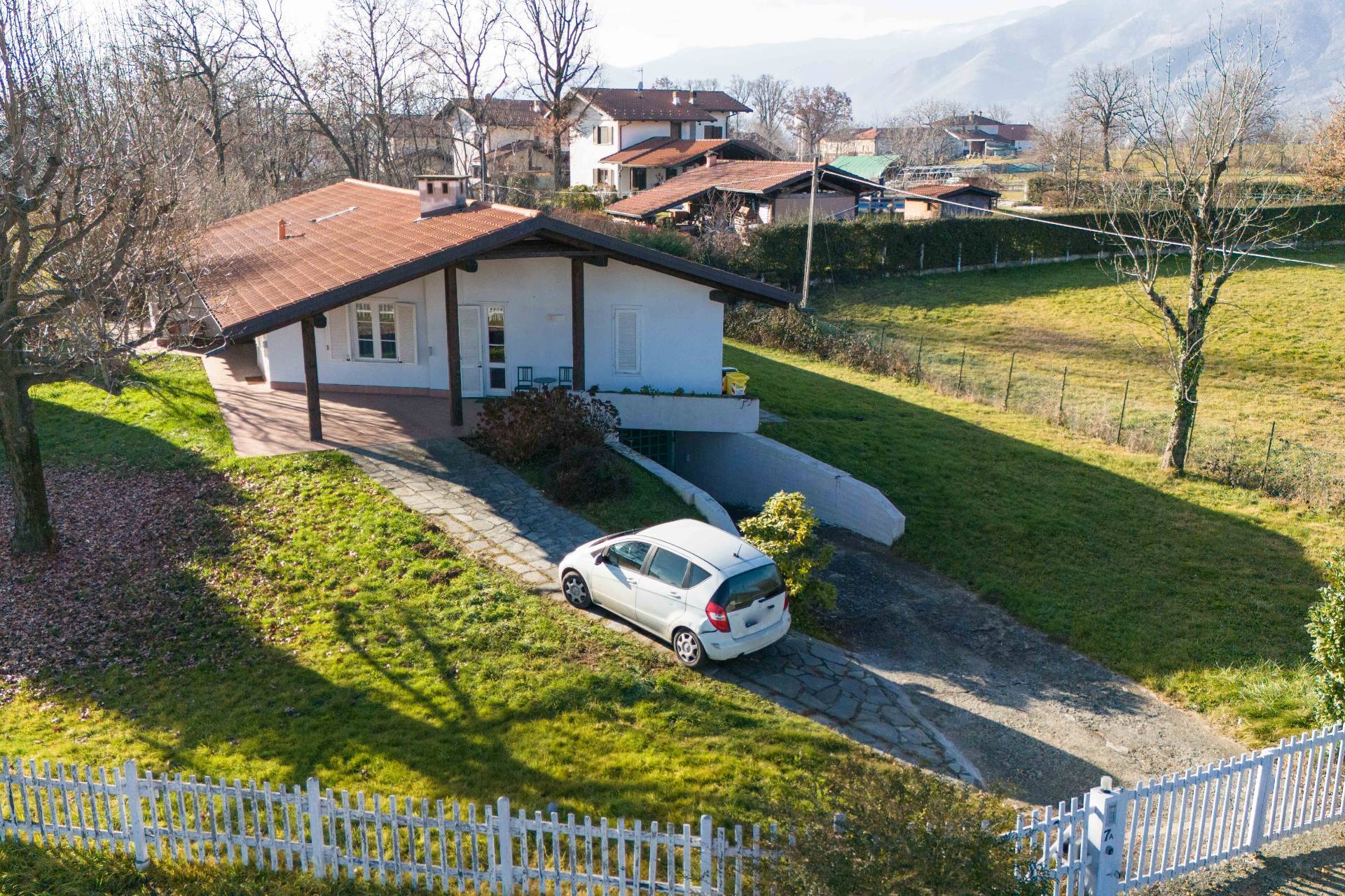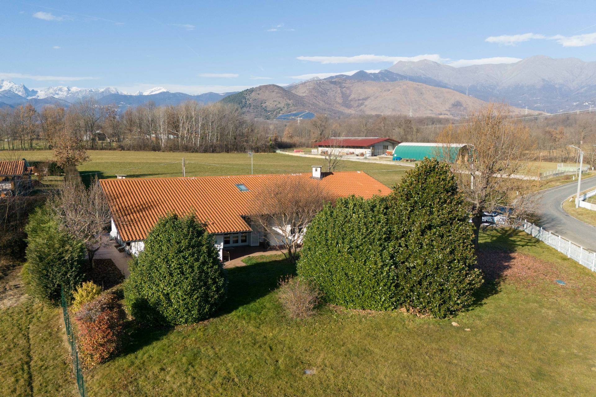 Villa esclusiva progettata dall'architetto Guido Drocco, libera su quattro lati e circondata da un giardino privato, situata in posizione comoda e con bella vista aperta sui campi e sulle montagne, a soli 20 minuti dall'Aeroporto di Caselle e 35 minuti dalla stazione di Torino Porta Susa.