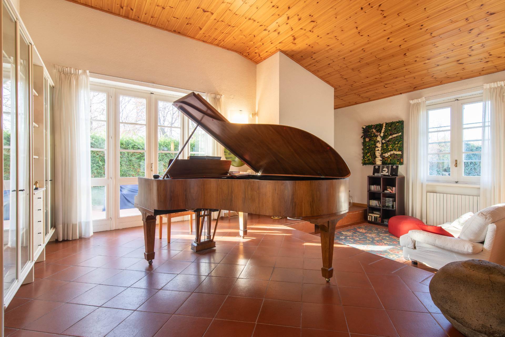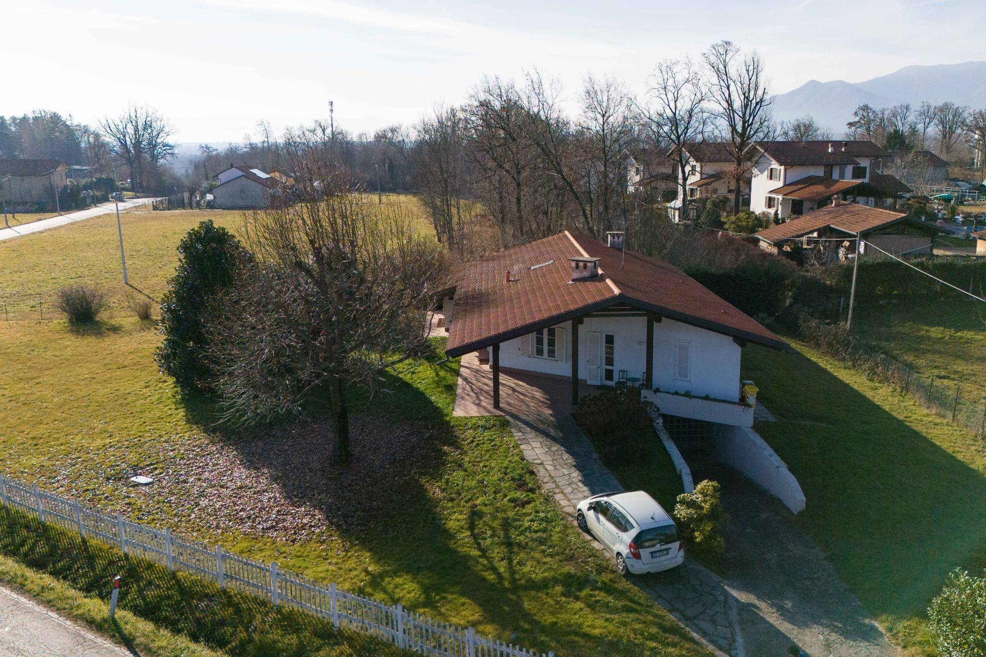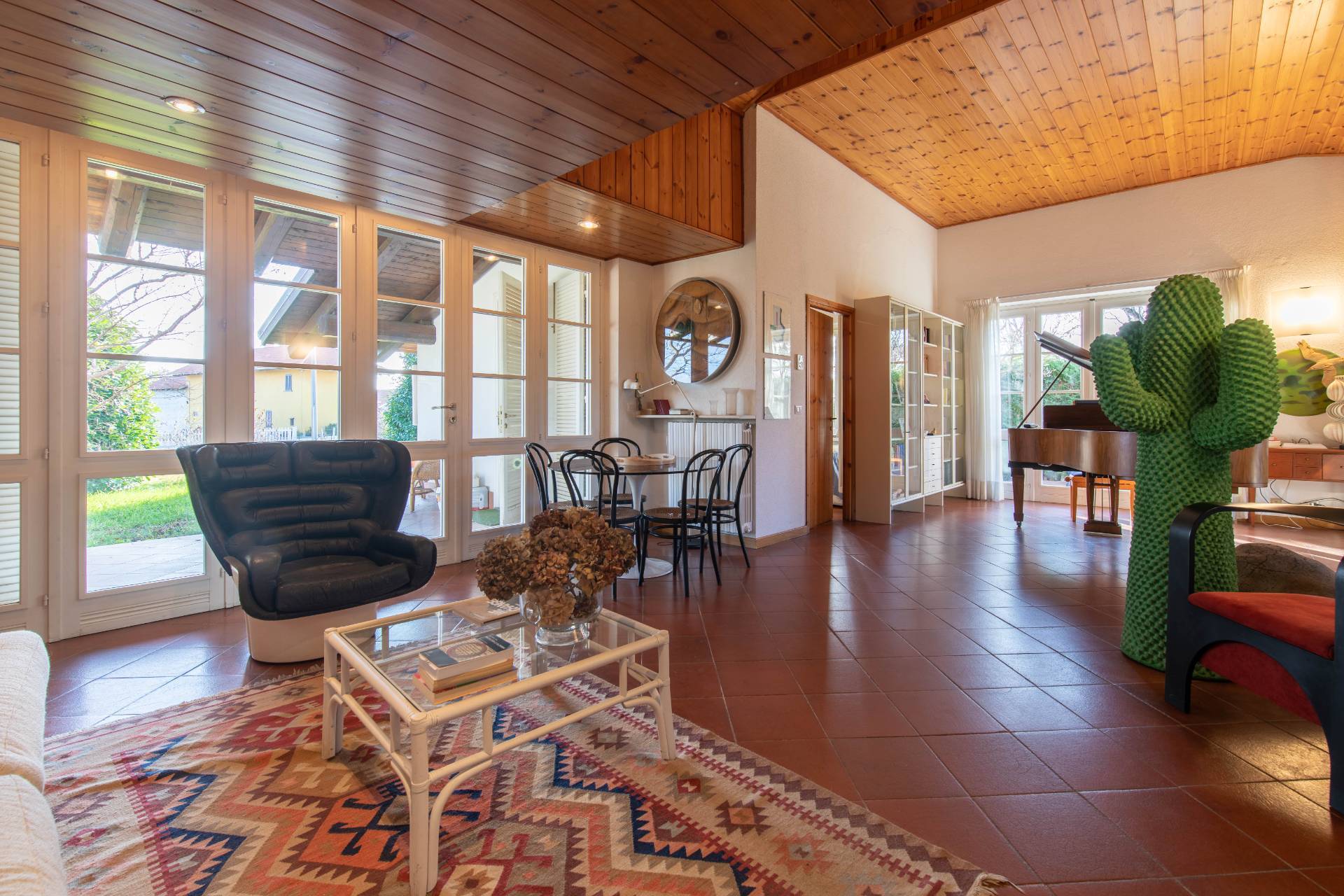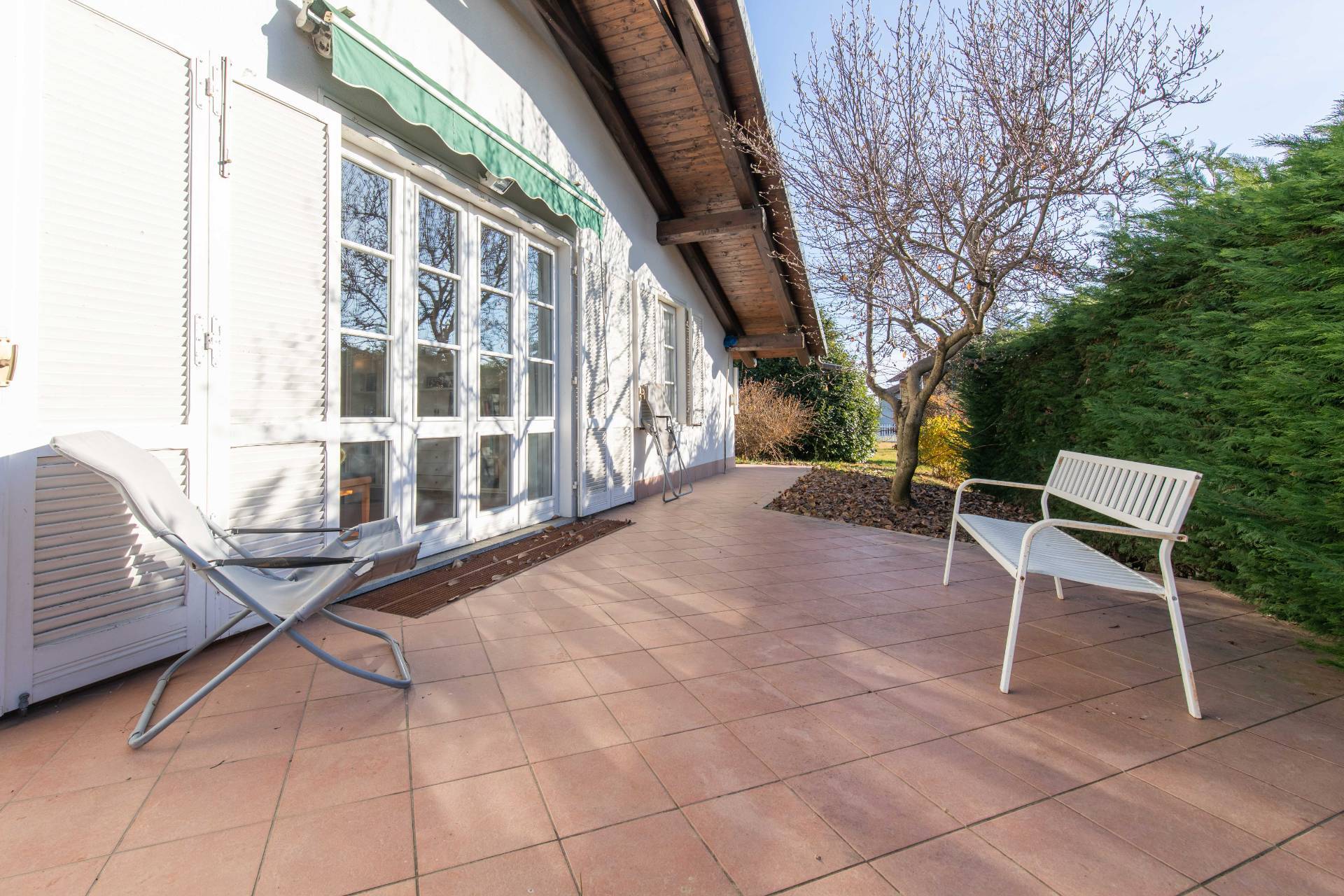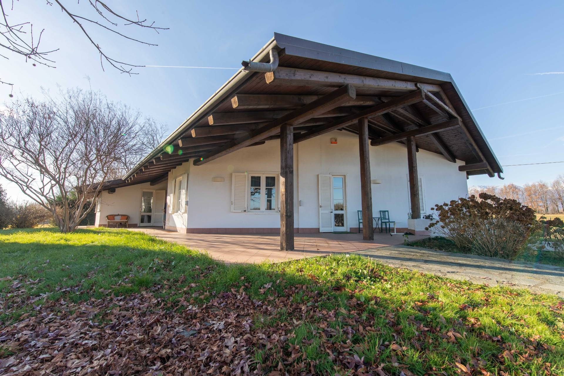 Villa esclusiva progettata dall'architetto Guido Drocco, libera su quattro lati e circondata da un giardino privato, situata in posizione comoda e con bella vista aperta sui campi e sulle montagne, a soli 20 minuti dall'Aeroporto di Caselle e 35 minuti dalla stazione di Torino Porta Susa.
