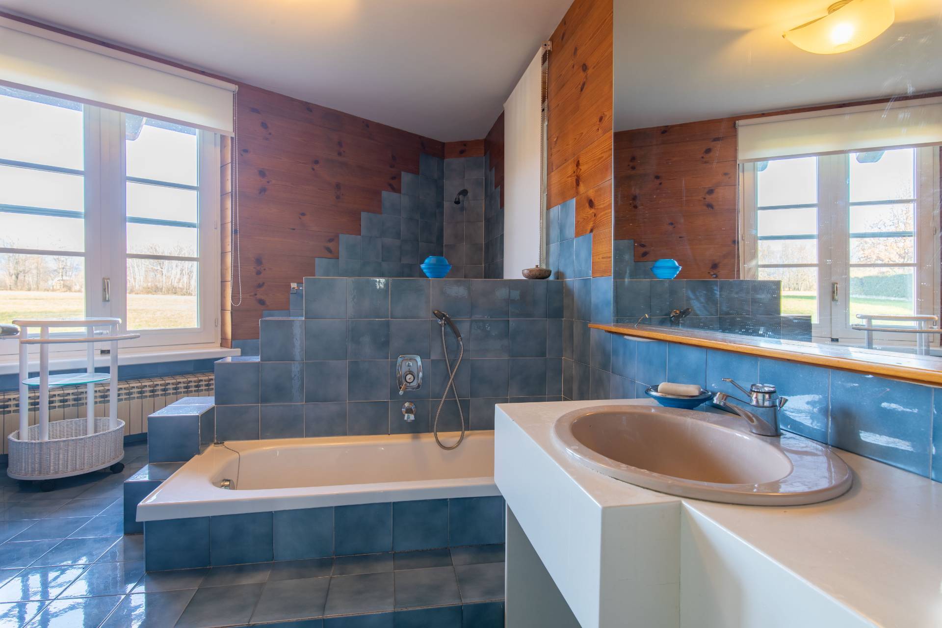 Una scala interna conduce al piano interrato, dove sono presenti una grande taverna con cucina, una cantina, una lavanderia e un altro locale dedicato alla centrale termica.