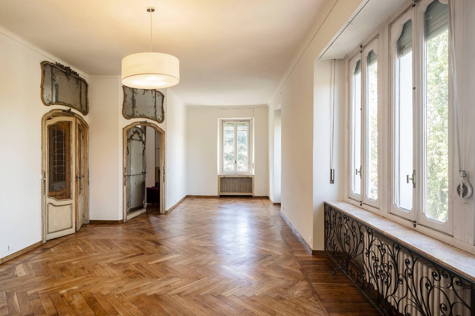 In storico edificio d'epoca tra Viale Thovez e Corso Giovanni Lanza, prestigioso Appartamento da ristrutturare al secondo piano con ascensore. Le vetrate di gui gode l'ampio soggiorno rendono l'immobile particolarmente luminoso e la pianta regolare lo rende adatto a più soluzioni di ristrutturazione interna. Elegante ingresso da cui si accede alla zona giorno composta da un bellissimo salone con annessa sala da pranzo e studio (volendo utilizzabili come ulteriori camere da letto), zona notte con due ampie camere e un bagno, zona servizi composta da cucna abitabie con balcone, cabina armadi, cameretta e bagno. Pavimenti in marmo e parquet originale appena levigato. Infissi originali dotati di doppi vetri. Completa la proprietà una cantina di pertinenza. Possibilità di parcheggio. L'edificio è stato recentemente oggetto di un radicale restauro che ha portato al rifacimento completo delle facciate esterne e del tetto.