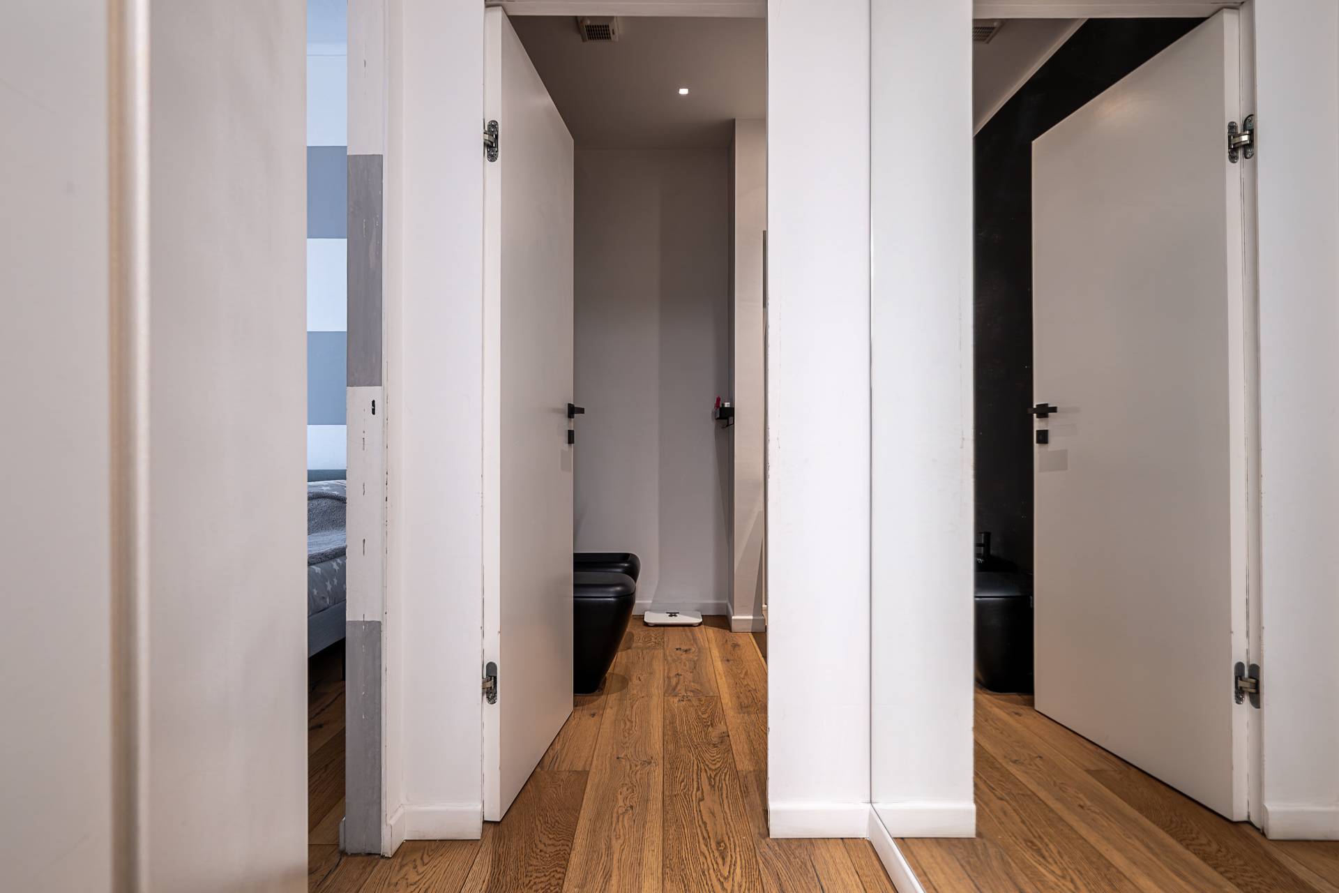 La zona notte, ben disimpegnata, comprende tre camere da letto spaziose e silenziose. La camera padronale si distingue per eleganza e comfort, mentre le altre due stanze risultano versatili, ideali come camere per figli, ospiti o studio.