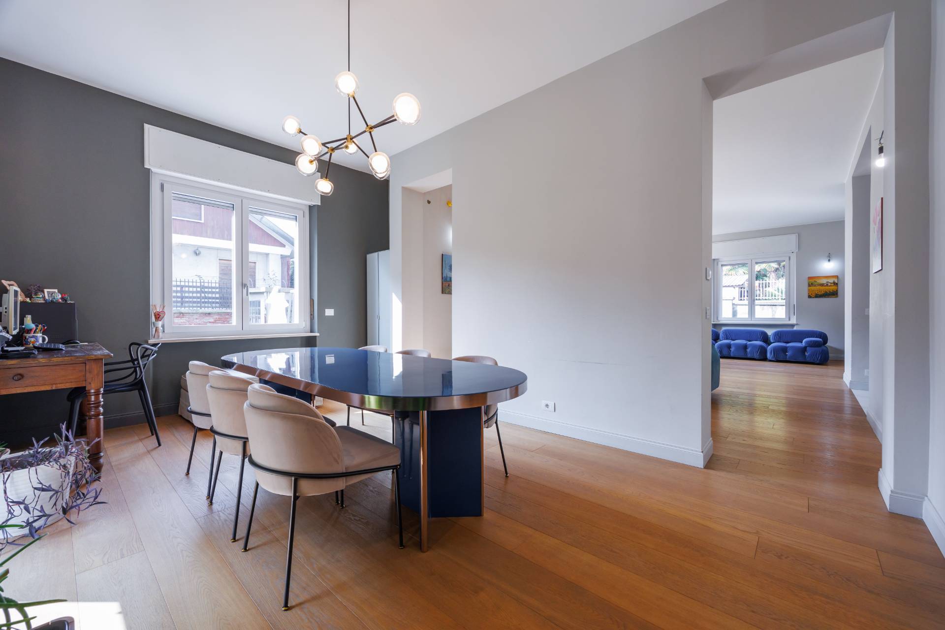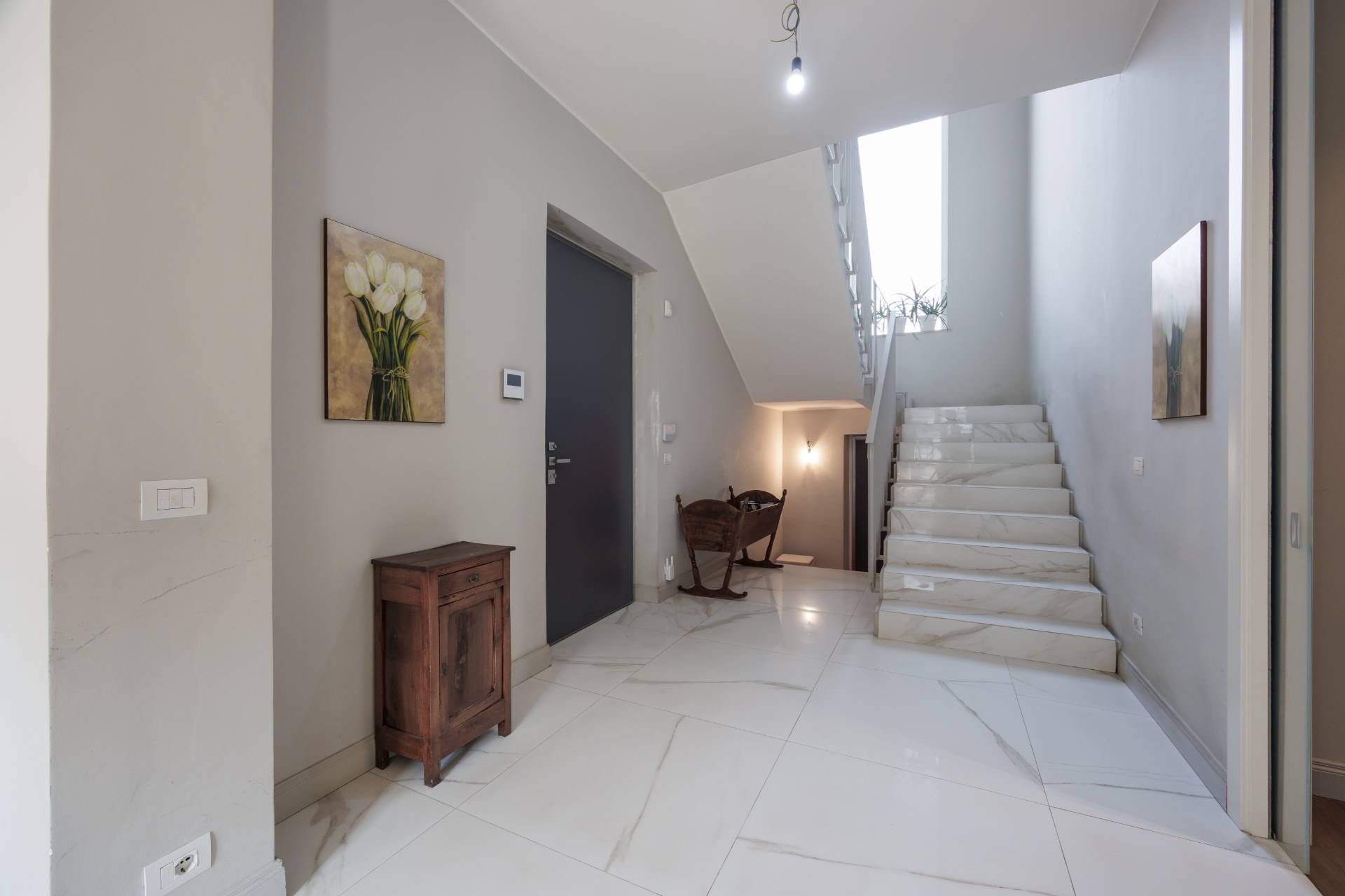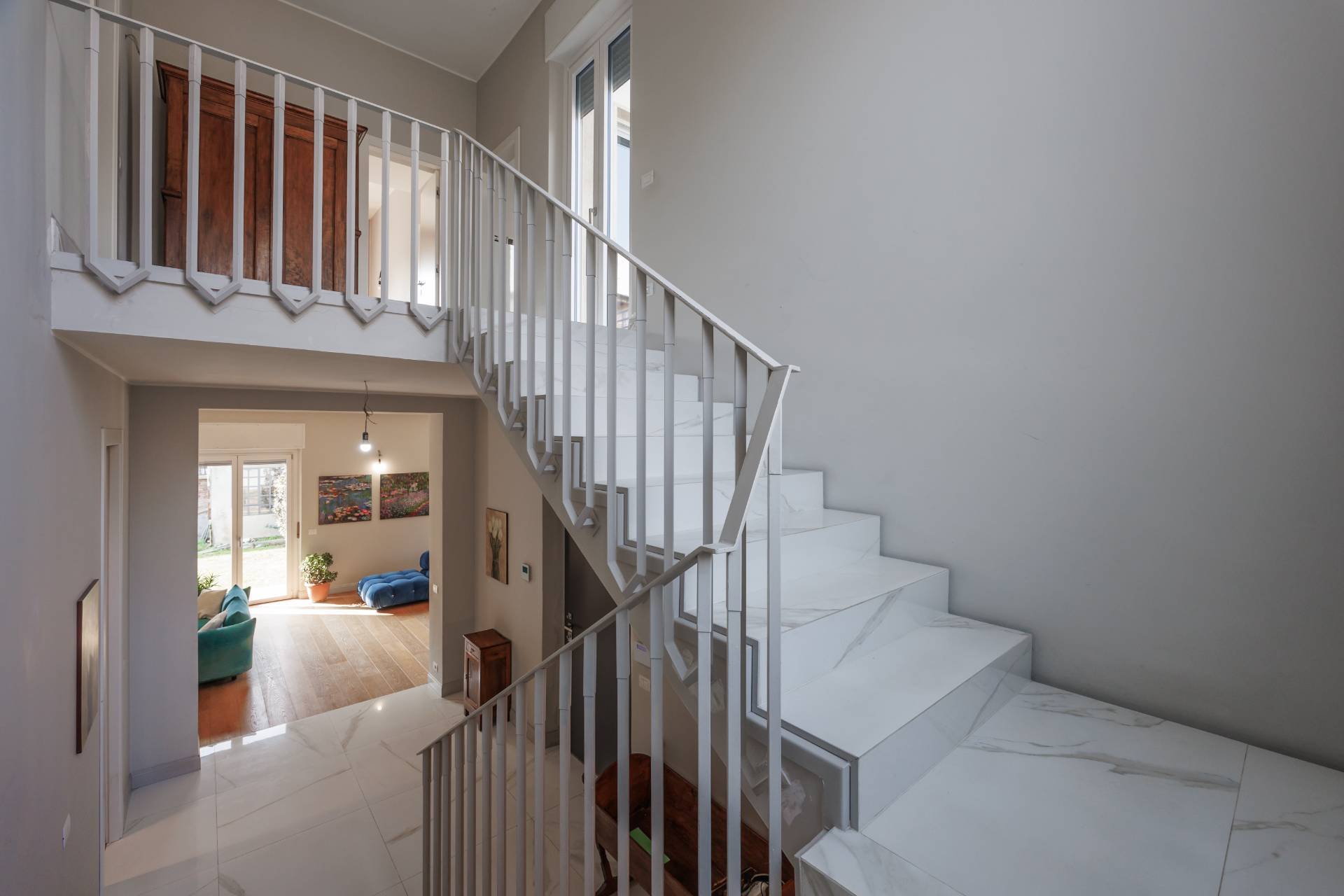 Al piano terra l'ingresso avviene tramite un elegante atrio che conduce alla zona giorno composta da ampio soggiorno luminoso e affacciato sull'esterno, sala da pranzo collegata, cucina abitabile, disimpegno, bagno e locale lavanderia.