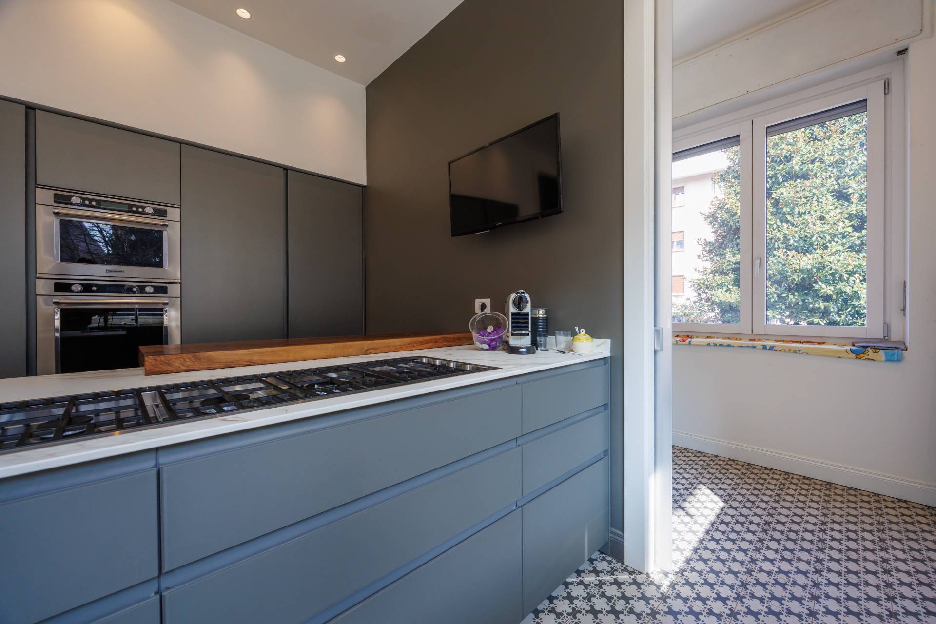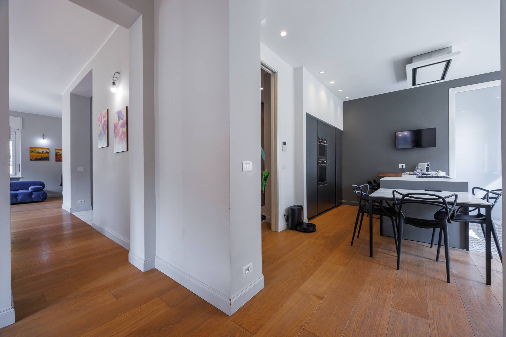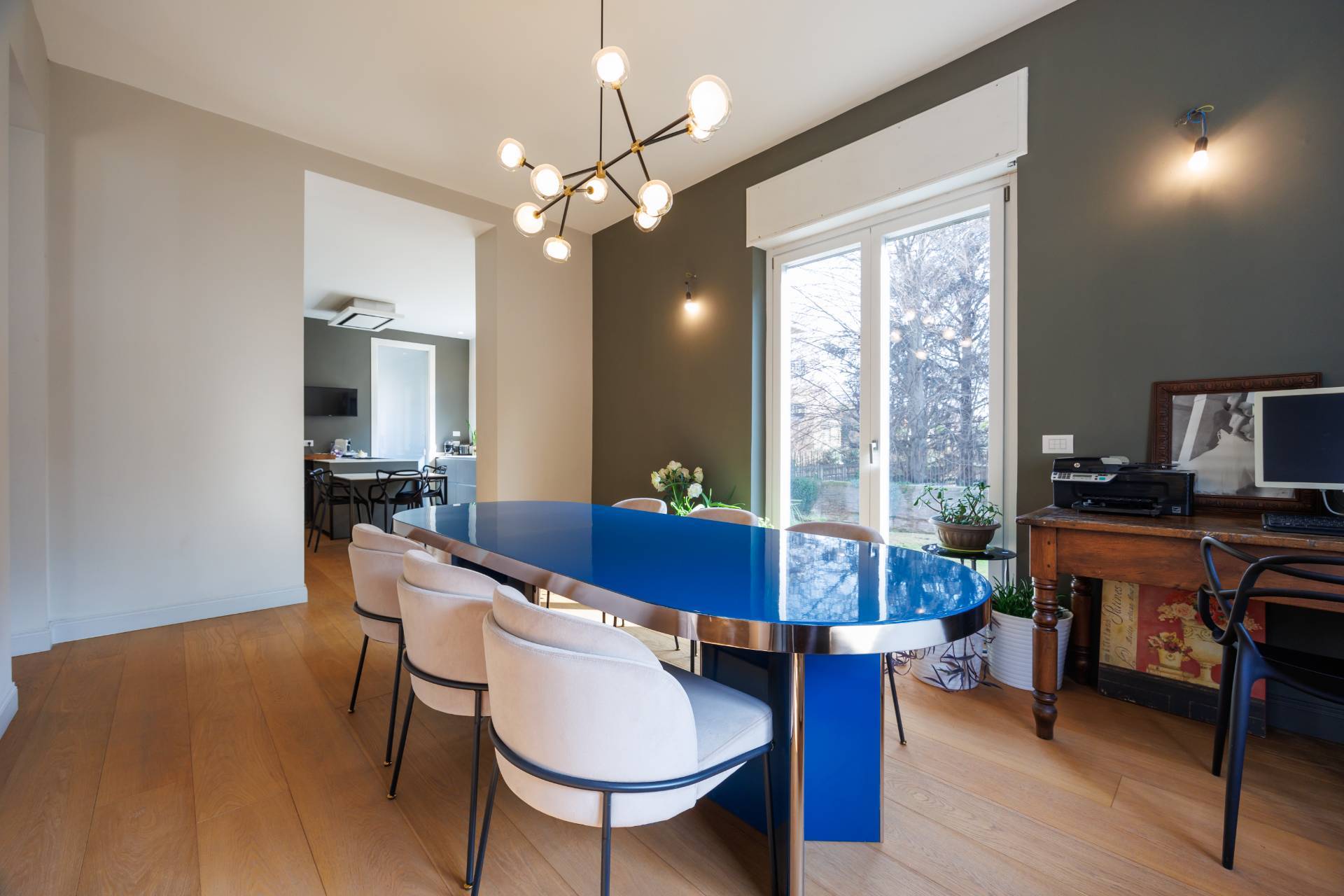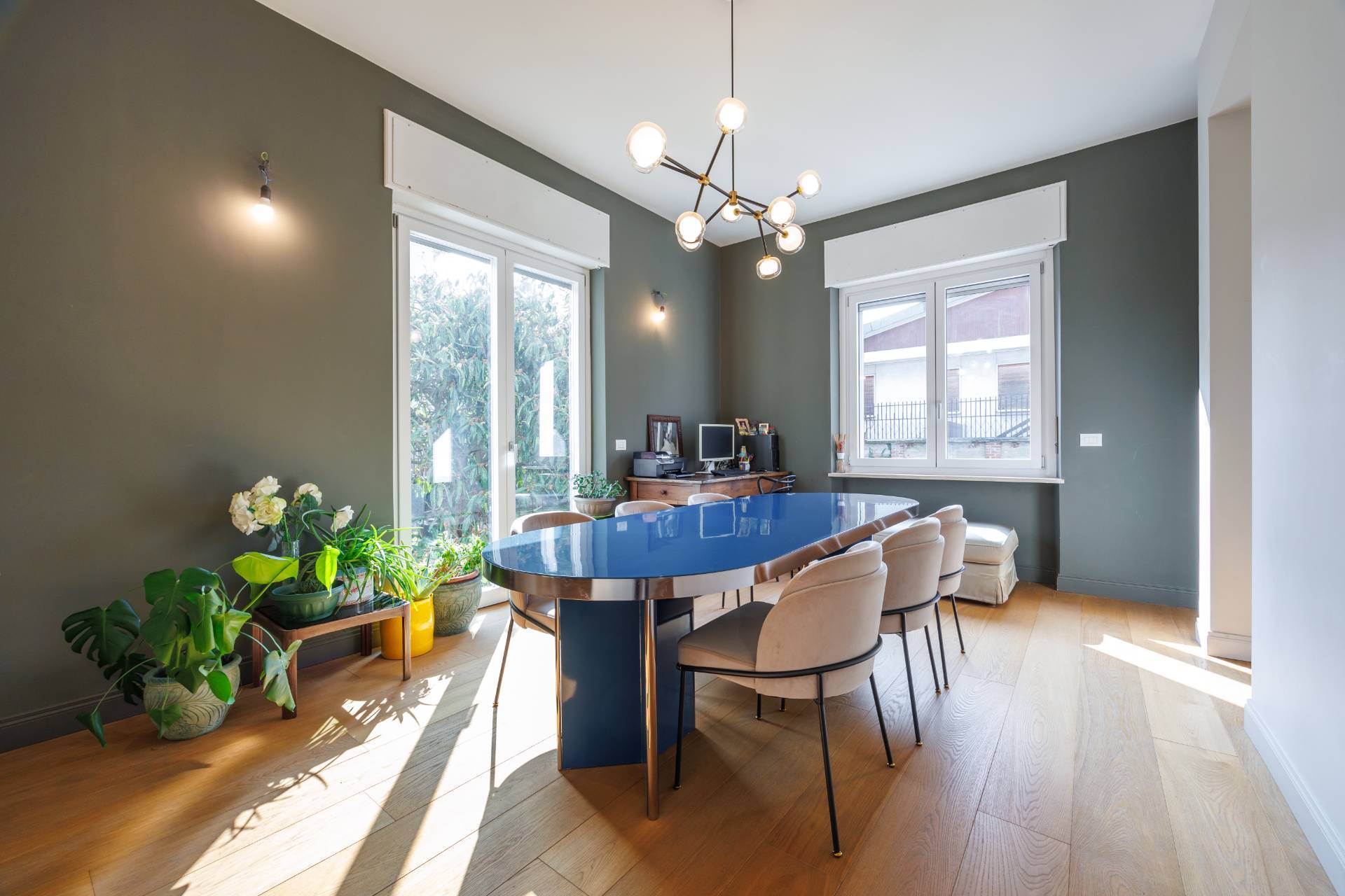 Al piano terra l'ingresso avviene tramite un elegante atrio che conduce alla zona giorno composta da ampio soggiorno luminoso e affacciato sull'esterno, sala da pranzo collegata, cucina abitabile, disimpegno, bagno e locale lavanderia.