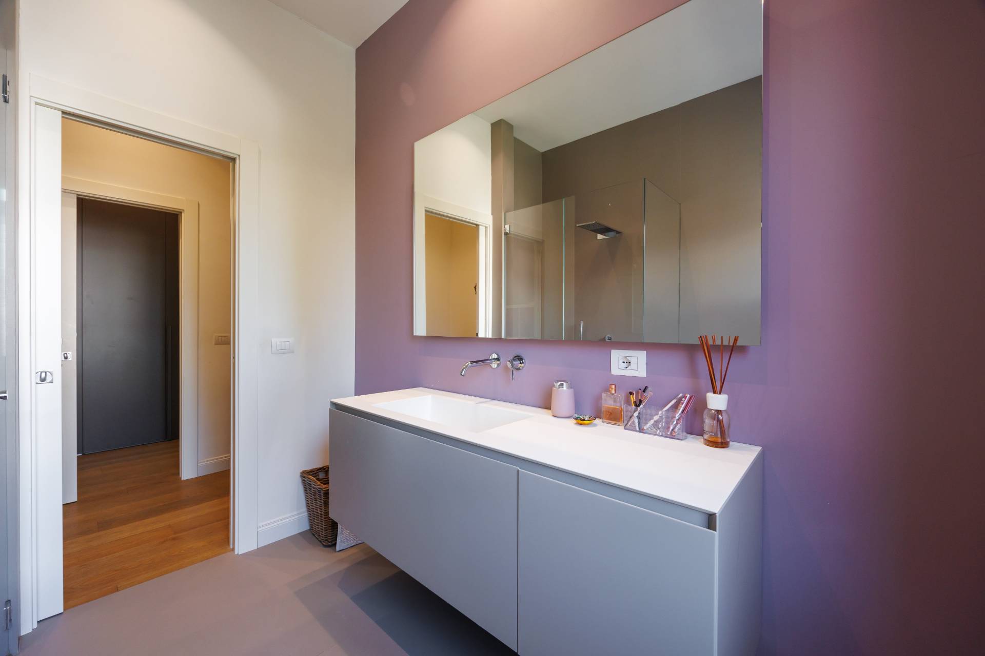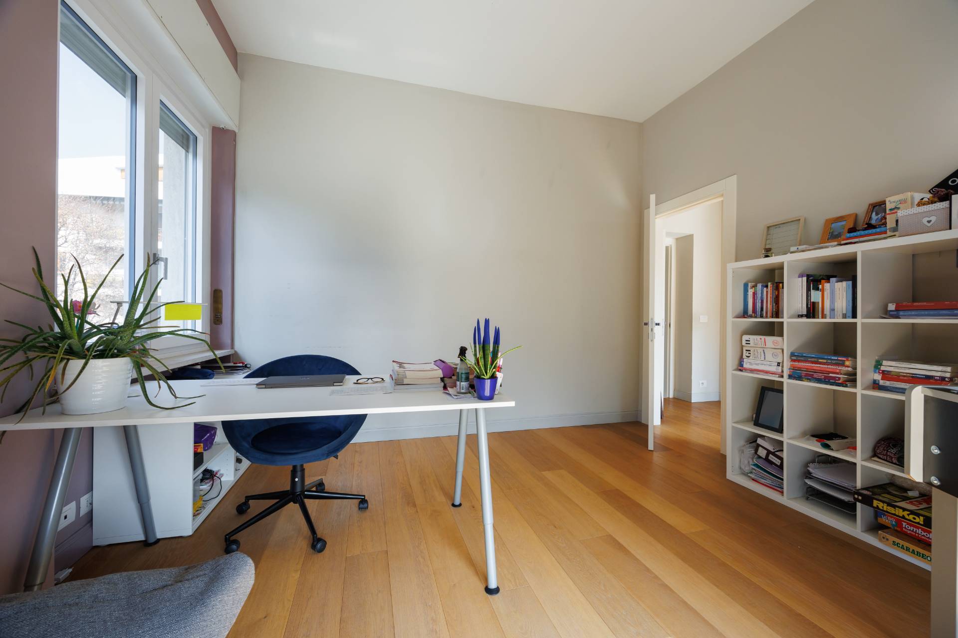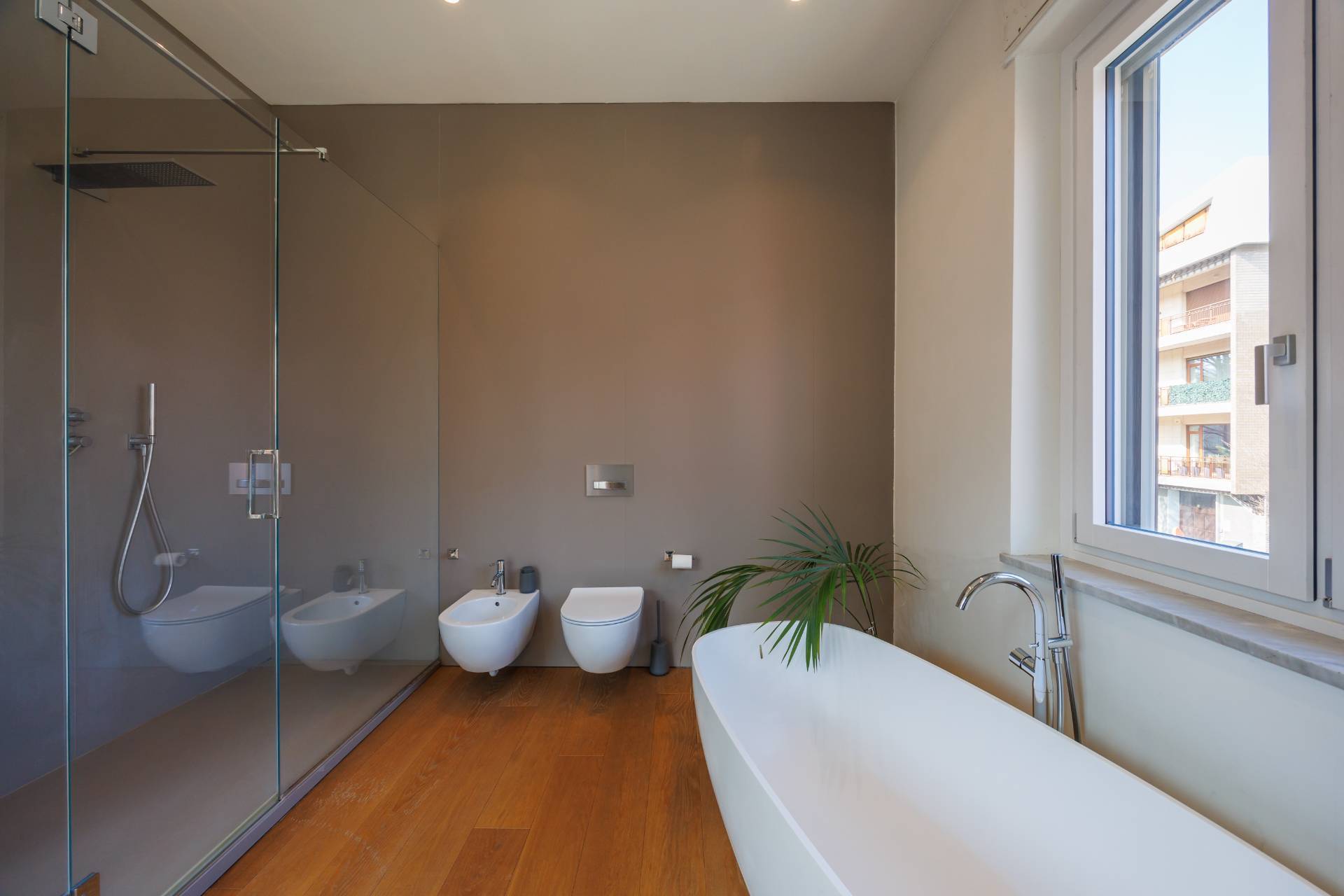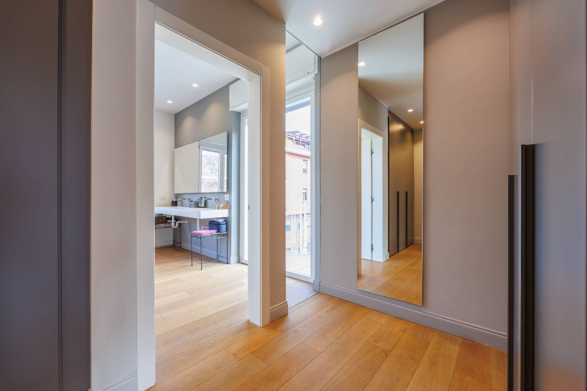Al piano primo la scala interna conduce alla zona notte composta da tre camere da letto, guardaroba, studio/spazio polifunzionale, due bagni e balconi su più lati.