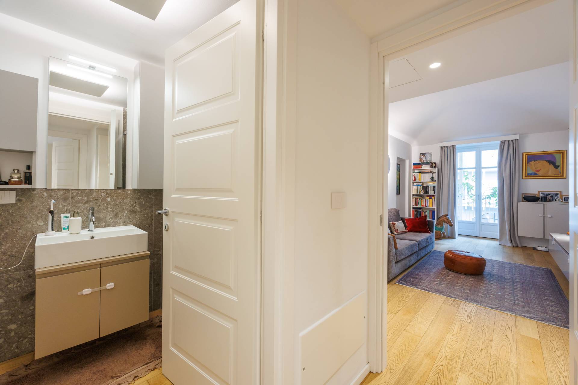 La ristrutturazione, curata nei minimi dettagli, valorizza ogni ambiente grazie al parquet uniforme, agli infissi con doppio vetro camera, all'aria condizionata e al riscaldamento a pavimento centralizzato con termostato per una gestione ottimale.