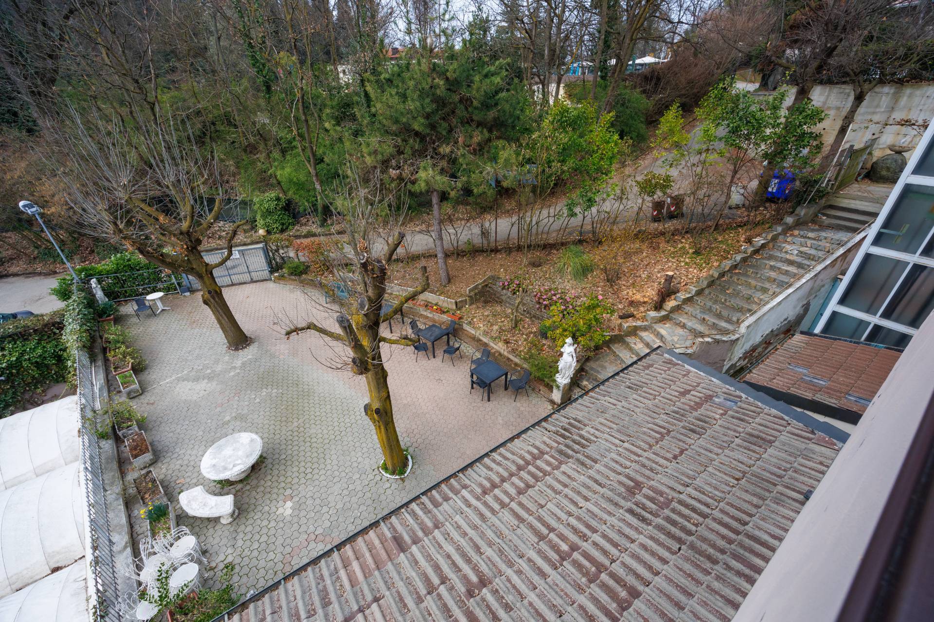 La proprietà è circondata da diversi giardini terrazzati ed un parcheggio privato al quale si può accedere tramite un ingresso carraio con cancello.