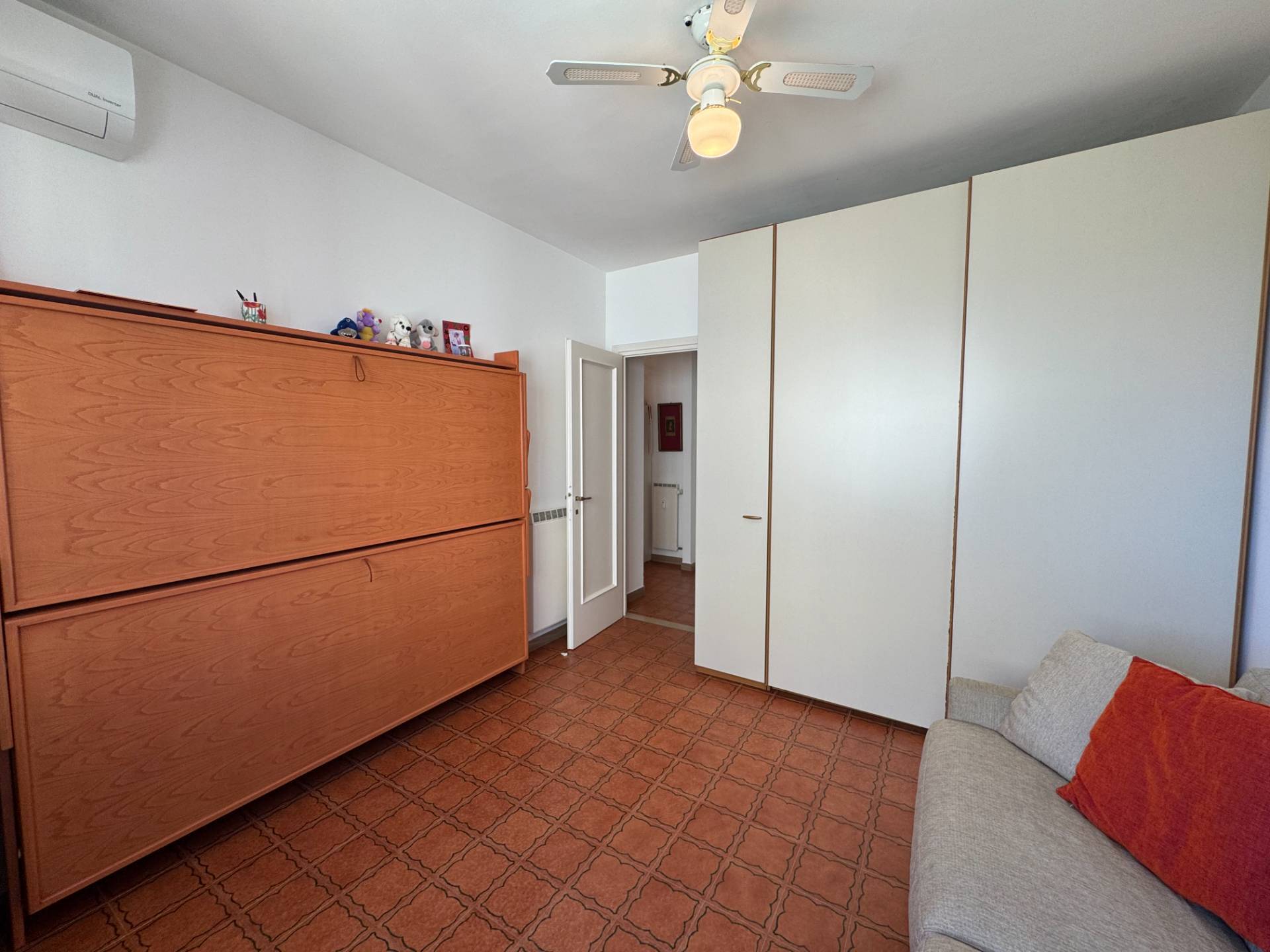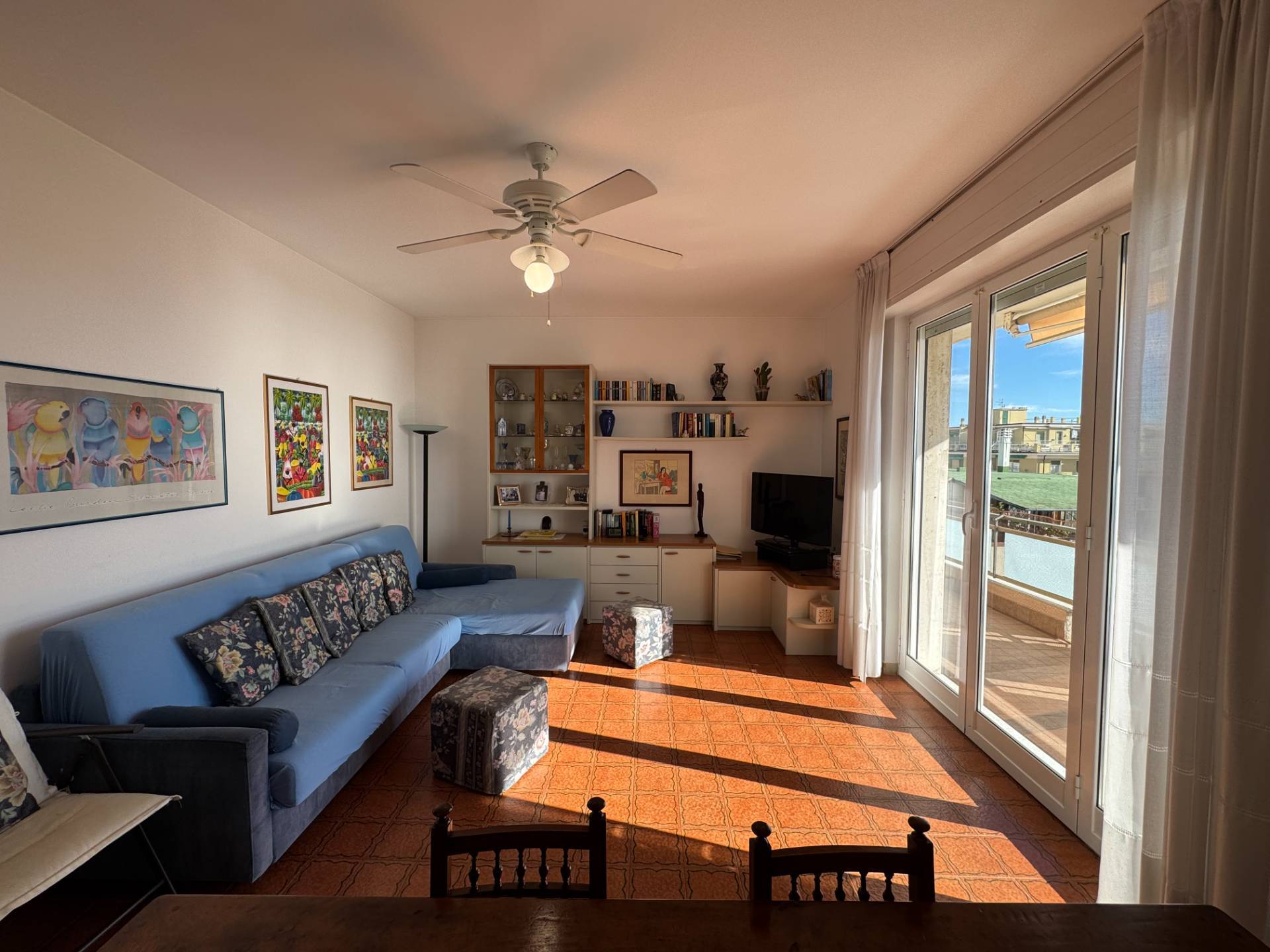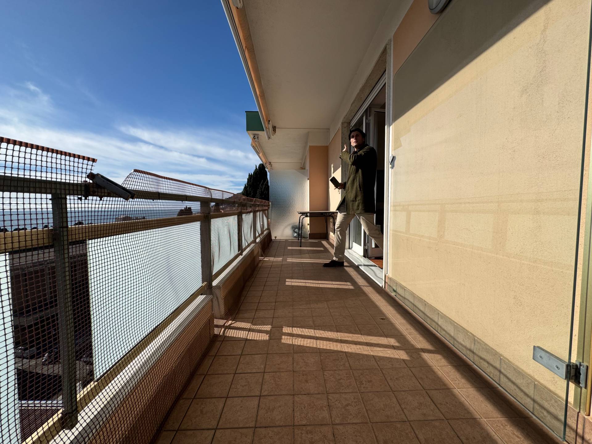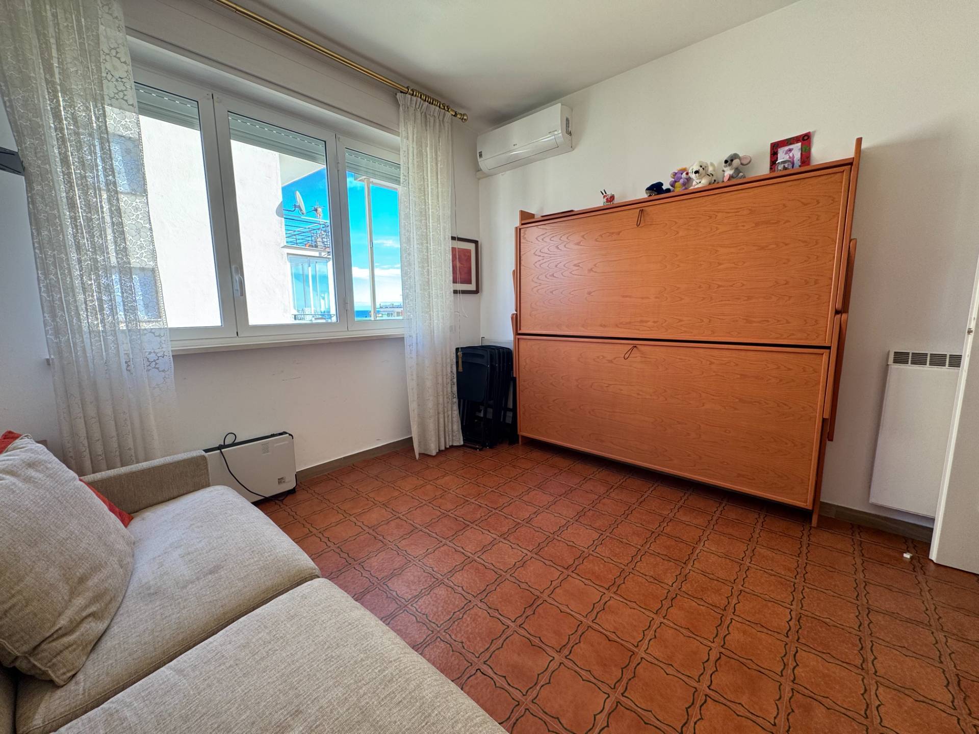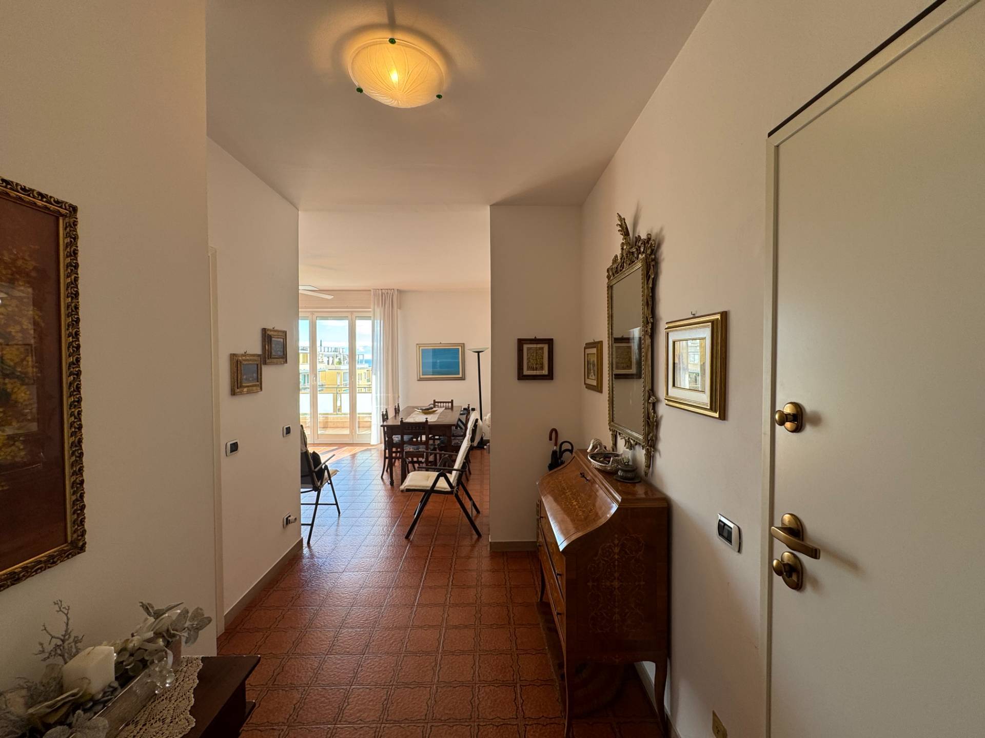 L'ingresso introduce a una luminosa zona living con vista mare, valorizzata dall'accesso diretto a un terrazzo vivibile che rappresenta un autentico prolungamento dello spazio interno.